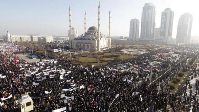 Kadyrov –pejabat yang setia pada Presiden Vladimir Putin– pada Minggu (18/1), mengatakan ratusan ribu orang diperkirakan akan menghadiri aksi itu sementara siaran langsung televisi Rusia menunjukkan para pengunjuk rasa memenuhi lapangan utama Grozny.