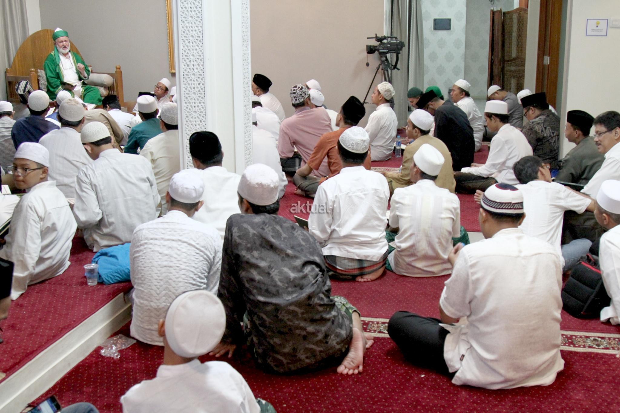 Maulana Syekh Sayyid Prof Dr Muhammad Fadhil al-Jailani al-Hasani,al-Husaini Hafidzahullah,Cicit Sulthonul Auliya Syekh Abdul Qadir al-Jailani,Dzikru al - Maqomat,Auliya Syekh Abdul Qadir al-Jailani,Zawiyah Arraudhah,pengajianJakarta, Jumat (15/9). Dalam kesempatan tersebut Prof. Dr. Syekh Fadhil Al-Jailani mengajak umat Islam untuk bertasawuf secara hakiki (berdasarkan Alquran dan Sunnah). AKTUAL/Tino Oktaviano