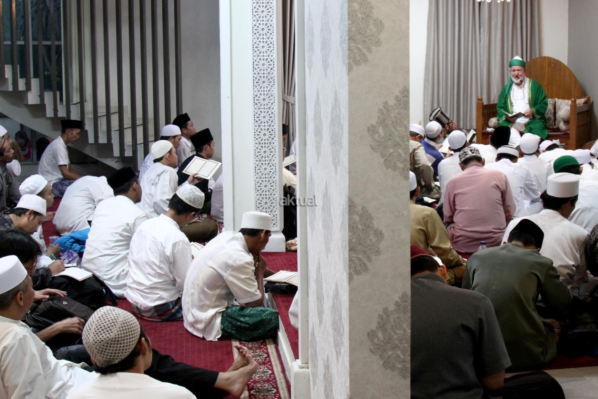 Maulana Syekh Sayyid Prof Dr Muhammad Fadhil al-Jailani al-Hasani,al-Husaini Hafidzahullah,Cicit Sulthonul Auliya Syekh Abdul Qadir al-Jailani,Dzikru al – Maqomat,Auliya Syekh Abdul Qadir al-Jailani,Zawiyah Arraudhah,pengajianJakarta, Jumat (15/9). Dalam kesempatan tersebut Prof. Dr. Syekh Fadhil Al-Jailani mengajak umat Islam untuk bertasawuf secara hakiki (berdasarkan Alquran dan Sunnah). AKTUAL/Tino Oktaviano
