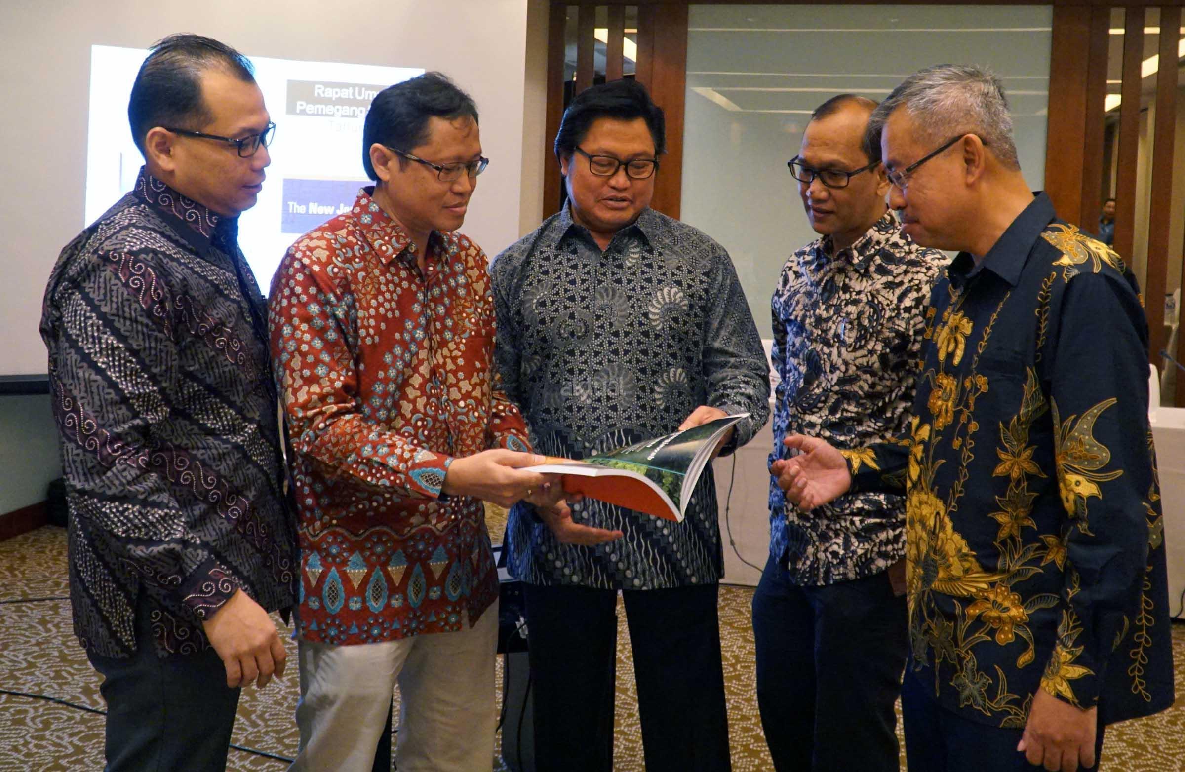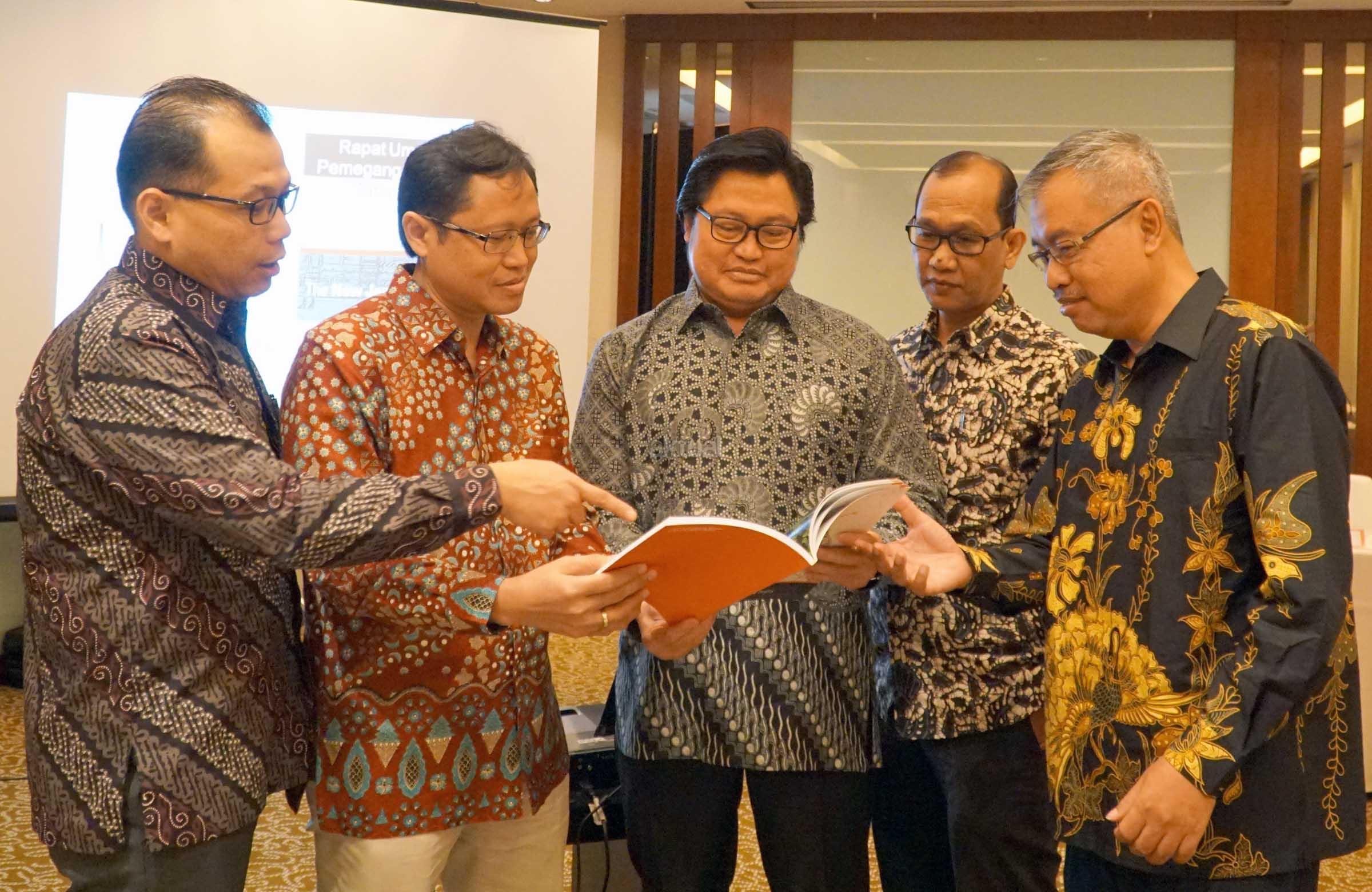 (dari kiri ke kanan) Komisaris PT Cita Mineral Investindo (CITA),Harry Kesuma Tanoto, Direktur Teknis,Robby Irfan Rafianto, Direktur Utama, Liem Hok Seng,Direktur Independen,Yusak Lumba Pardede, serta Komisaris Independen, Parwoto Kartiko Sunu berbincang seusai RUPS Tahunan di Jakarta,Kamis (8/6).CITA emiten yang bergerak dalam bidang pertambangan bauksit dan produsen smelter grade alumina mencatat penjualan bersih kuartal I 2017 yang mencapai Rp 130,3 Miliar, meningkat drastis sebesar 376% dibanding pencapaian kuartal I tahun sebelumnya yang sebesar Rp 27,4 miliar.Hal ini disebabkan oleh mulai beroperasinya tambang tambang bauksit CITA sejak pabrik entitas usaha PT Well Harvest Winning Alumina Refinery (WHW) tahap I yang menghasilkan SGA telah berjalan sejak pertengahan 2016.WHW merupakan perusahaan patungan antara CITA (30%) dengan China Hongqiao Group Limited dari Tiongkok (56%), Winning Investment (HK) company Ltd (9%) dan Shandong Weiqiao Aluminium and Electricity Co.Ltd (5%). AKTUAL/Eko S Hilman