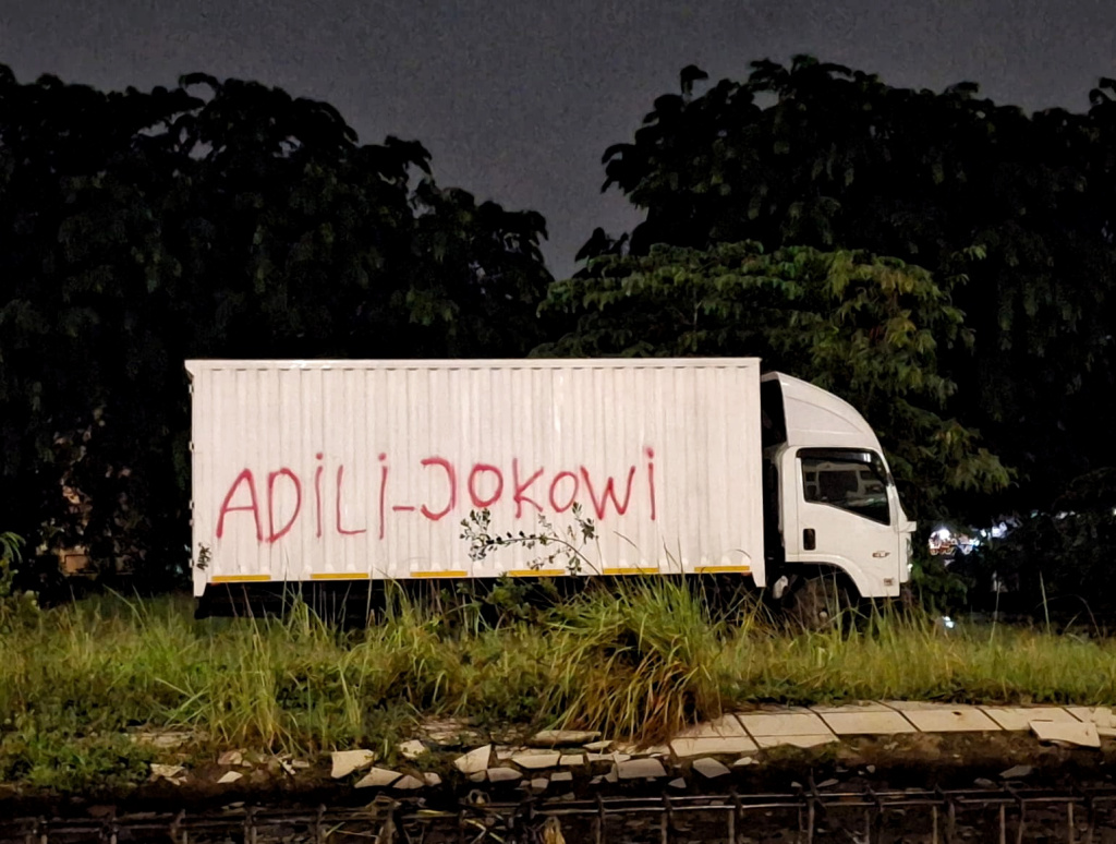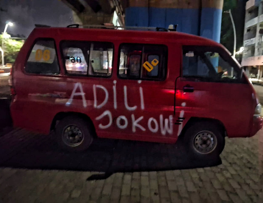 Coretan bertuliskan "Adili Jokowi" mewarnai kendaraan yang terparkir di beberapa wilayah Jakarta, Kamis (20/2/2025).