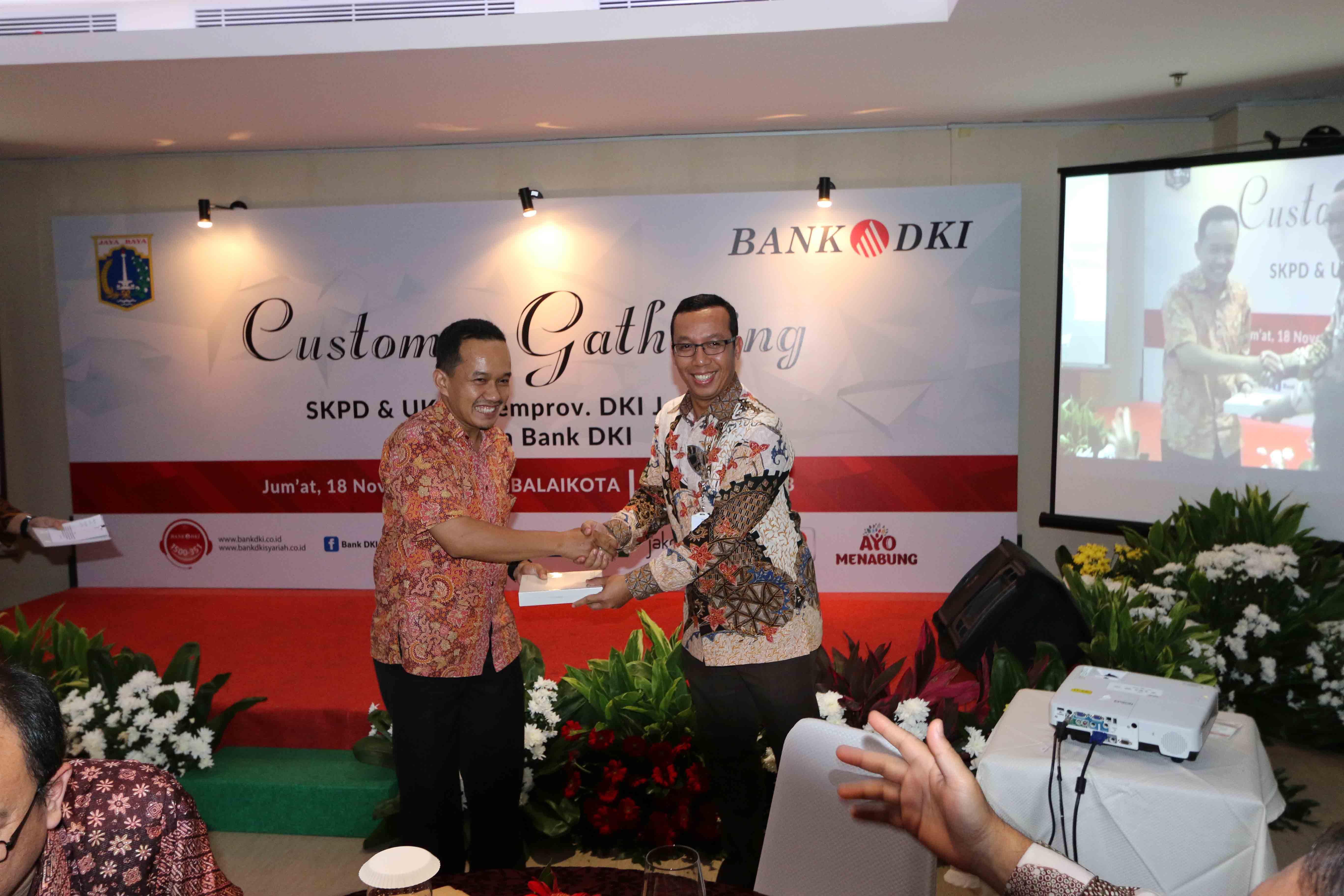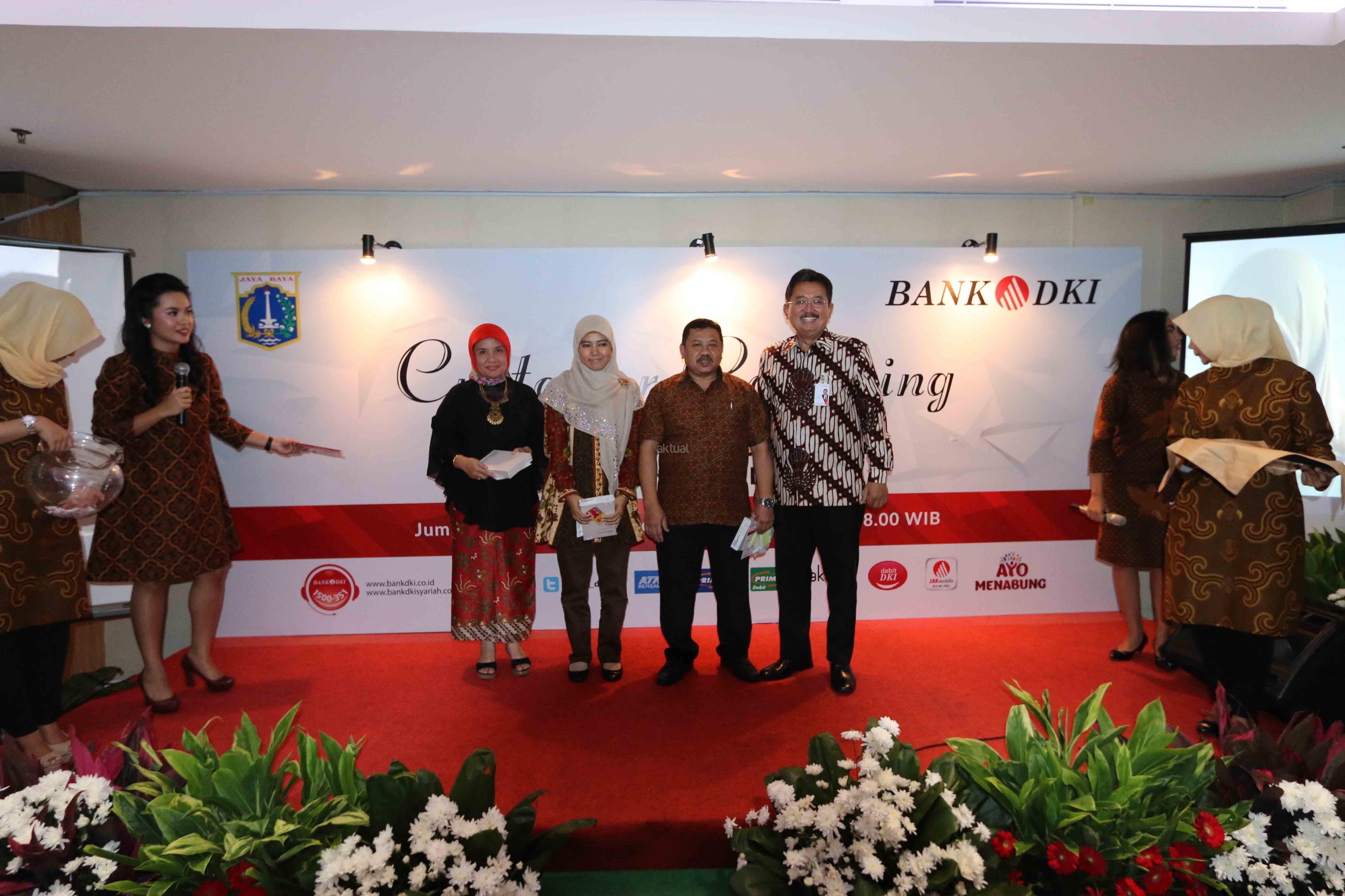 Direktur Kepatuhan PT. Bank DKI Budi Mulyo Utomo sedang mengambil undian doorprize pada acara Customer Gathering SKPD di Balaikota, Jakarta, Jumat (18/11). Acara Customer Gathering digelar di 5 wilayah DKI Jakarta untuk memberikan apresiasi kepada nasabah loyal PT. Bank DKI. AKTUAL/Eko S Hilman