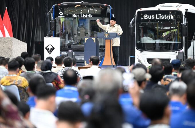 Kepala negara meminta pemerintah daerah hingga institusi negara untuk memprioritaskan produk dalam negeri, termasuk bus listrik.