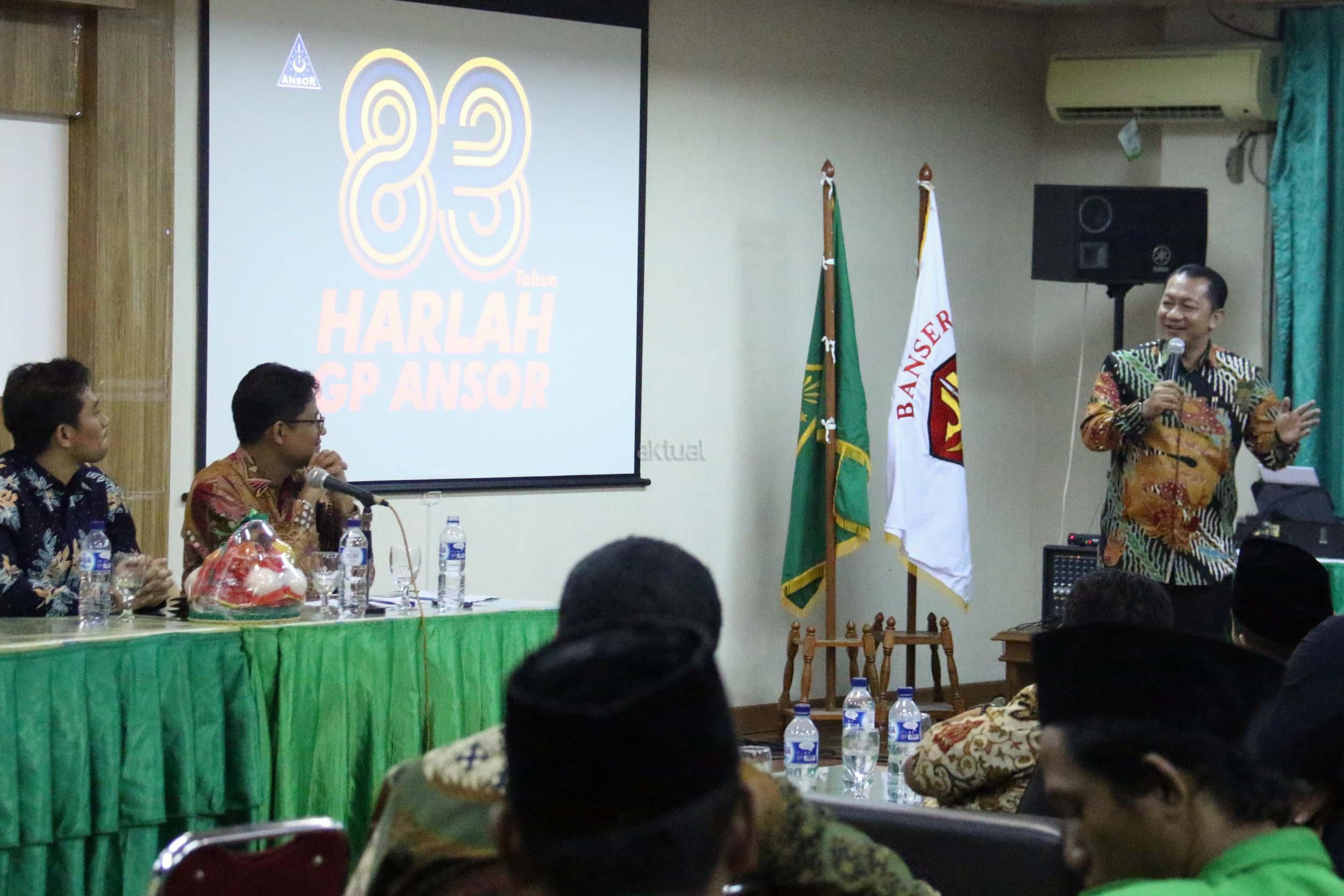 Direktur Pemberdayaan Masyarakat Kementerian Desa Pembangunan Daerah Tertinggal dan Transmigrasi, Taufik Madjid, menjadi pembicara saat Halaqoh Nasional Pertanian ‘Daulat Petani, Daulat NKRI’ yang digelar oleh GP Ansor di Jakarta, Selasa (14/3/2017). Melalui halaqoh ini GP Ansor mendukung agar pemerintah mampu mewujudkan kedaulatan pangan dengan petani yang berdaulat dan sejahtera, dan diharapkan kedaulatan pangan menjadi prioritas pertama di dalam mengelola negara. AKTUAL/Munzir