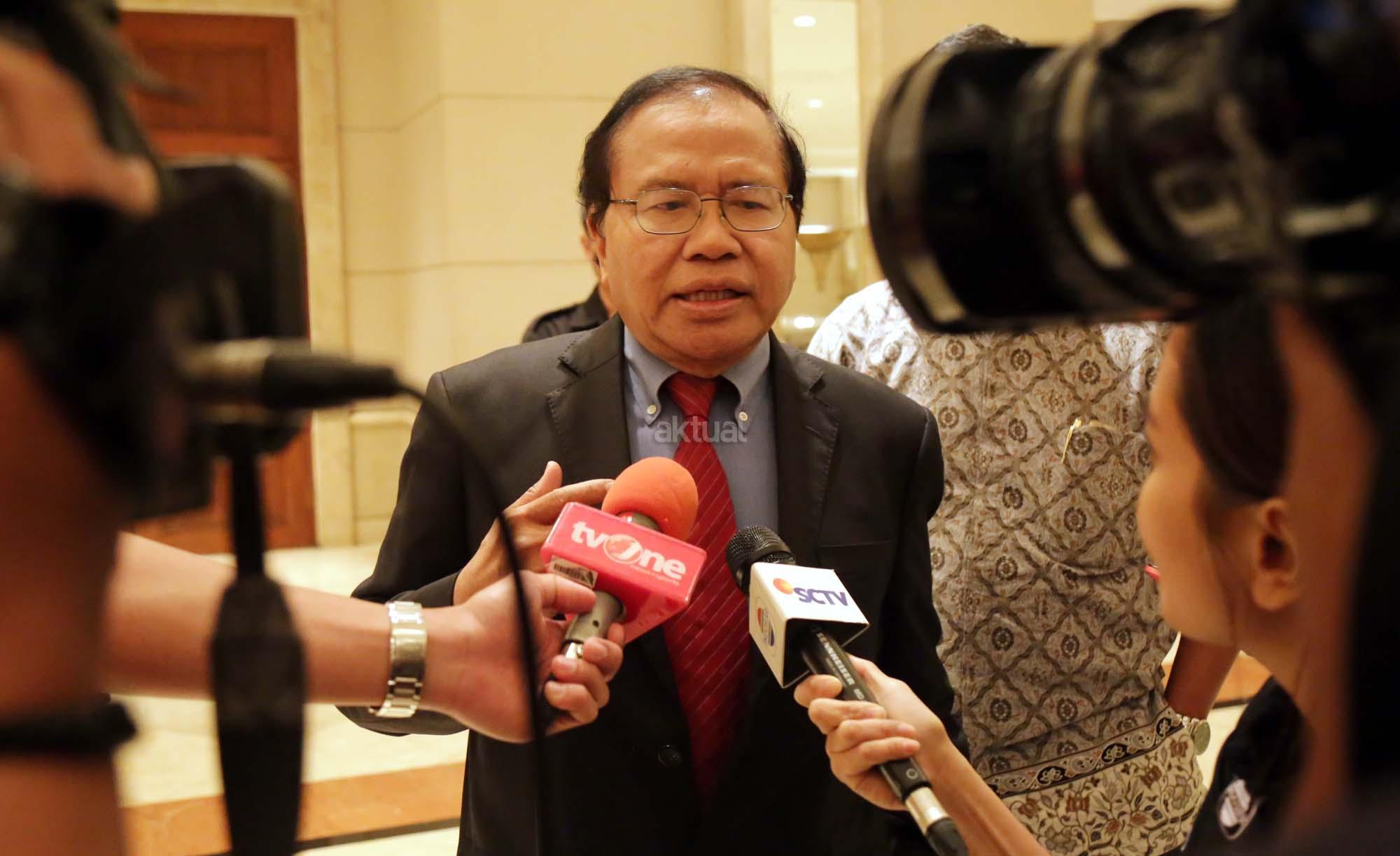 Mantan Menko Kemaritiman Rizal Ramli menjawab pertanyaan wartawan usai diskusi serial untuk edukasi pemilih dengan tema “Debat-Tak Debat: Utang Besar Buat Siapa? di Jakarta Convention Center, Senayan, Jakarta, Selasa (3/7/2018). Rizal Ramli mengungkapkan bahwa kondisi perekonomian Indonesia, khususnya masalah utang sedang dalam kondisi yang kurang sehat. Namun, pemerintah selalu mengelak dengan menyatakan bahwa utang Indonesia masih aman. Dan pemerintah selalu membandingkan rasio utang Indonesia lebih baik dengan negara lain seperti Amerika Serikat (AS) dan Jepang. Padahal, perbandingan tersebut tak sesuai untuk dilakukan. AKTUAL/Tino Oktaviano