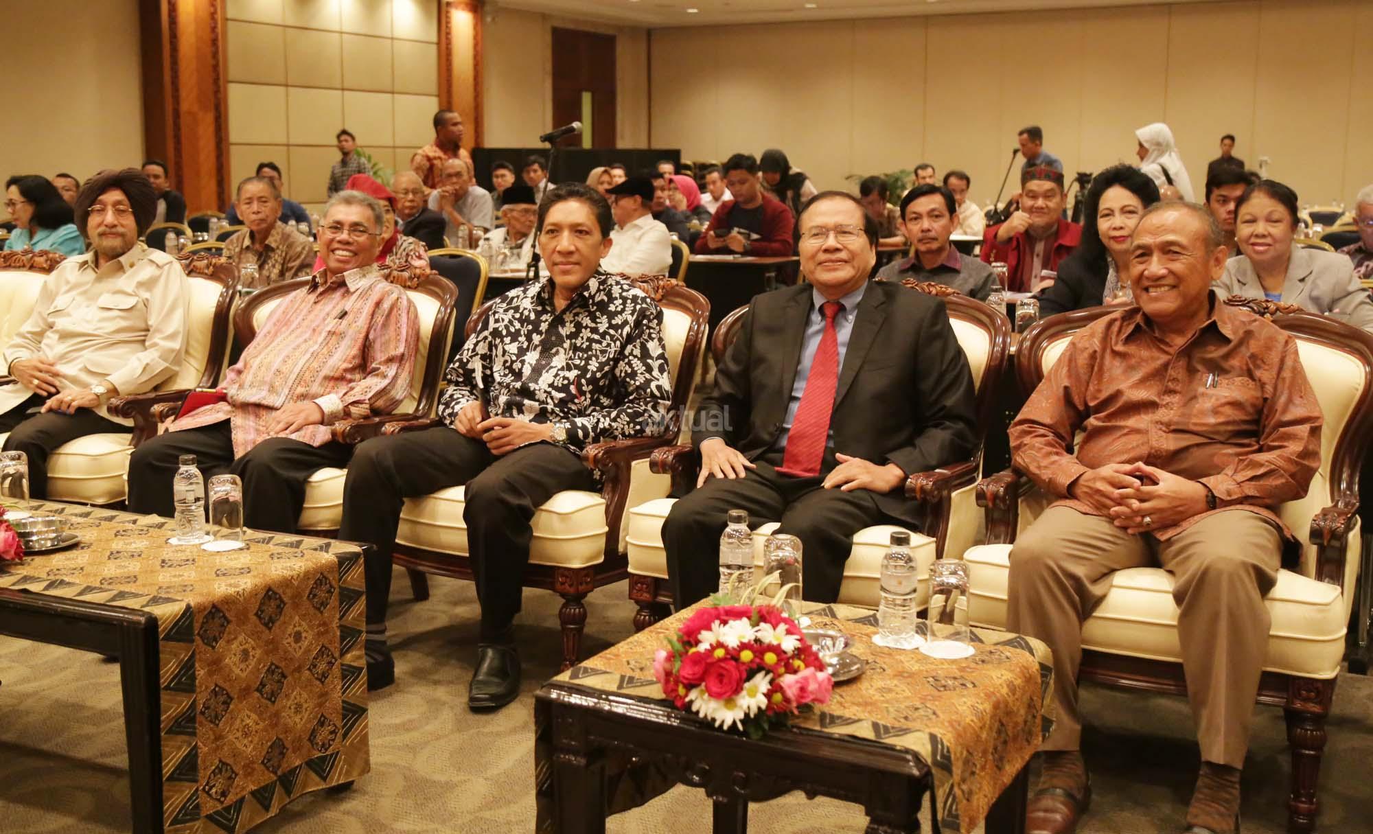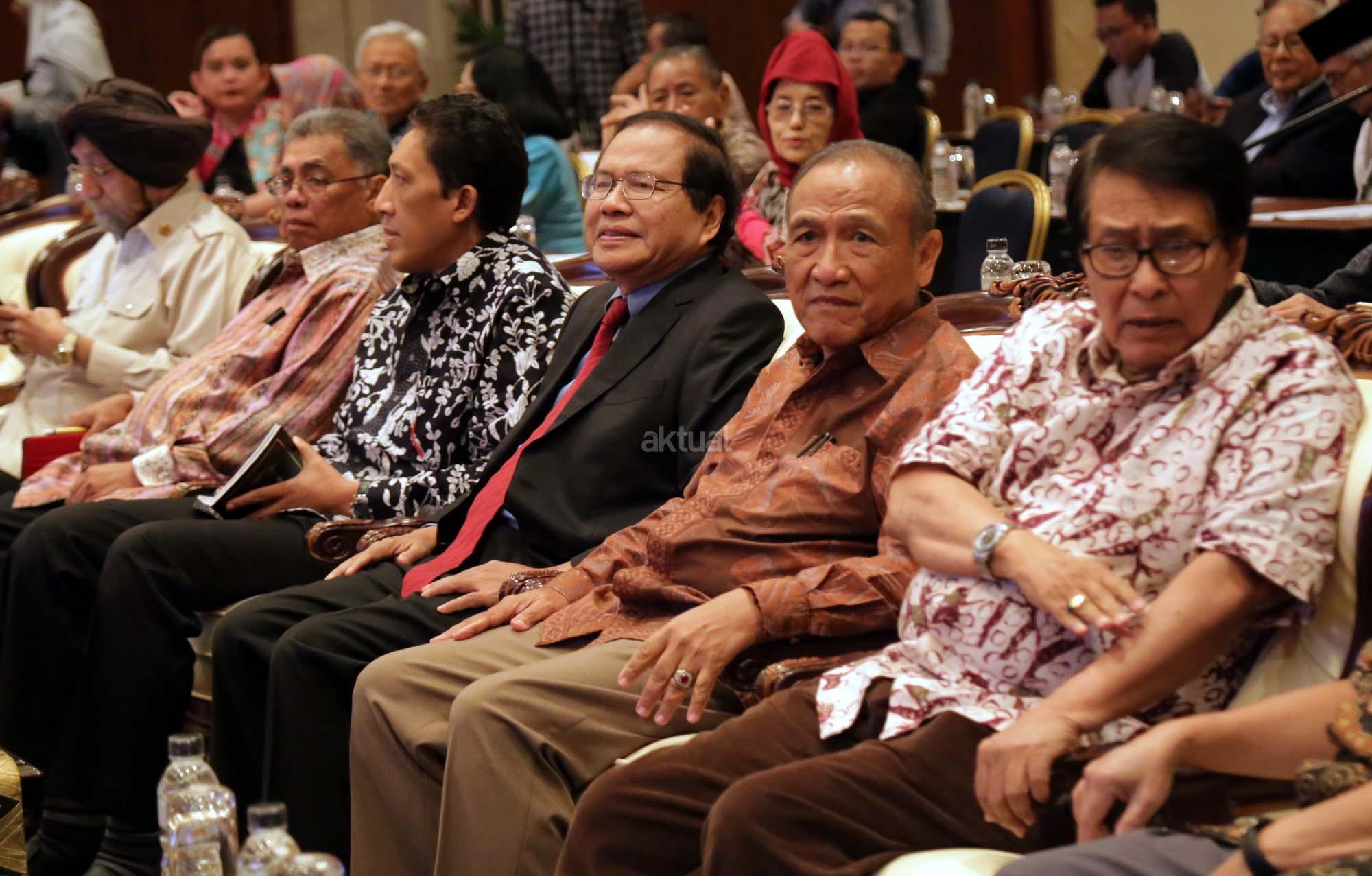Mantan Menko Kemaritiman Rizal Ramli bersama Ketua Aliansi Kebangsaan Pontjo Sutowo, Ekonom Senior HS Dilon, Pakar Soft Skill Universitas Indonesia (UI) Taufik Bahaudin dan Wakil Rektor Bidang Akademik dan Kemahasiswaan Universitas Indonesia Bambang Wibawarta saat diskusi serial untuk edukasi pemilih dengan tema “Debat-Tak Debat: Utang Besar Buat Siapa? di Jakarta Convention Center, Senayan, Jakarta, Selasa (3/7/2018). Rizal Ramli mengungkapkan bahwa kondisi perekonomian Indonesia, khususnya masalah utang sedang dalam kondisi yang kurang sehat. Namun, pemerintah selalu mengelak dengan menyatakan bahwa utang Indonesia masih aman. Dan pemerintah selalu membandingkan rasio utang Indonesia lebih baik dengan negara lain seperti Amerika Serikat (AS) dan Jepang. Padahal, perbandingan tersebut tak sesuai untuk dilakukan. AKTUAL/Tino Oktaviano