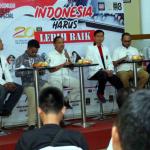 (ki-ka) Peneliti Pusat Studi Hukum Tata Negara (PSHTN) Fakultas Hukum Universitas Indonesia, Ali Abdillah, Wasekjen Gerindra Taufik Riyadi, Caleg Muda PKS Arya Sandhiyuda, Pemuda Gerindra Angga Wira dan Pengamat Ekonomi INDEF Riza Annisa dalam diskusi PKS Muda Talks dan deklarasi Koalisi Indonesia Muda di kantor DPP PKS, Kamis (10/5/2018). AKTUAL/HO