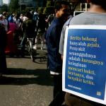 Kegiatan ini merupakan aksi simpatik untuk mengajak masyarakat agar peduli dan memerangi persebaran informasi hoax yang marak di media sosial. AKTUAL/Munzir
