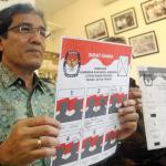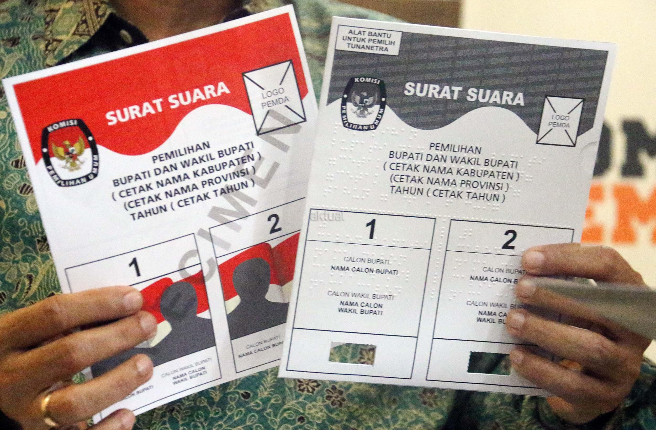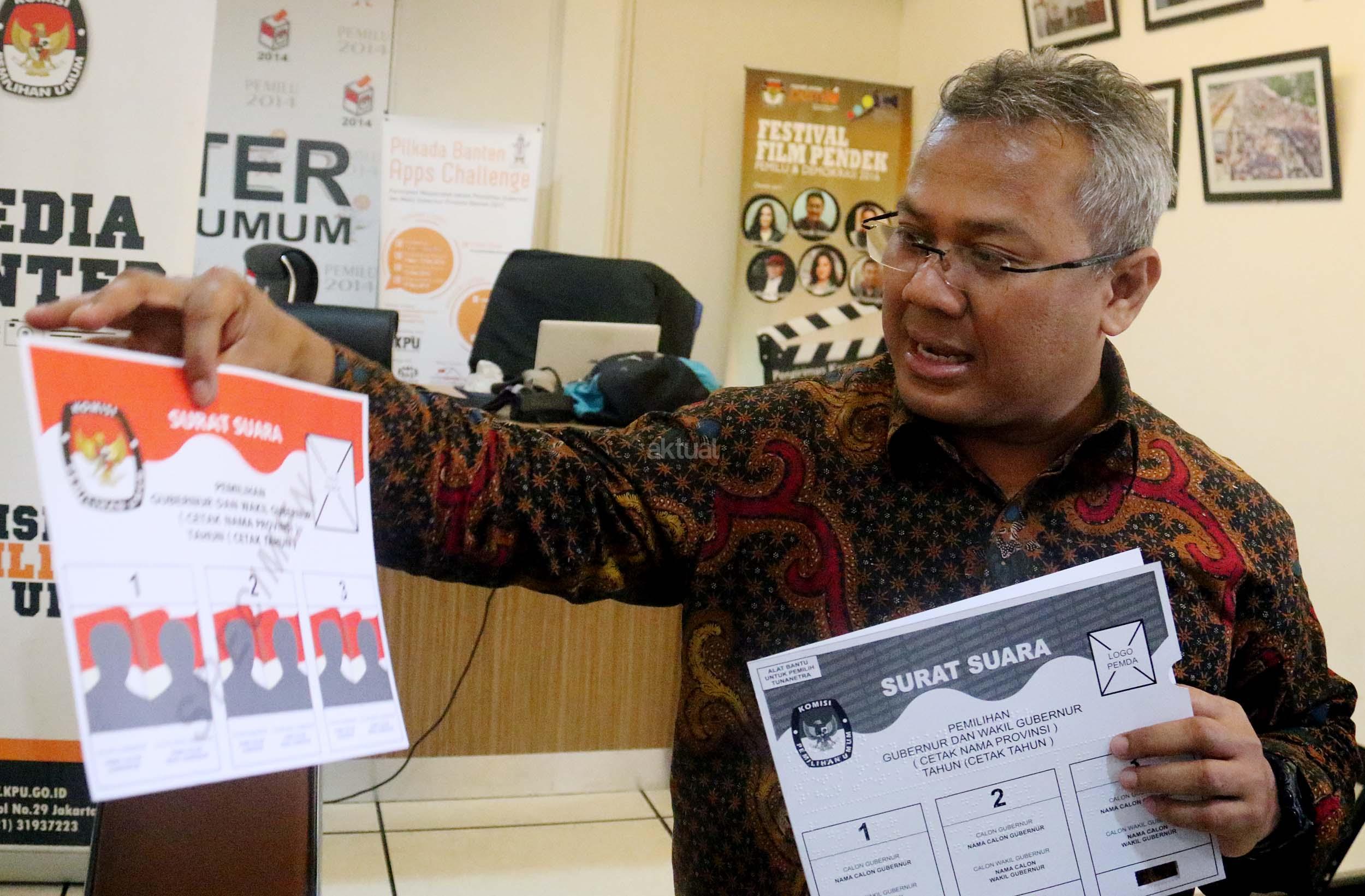 Komisi Pemilihan Umum menyediakan template surat suara Braille bagi pemilih penyandang tunanetra dimasing-masing TPS. Nantinya, surat suara akan diselipkan ke dalam template untuk kemudian dicoblos oleh pemilih. AKTUAL/Munzir