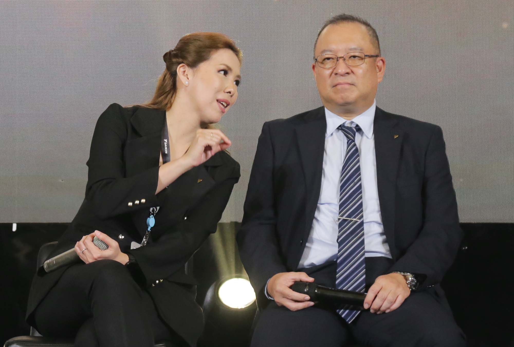Presiden Direktur PT Daikin Airconditioning Indonesia Shinji Miyata (kanan) dan Sales Manager Daikin Proshop PT Daikin Airconditioning Indonesia Selvi Ani Yongnata (kiri) berbincang disela konferensi pers Daikin Proshop Designer Award 2025 dengan tema “Originality” di Jakarta, Jumat (25/4/2025).