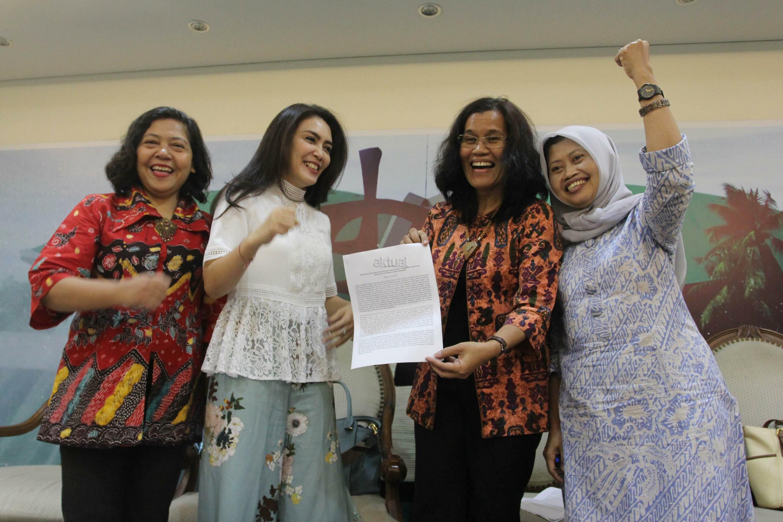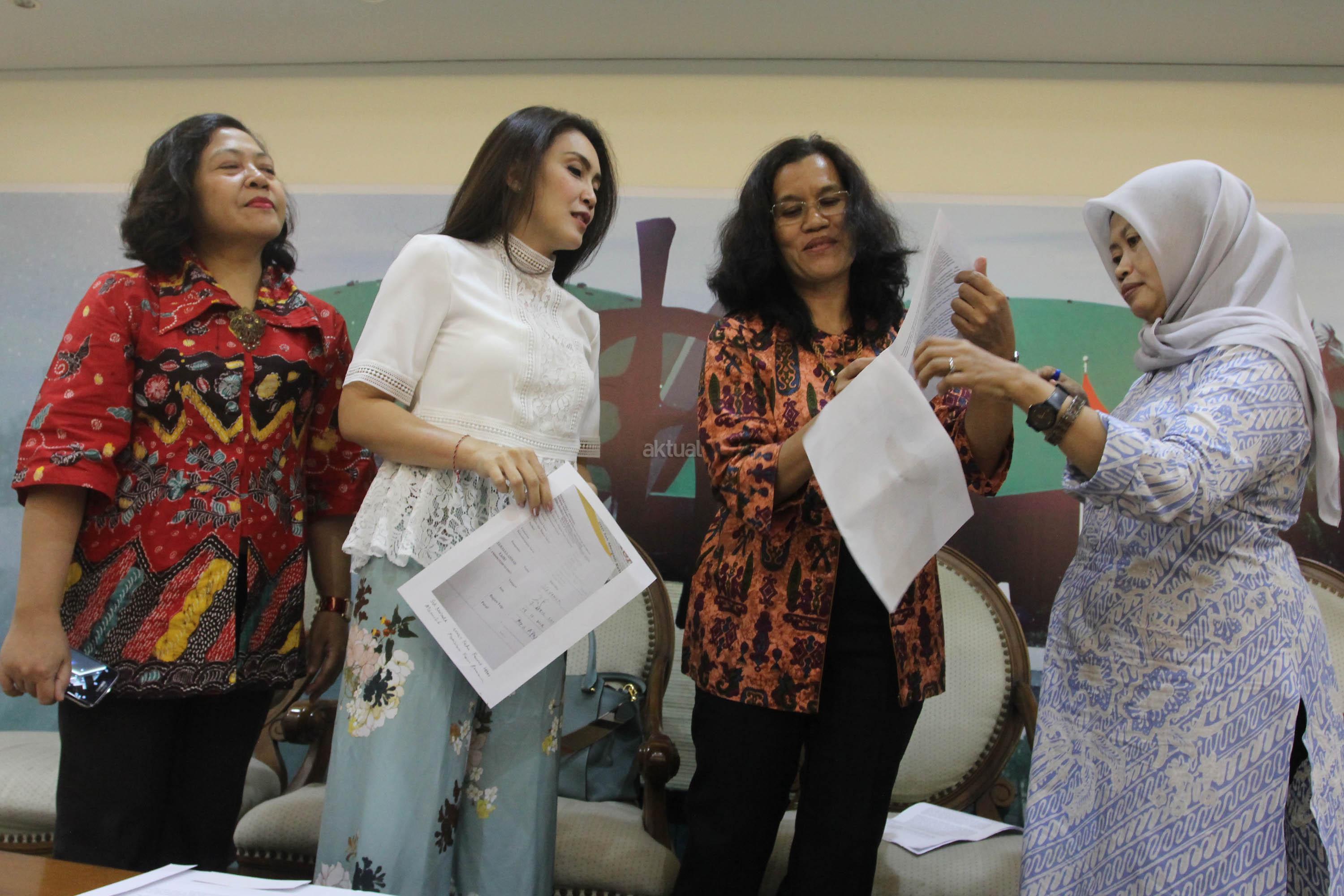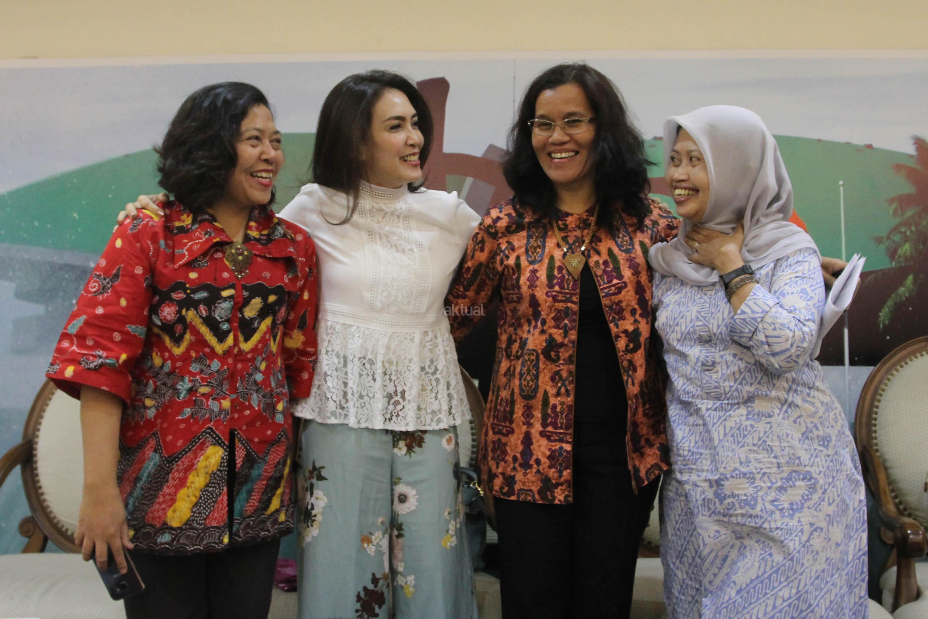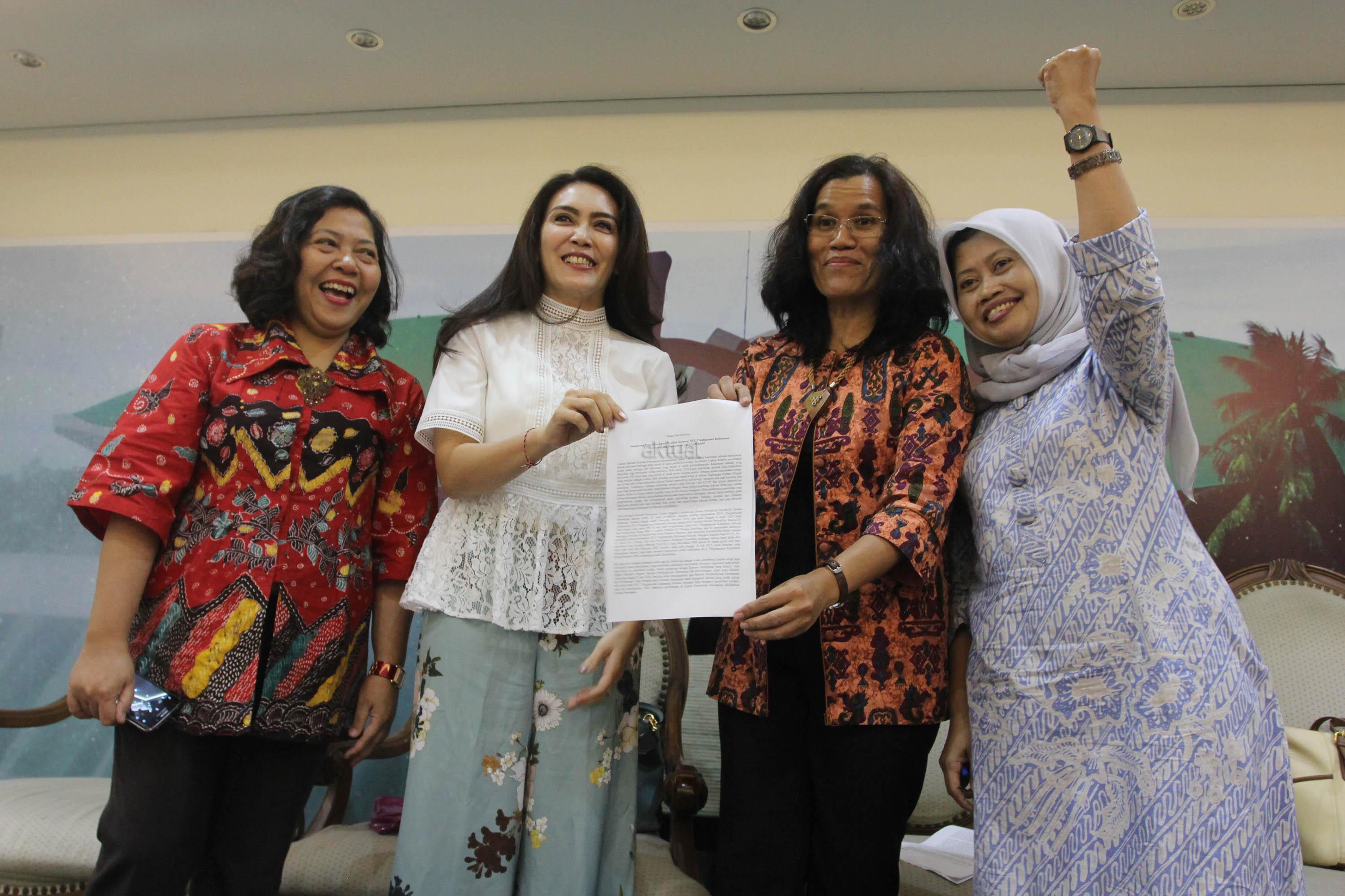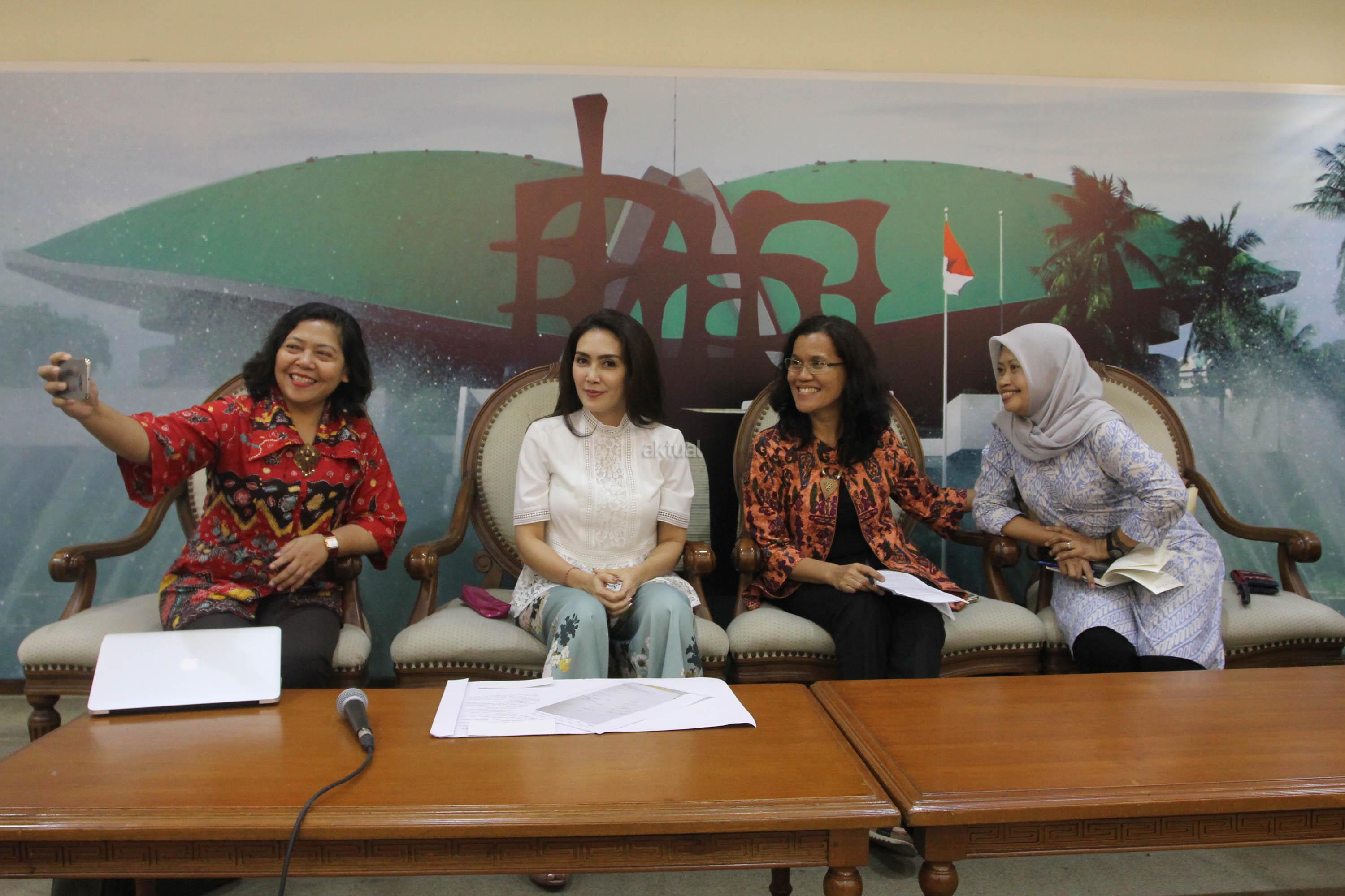 (dari kiri) Wakil Ketua Komnas HAM Siti Nurlaila, Anggota Komisi VI Fraksi PDIP Rieke Diah Pitaloka, Ketua Komnas Perempuan Azriana dan Komisioner Komnas Perempuan Masruhah, memberikan keterangan pers soal Rancangan Undang Undang (RUU) Penghapusan Kekerasan Seksual, di Gedung Nusantara III, Kompleks Parlemen, Jakarta, Jumat (2/6). Dalam keterangannya mereka yang merupakan Lembaga Nasioanl Hak Azasi Manusia, yaitu Komisi Nasional Anti Kekerasn Terhadap Perempuan dan Komisi Nasional Hak Azasi Manusia dengan DPR, mendesak Presiden segera menerbitkan Surat Presiden (Surpres) terhadap RUU Penghapusan Kekerasan Seksual, mendesak Kementerian terkait membuka partisipasi publik dalam pembahasan Daftar Inventaris Masalah (DIM) dan mendorong masyarakat sipil mengawal proses pembahasan RUU ini. AKTUAL/Tino Oktaviano