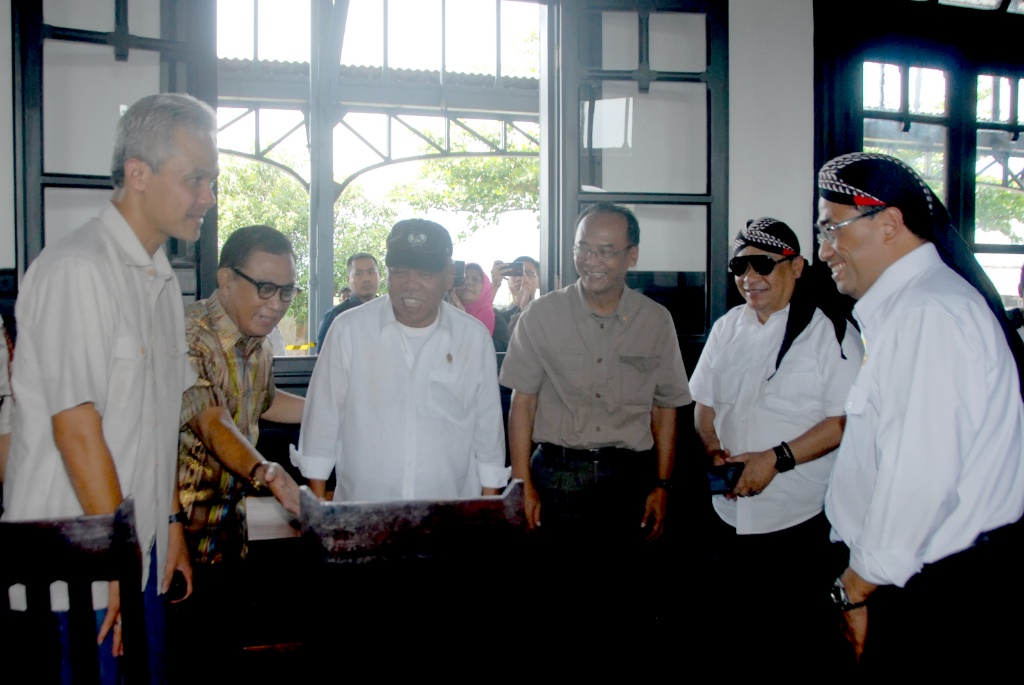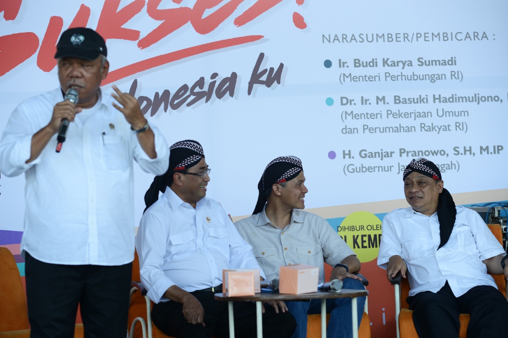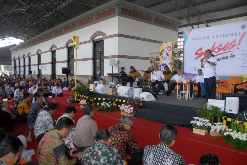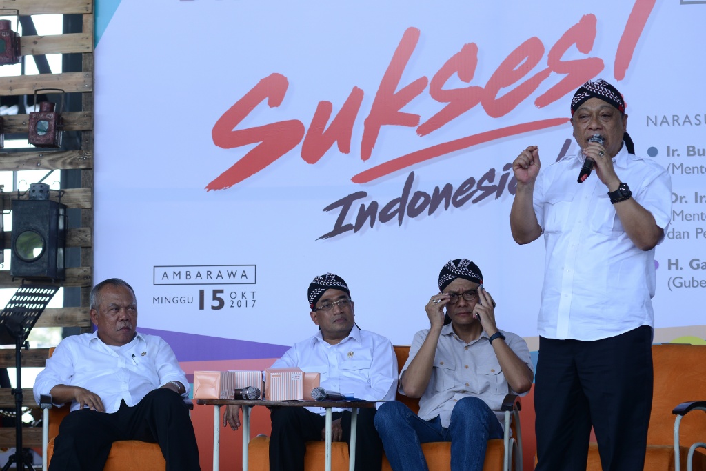 Direktur Utama PT Bank Tabungan Negara (Persero) Tbk. Maryono, Menteri Perhubungan Budi Karya, Menteri PU PR Basuki Hadimuljono, Gubernur Jawa Tengah Ganjar Pranowo berdialog warga setempat mengenai kesuksesan pembangunan infrastruktur selama pemerintahan Jokowi-JK dalam Dialog yang bertajuk Sukses Indonesia yang digelar di Museum Kereta Api Ambarawa, Jawa Tengah, Minggu (15/10). Sebagai Bank yang fokus pada KPR, Bank BTN berperan selaku integrator dalam program sejuta rumah tersebut. Sampai dengan pertengahan tahun 2017 Bank BTN telah mengucurkan kredit lebih dari Rp.155 Triliun untuk mendukung pengadaan rumah rakyat lebih dari 1,44 juta unit rumah. AKTUAL/Eko S Hilman