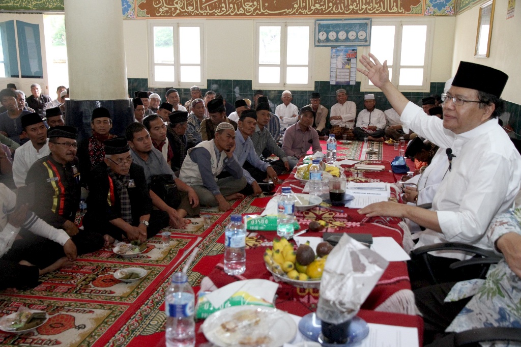 Tokoh Nasional Rizal Ramli (kanan) saat melakukan kunjungan dan dialog bersama masyarakat Simarasok, Kabupaten Baso Agam, Sumatra Barat, Minggu (5/11). Pertemuan yang dihadiri oleh masyarakat dan ratusan Wali Nagari, Rizal Ramli mengatakan masyarakat Minang adalah masyarakat yang berani, demokratis dan mandiri, ia berharap kebangkitan ekonomi Indonesia yang lebih baik akan berawal dari Sumatera Barat. AKTUAL/HO