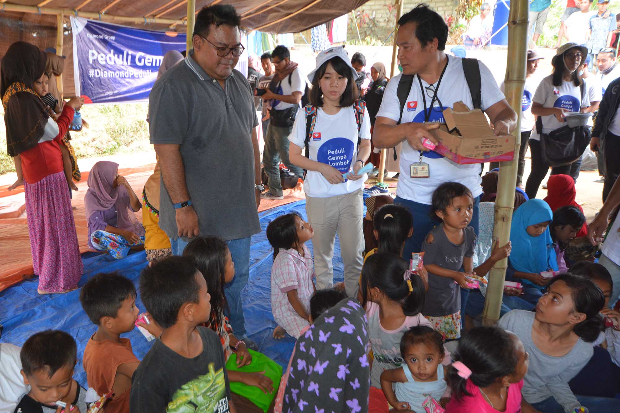 Diamond Group beserta karyawan kembali melakukan serangkaian kegiatan sosial sebagai wujud tanggung jawab sosial perusahaan untuk korban gempa Lombok. Selain bantuan berupa 150 ribu produk makanan dan minuman siap saji, Direksi dan Karyawan juga menyerahkan hasil penggalangan dana dari karyawan Diamond Group serta pengecekan kesehatan bagi para pengungsi. AKTUAL/Eko S Hilman