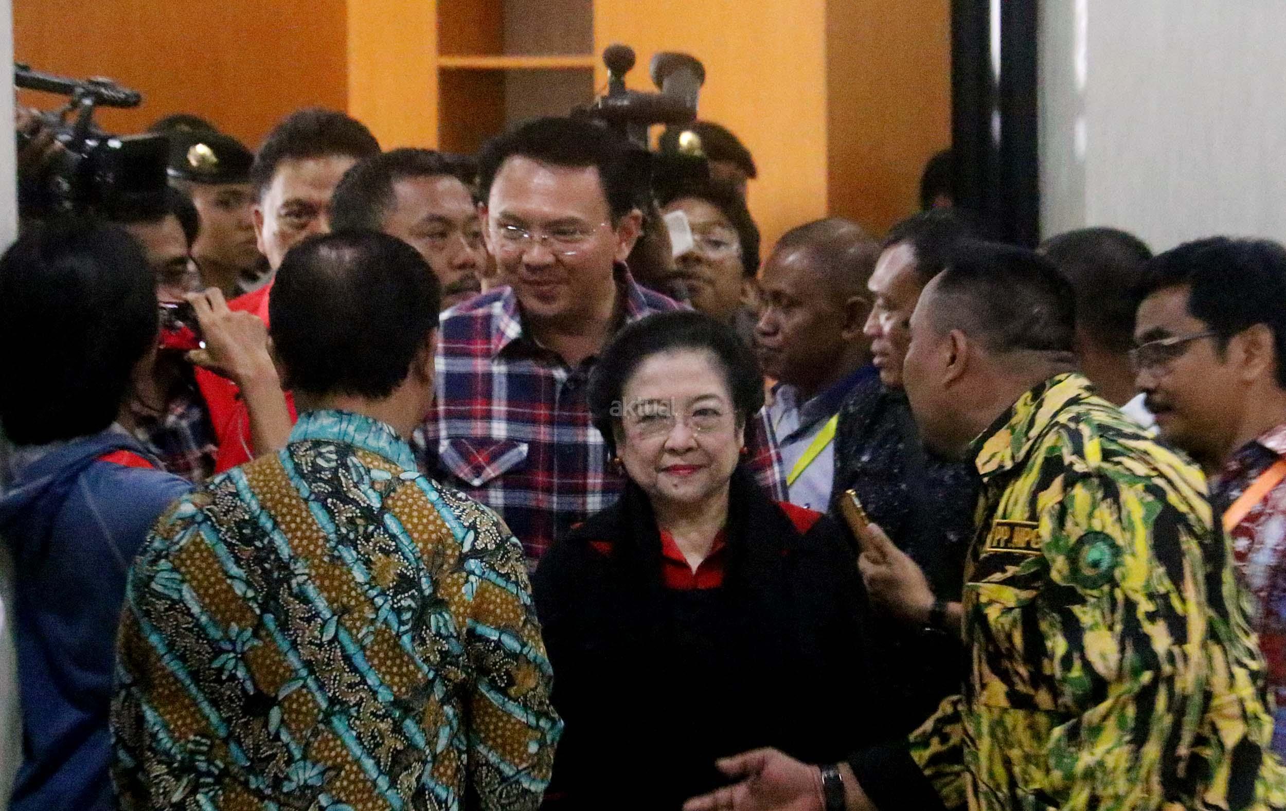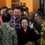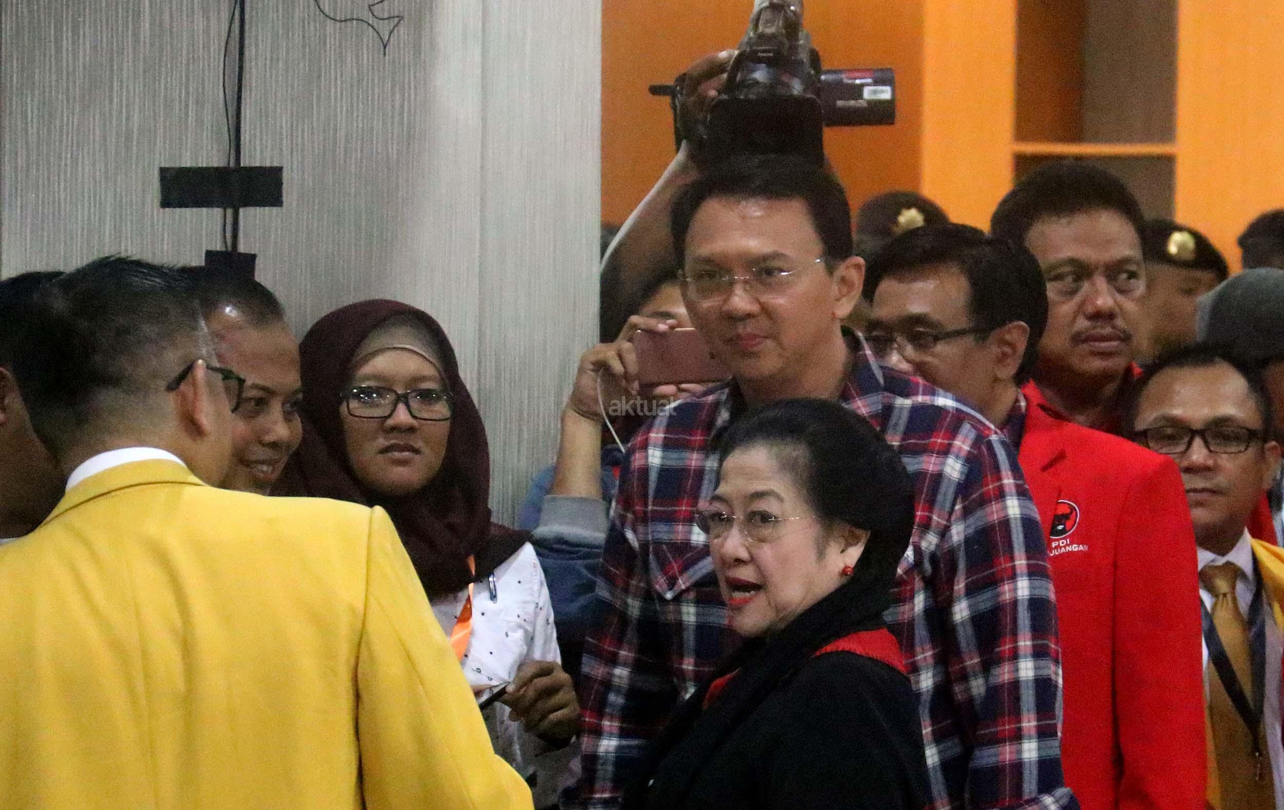 Ketum PDIP Megawati Soekarnoputri bersama Basuki Tjahaja Purnama-Djarot Saiful Hidayat tiba di KPUD DKI Jakarta, Rabu (21/9/2016). Pasangan Ahok dan Djarot resmi mendaftar ke KPU DKI Jakarta dengan diusung oleh Partai Demokrasi Indonesia Perjuangan (PDIP), Golkar, Nasdem dan Hanura.