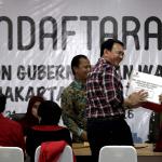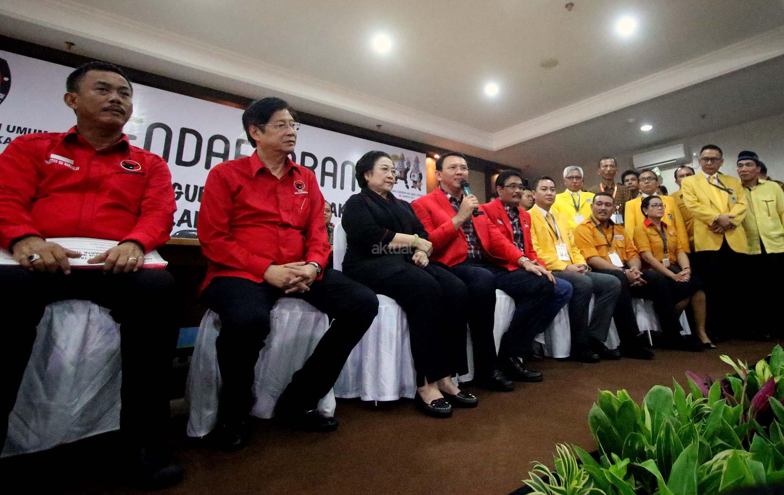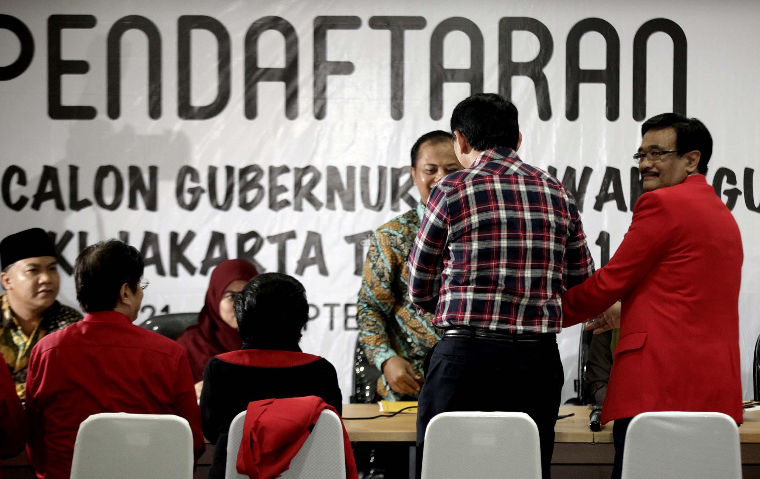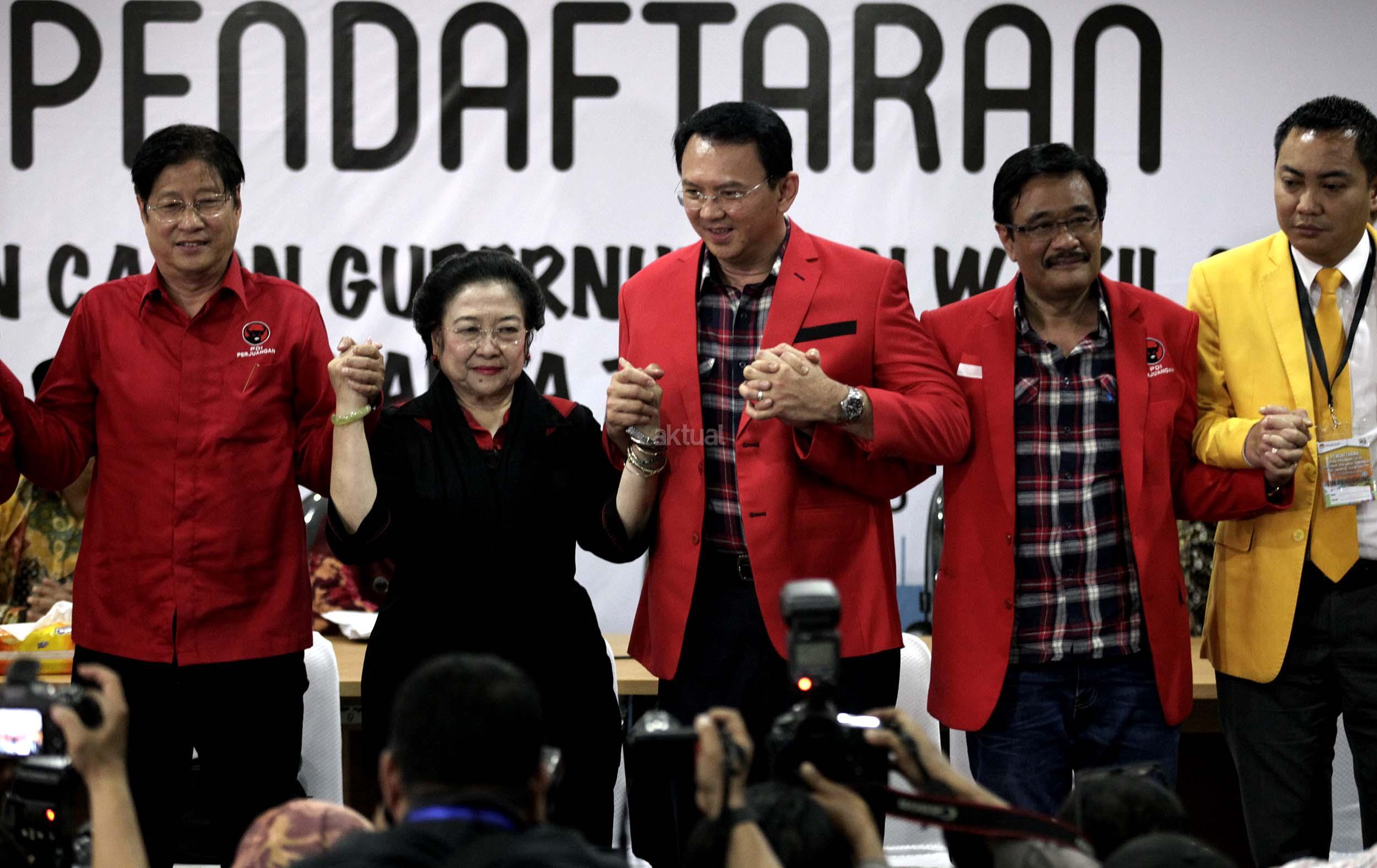 Pasangan Ahok dan Djarot resmi mendaftar ke KPU DKI Jakarta dengan diusung oleh Partai Demokrasi Indonesia Perjuangan (PDIP), Golkar, Nasdem dan Hanura.