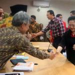 Pasangan Calon gubernur dan calon wakil gubernur DKI petahana, Basuki Tjahaja Purnama (Ahok) dan Djarot Saiful Hidayat menyerahkan formulir pendaftaran pencalonan kepada Ketua KPU DKI Jakarta Sumarno (kiri) disaksikan Ketua Umum PDIP Megawati Soekarnoputri (kanan) di Kantor KPUD DKI Jakarta, Salemba, Rabu (21/9/2016). Pasangan Ahok dan Djarot resmi mendaftar ke KPU DKI Jakarta dengan diusung oleh Partai Demokrasi Indonesia Perjuangan (PDIP), Golkar, Nasdem dan Hanura.