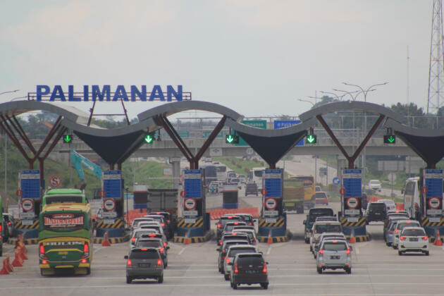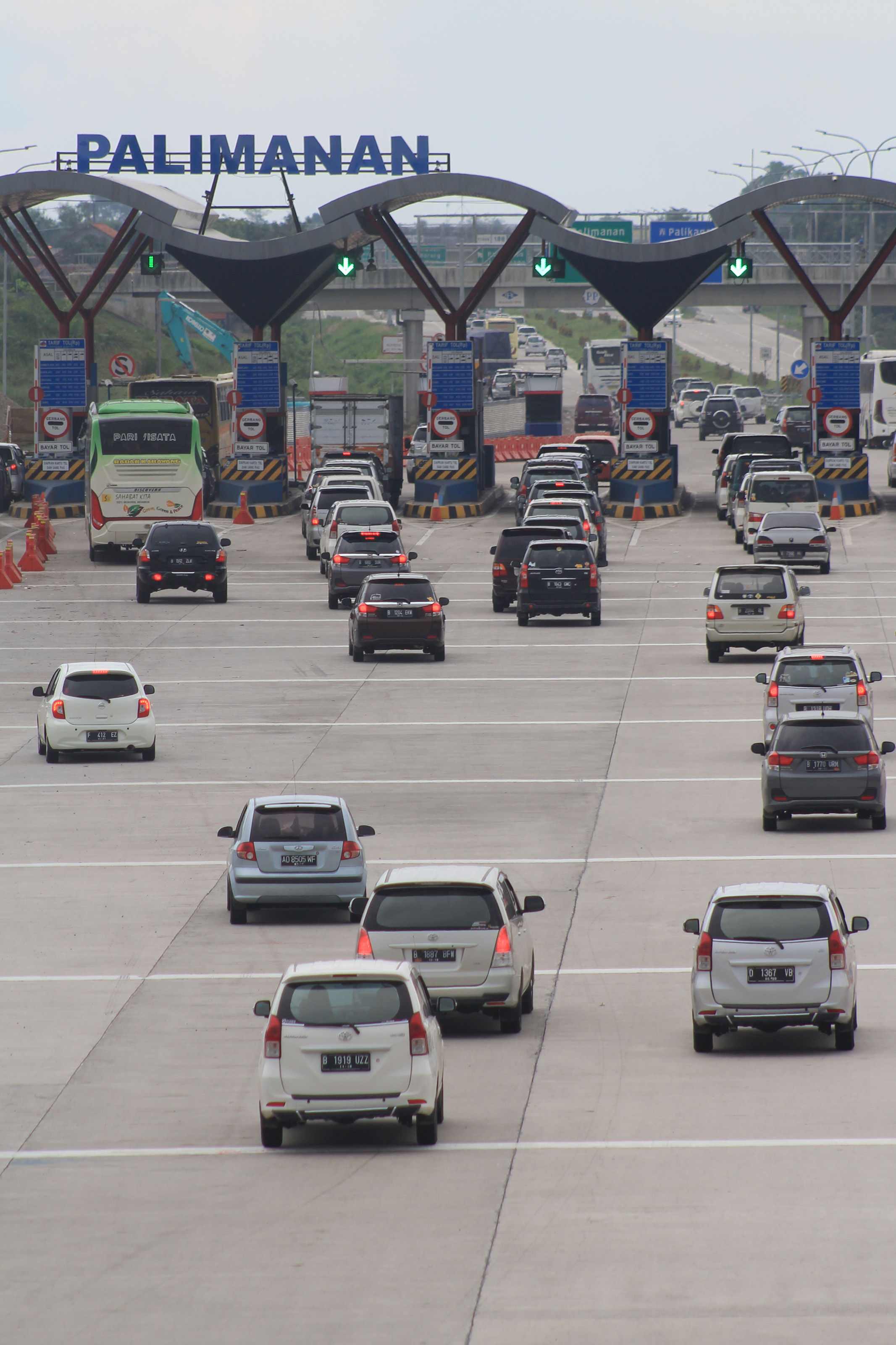 Sejumlah kendaraan memasuki gerbang tol Cipali di Palimanan, Cirebon, Kamis (5/5). Kendaraan yang keluar pintu tol Cipali Palimanan terpantau lancar karena dibukanya 12 loket pembayaran untuk meminimalisir penumpukan kendaraan selama libur akhir pekan ini. ANTARA FOTO/Dedhez Anggara/aww/16.