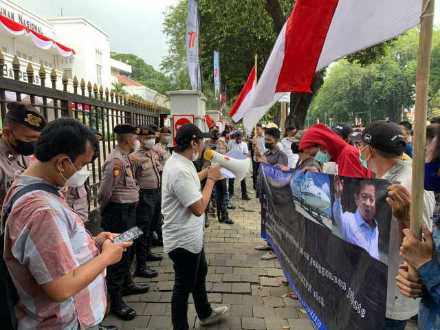 Dalam aksinya, pendemo mengultimatum Kepala Bappenas Suharso Monoarfa.