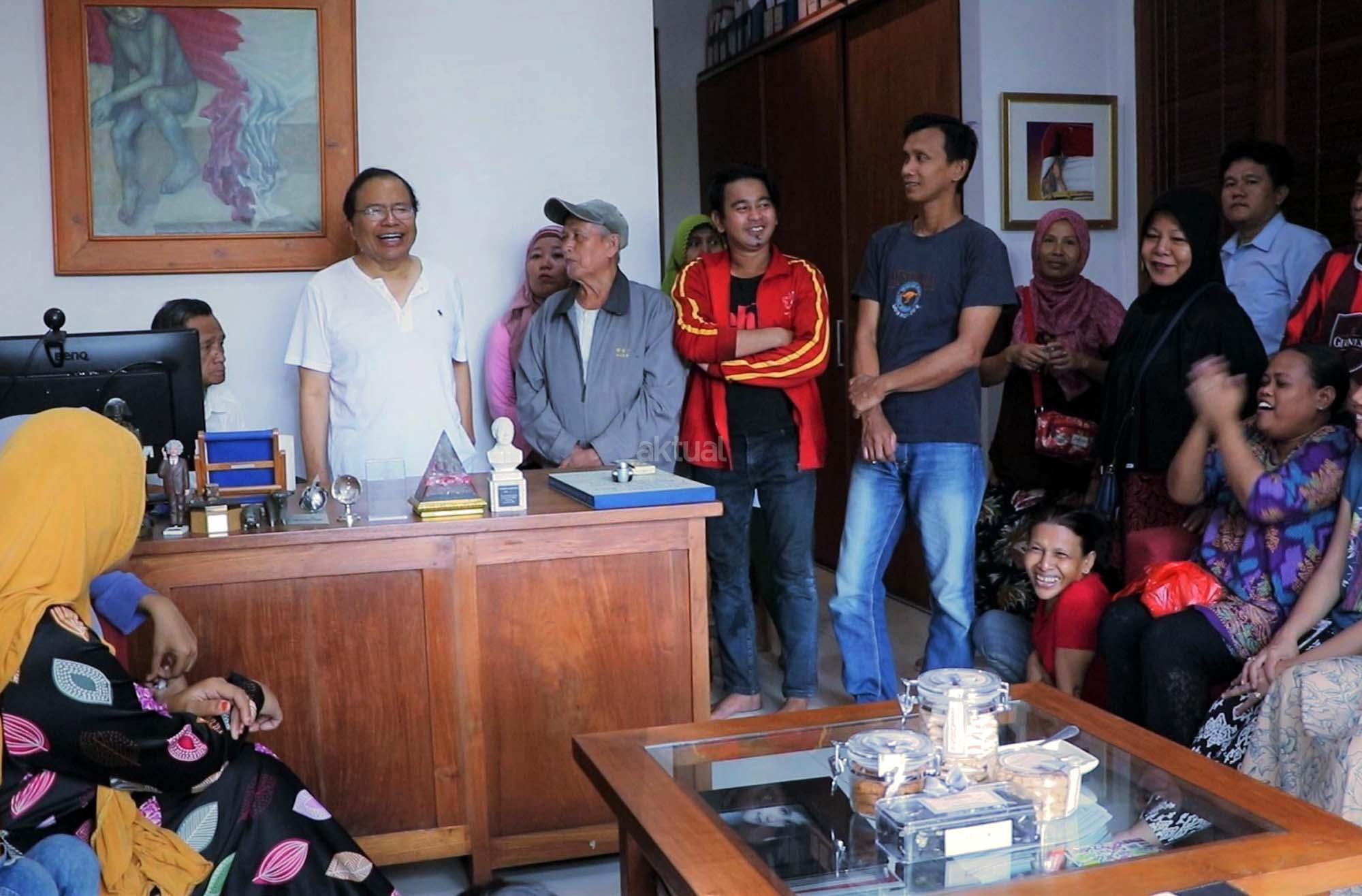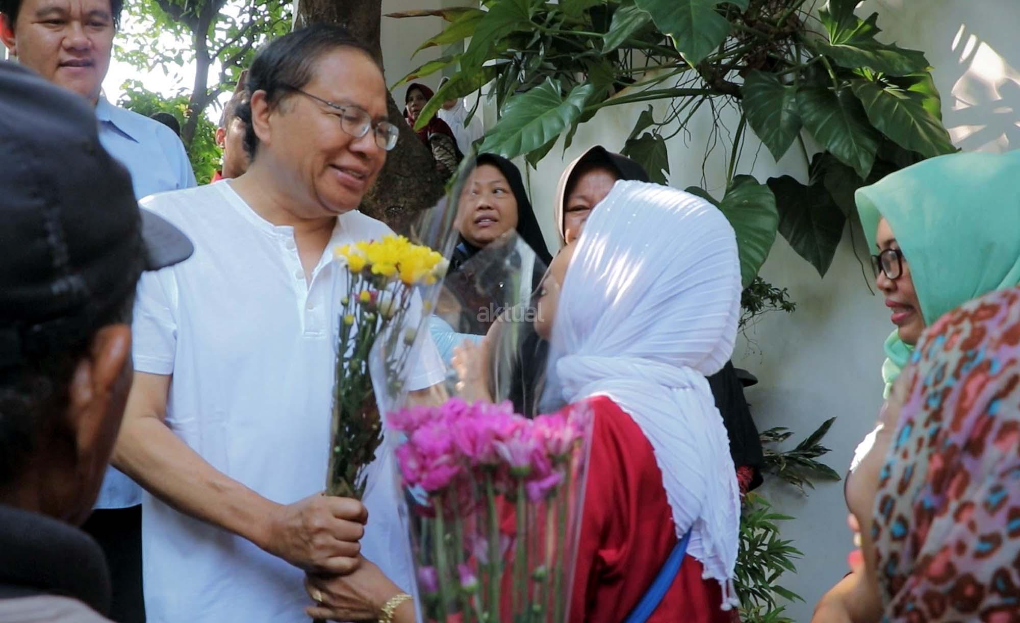 Mantan Menko Perekonomian Rizal Ramli didatangi ratusan warga di kedamannya Jalan Bangka, Kemang, Jakarta Selatan, Rabu (4/7/2018). Kedatangan mereka untuk mendukung Rizal Ramli sebagai Calon Presiden (Capres) 2019. Sambil bersantap makan siang, Rizal Ramli menjawab erbagai pertanyaan dari warga mulai dari harga kebutuhan pokok yang masih tinggi hingga kekhawatiran warga akan naik dan langkanya LPG 3 KG yang disubsidi. AKTUAL/Tino Oktaviano