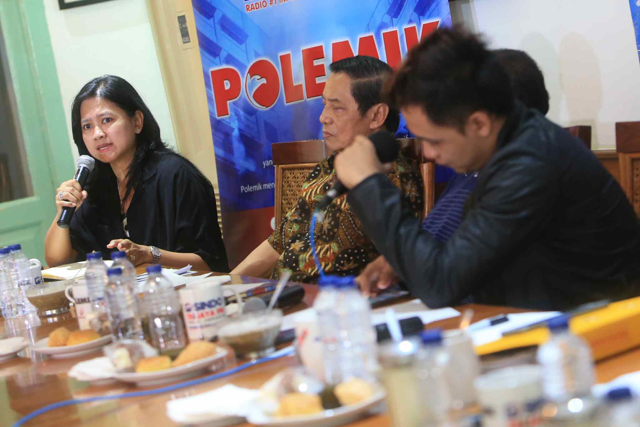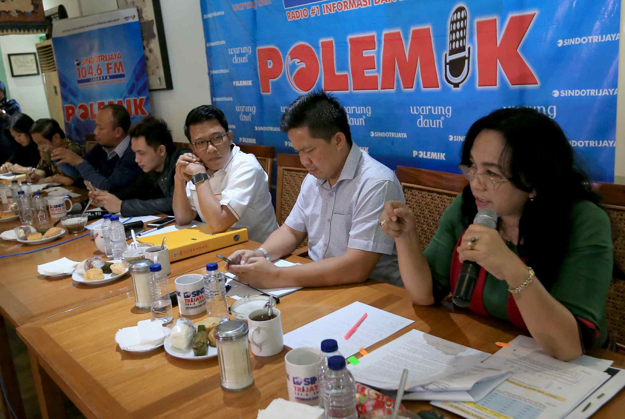 Dari kiri ke kanan, Ketua Center for Indonesia’s Strategic Development, Diah Saminarsih, Guru Besar UI Fakultas Kesehatan Indonesia, Anhari Achadi, Ketua Harian YLKI, Tulus Abadi, Moderator Fadly, Anggota Komisi XI DPR Mukhamad Misbakhun, Kasubdit Tarif Cukai Bea dan Cukai Sunaryo dan Kasubdit Industri Hasil Tembakau dan Bahan Penyegar Kementerian Perindustrian Setyati Endang Nusantari saat diskusi polemik bertajuk ‘Harga Rokok Naik Untuk Siapa ?’ di Jakarta, Sabtu (27/8). Diskusi membahas mengenai isu kenaikan harga rokok yang saat ini tengah menjadi polemik di masyarakat. AKTUAL/TINO OKTAVIANO
