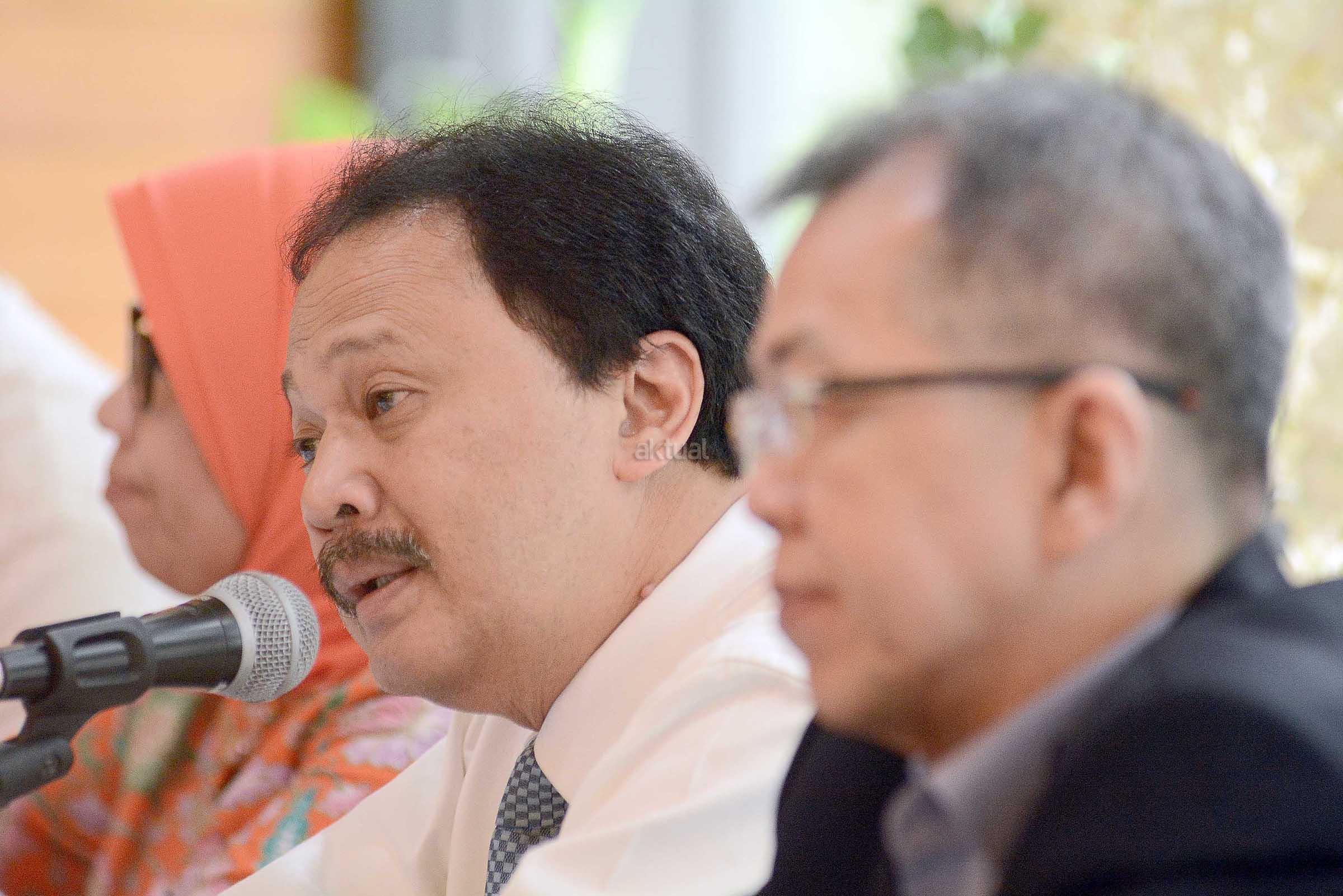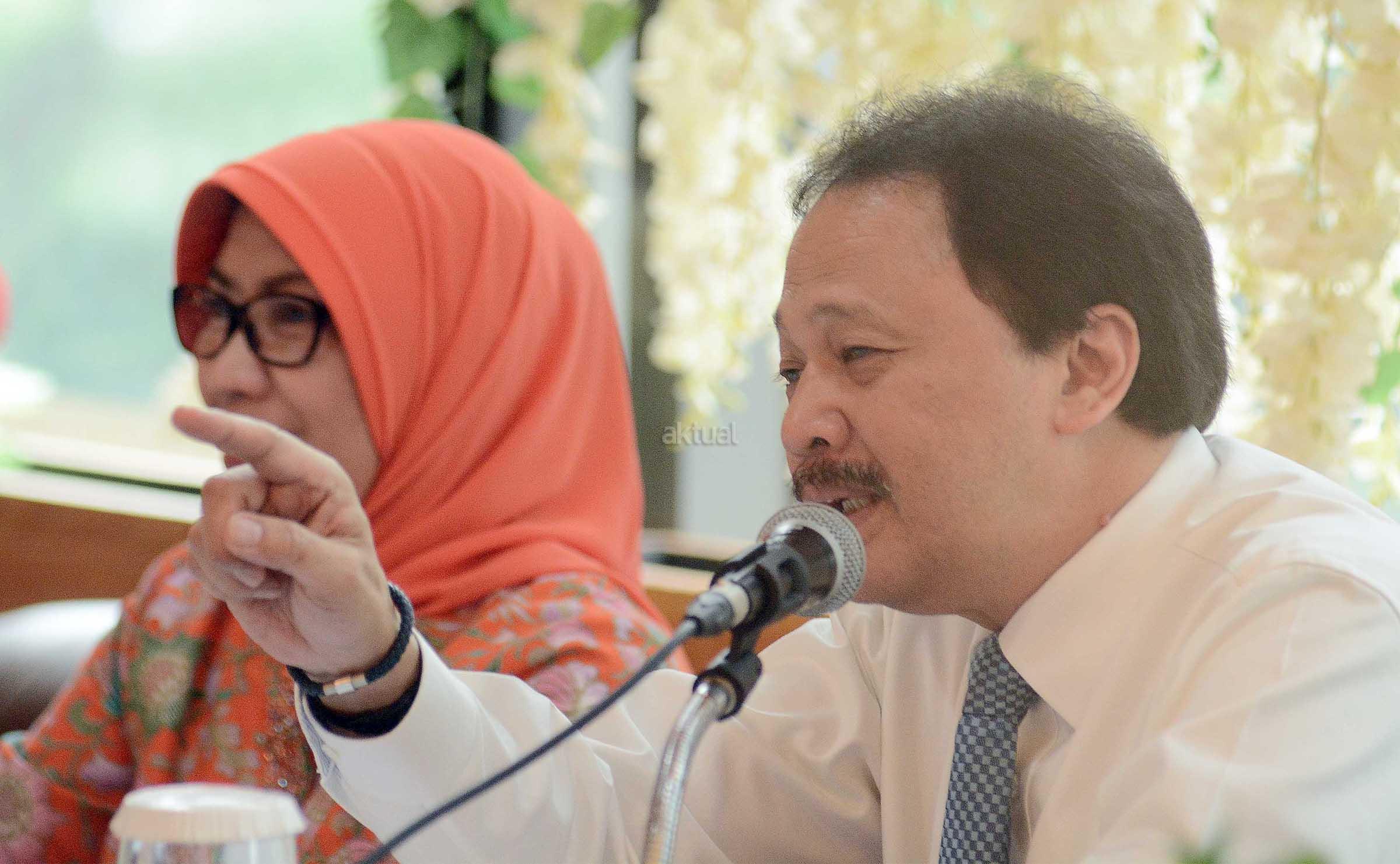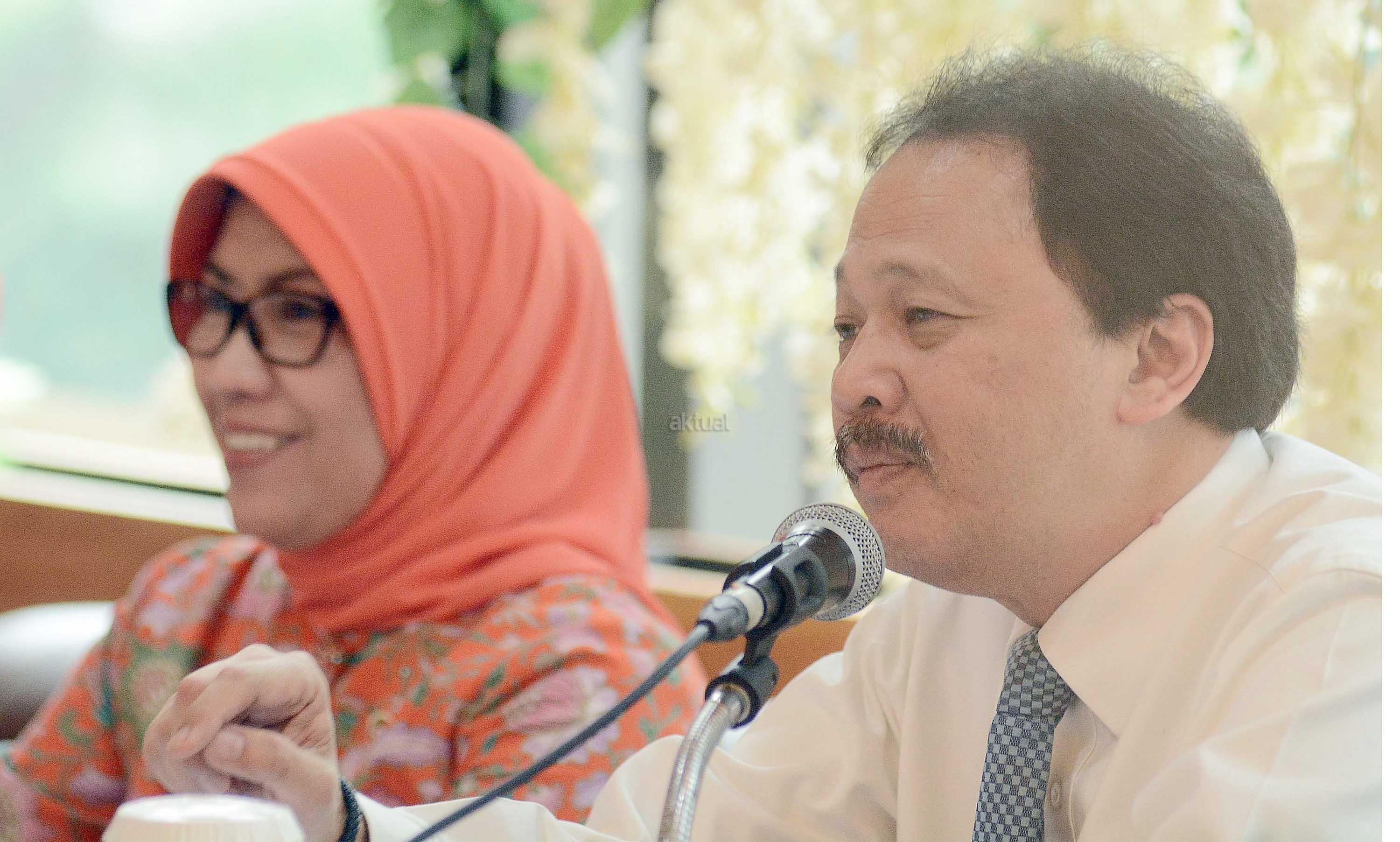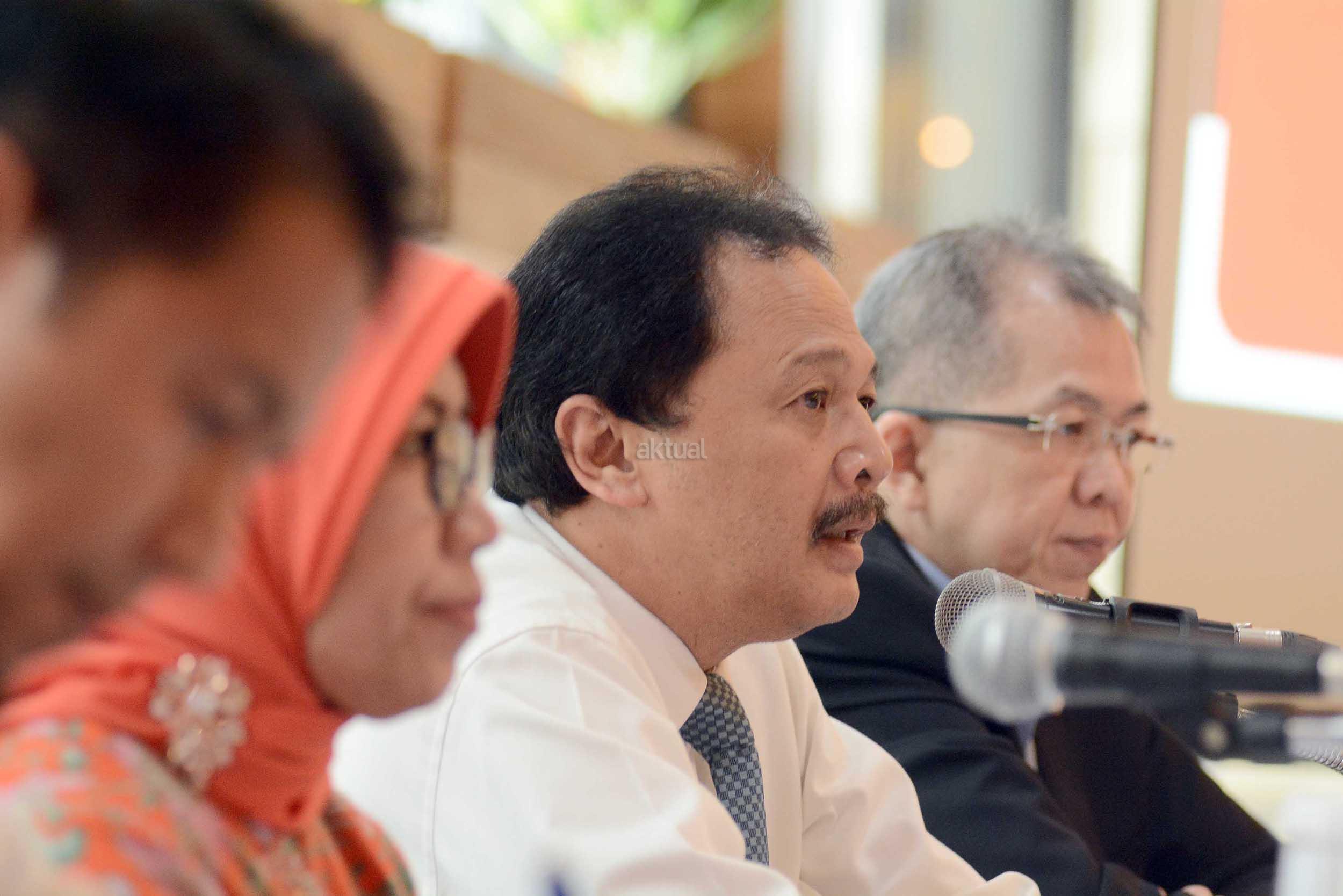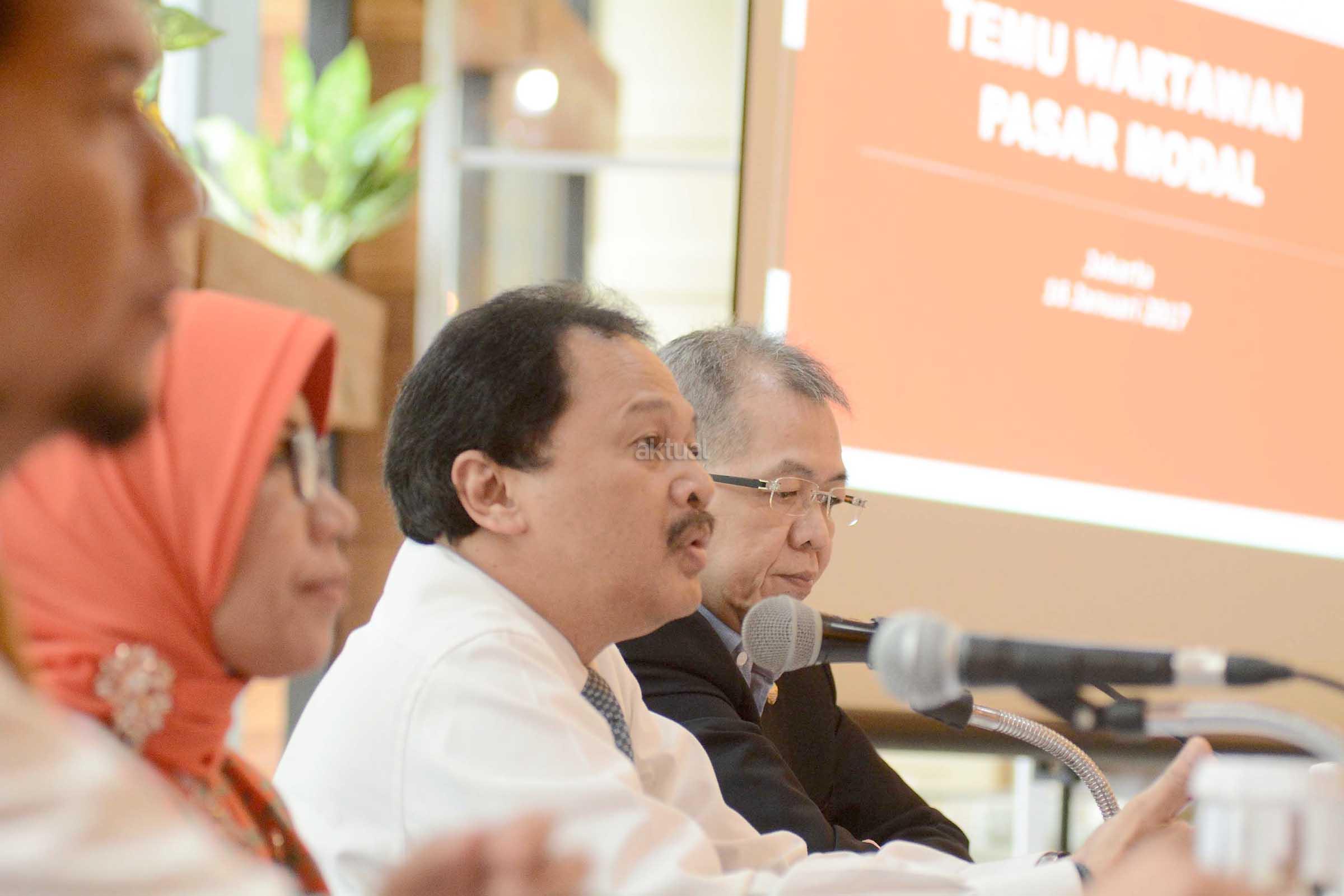 Kepala Eksekutif Pengawas Pasar Modal OJK, Nurhaida ( kiri) bersama Direktur Utama PT Bursa Efek Indonesia, Tito Sulistio dan Direktur BEI, Alpino Kianjaya saat jumpa pers di Gedung BEI,Jakarta ,Senin (16/1).Otoritas Jasa Keuangan (OJK) saat ini tengah melakukan finalisasi persetujuan usulan PT Bursa Efek Indonesia (BEI) yang akan melakukan relaksasi marjin melalui revisi peraturan terkait dengan pembiayaan marjin. Dua peraturan yang direvisi itu adalah Peraturan BEI nomor II-H tentang Persyaratan dan Perdagangan Efek dalam Transaksi​ Marjin dan Transaksi Short Selling, serta nomor III-I tentang Keanggotaan Marjin atau Short Selling.Nantinya diharapkan Dengan adanya relaksasi marjin ini diharapkan dapat meningkatkan nilai transaksi saham anggota bursa efek dan dapat meningkan permodalan anggota bursa. Aktual.com/Eko S Hilman