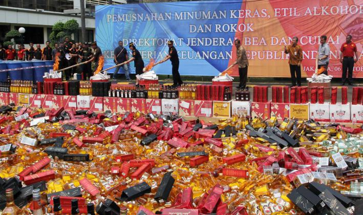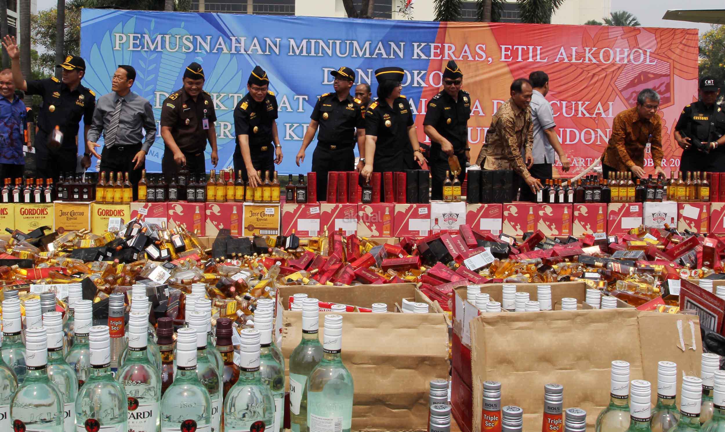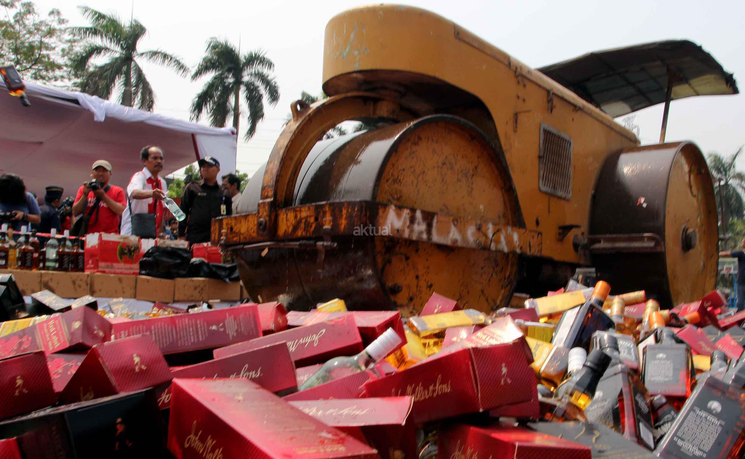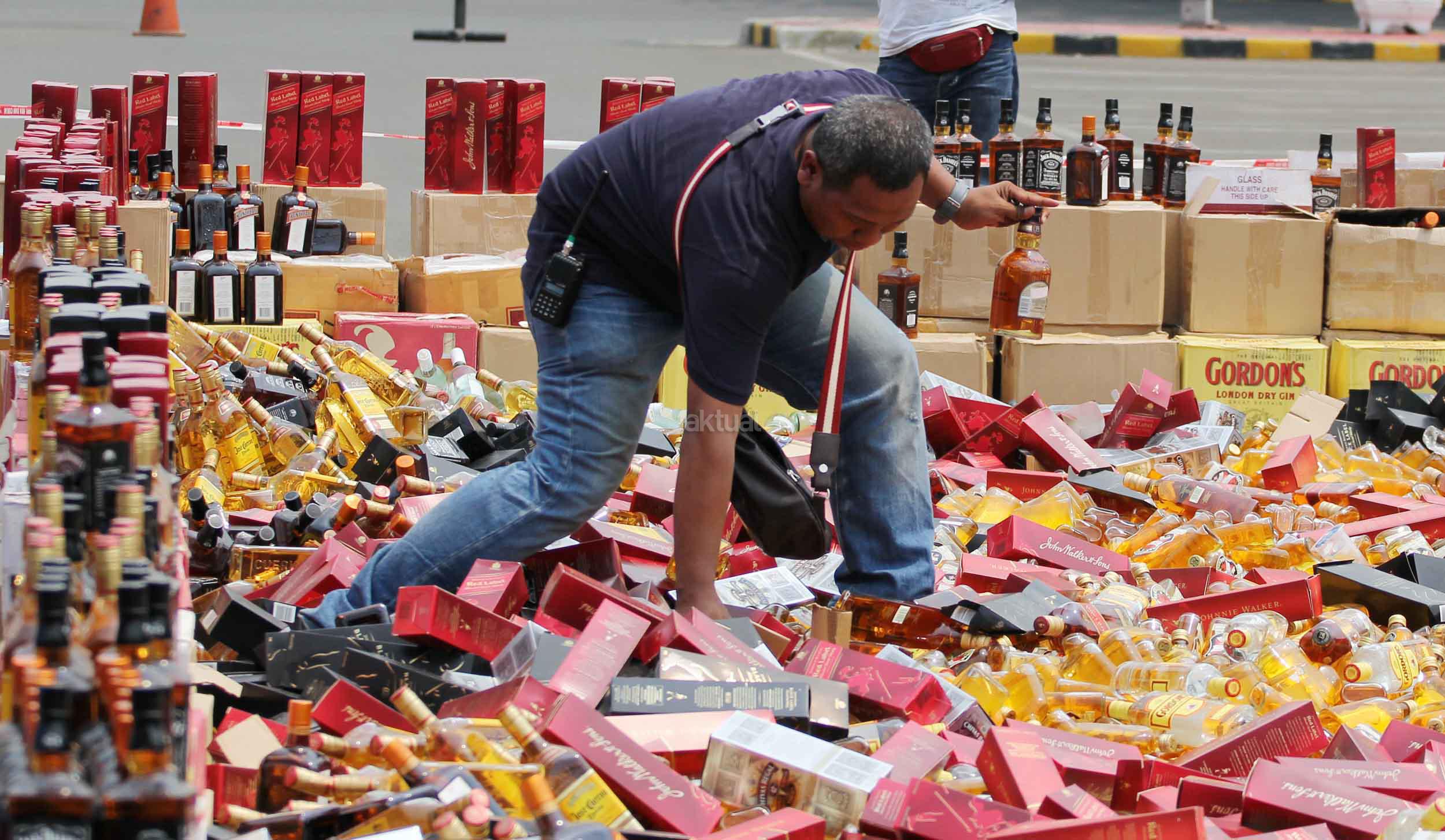 Barang bukti yang dimusnahakan terdiri dari minuman keras ilegal impor sejumlah 5.767 botol, minuman keras lokal 7.2000, dengan total kerugian negara mencapai lima miliar delapan ratus tujuh puluh tiga juta tiga ratus enam puluh enam rupiah.