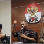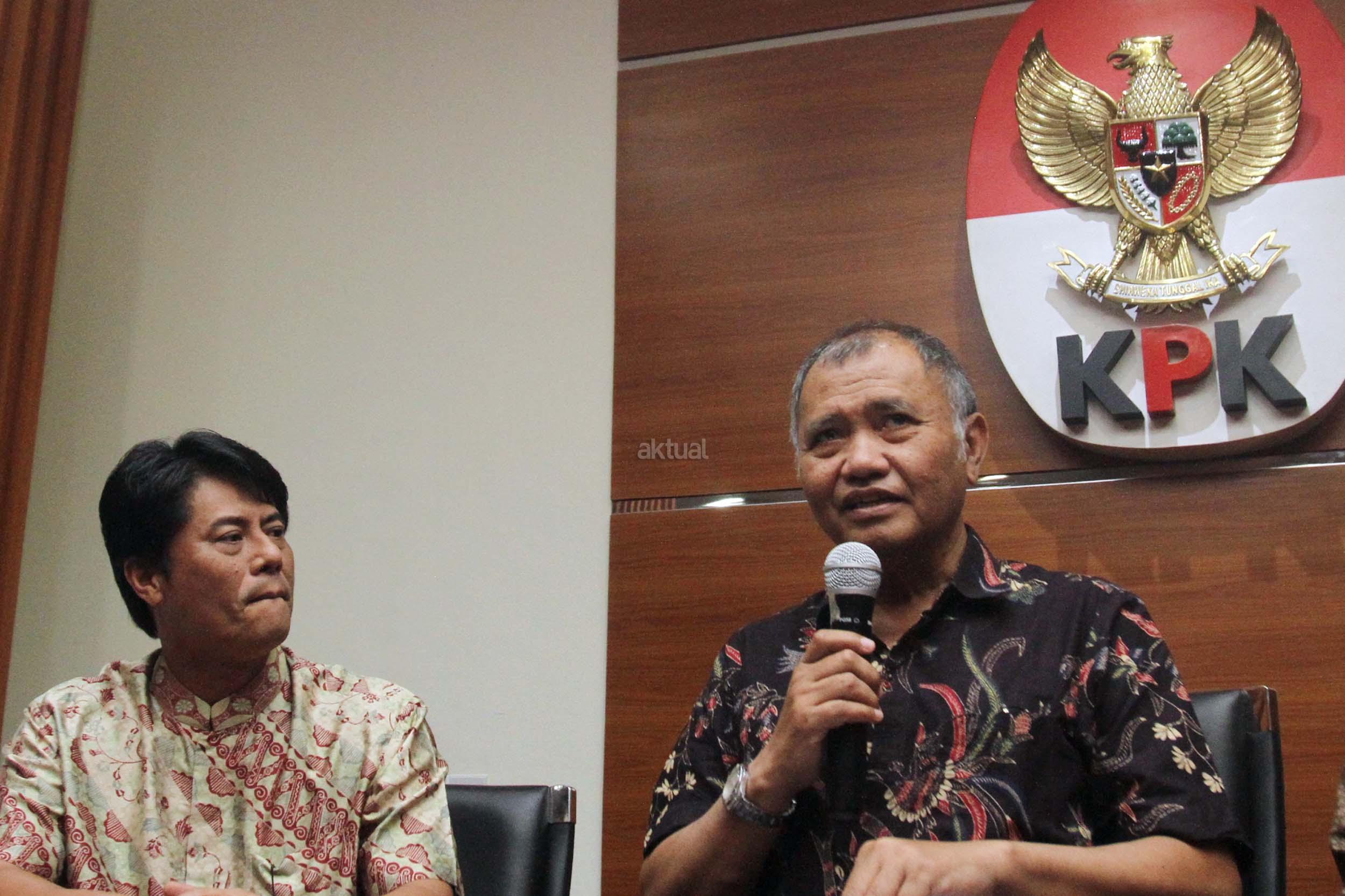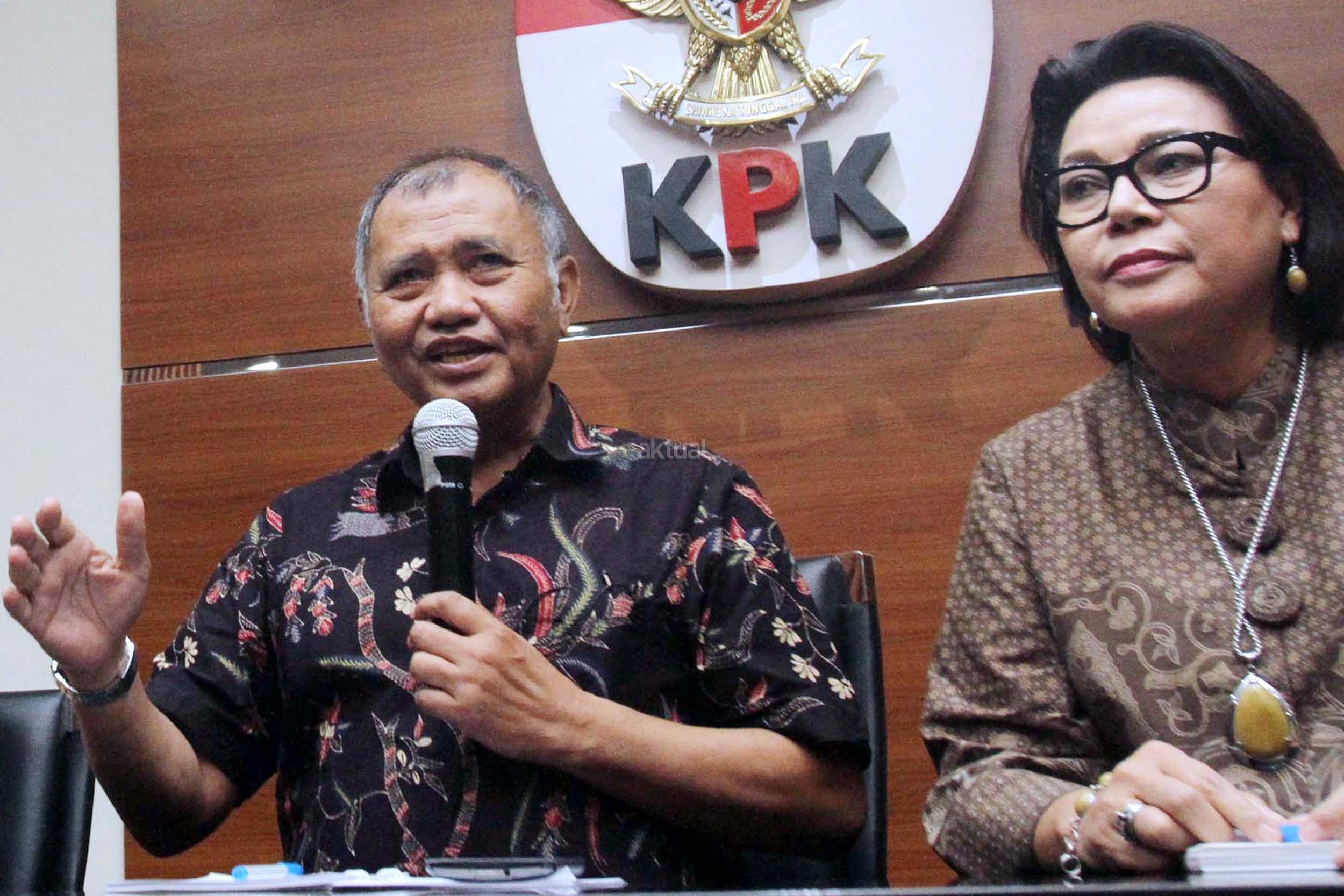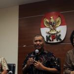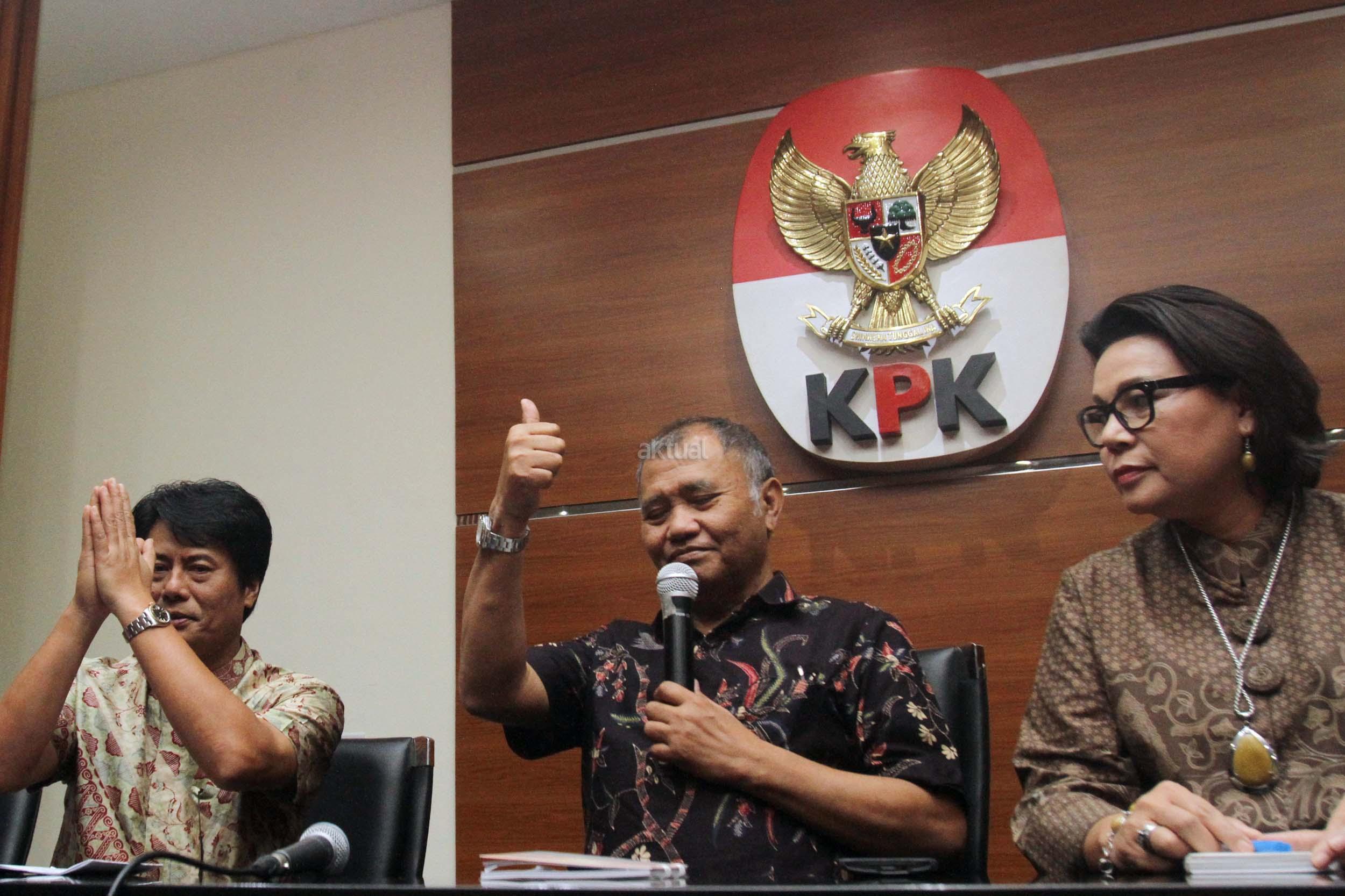 Ketua KPK Agus Rahardjo (tengah), bersama Pimpinan KPK Basaria Panjaitan (kanan), mendampingi Direktur Utama (Dirut) PT Pertamina (Persero) Elia Massa Manik ( kiri), memberikan keterangan kepada wartawan usai menemui pimpinan KPK di Gedung KPK, Jakarta, Senin (20/3/2017). Kedatangan Dirut baru Pertamina ke KPK, selain untuk mengenalkan diri juga meminta pendampingan KPK ditiap-tiap proyek-proyek Pertamina. AKTUAL/Munzir