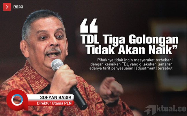 Jakarta, Aktual.co —   Direktur Utama ‎PT PLN (Persero) Sofyan Basir memastikan tidak akan menaikan tarif dasar listrik (TDL) untuk golongan listrik rumah tangga berkapasitas 900 volt ampere (VA), 1.300VA, dan 2.200VA pada Mei 2015 mendatang.