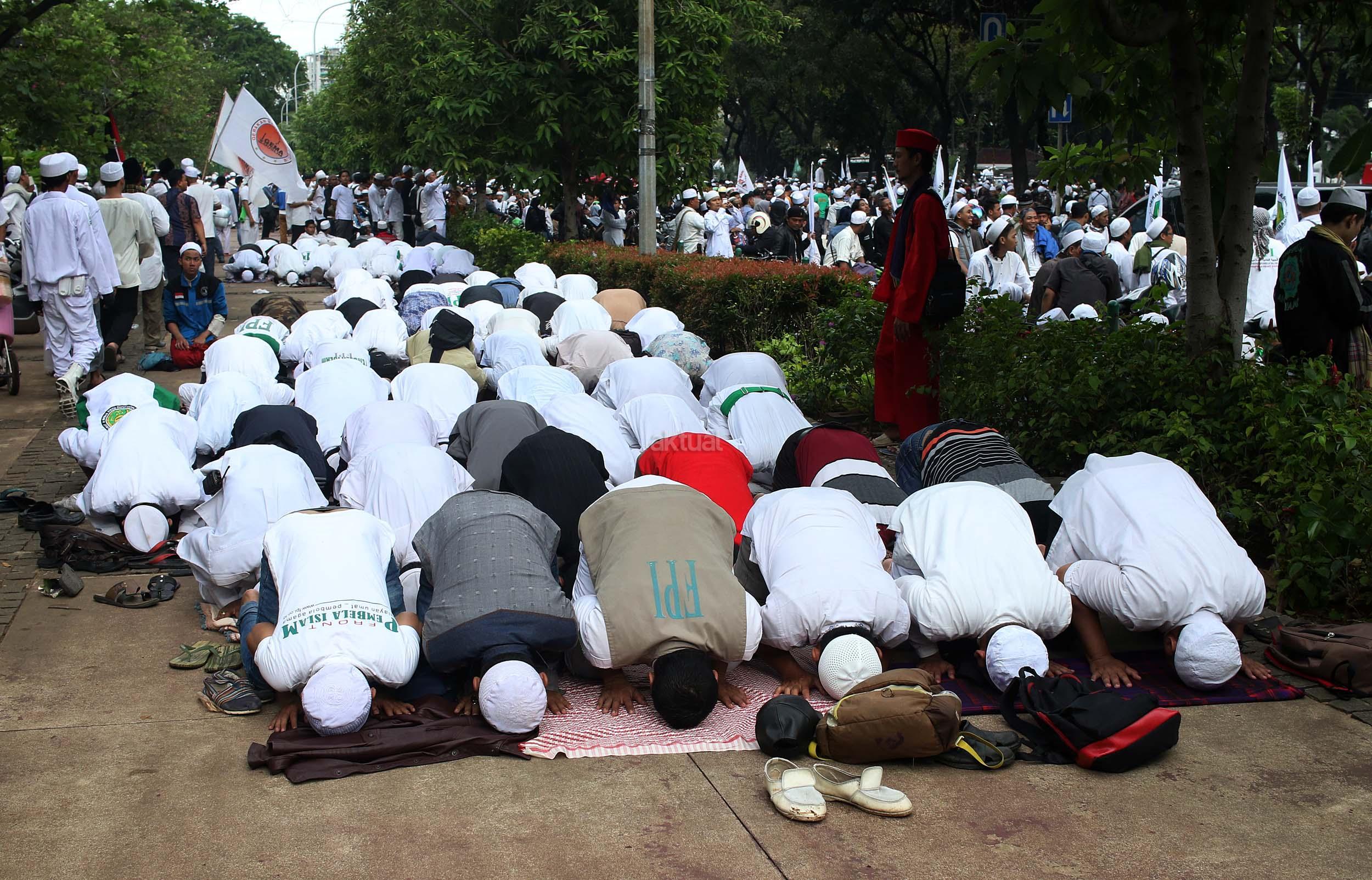 Disela Aksi Demo Ahok, Massa Gabungan Ormas Islam Salat Ashar Berjamaah