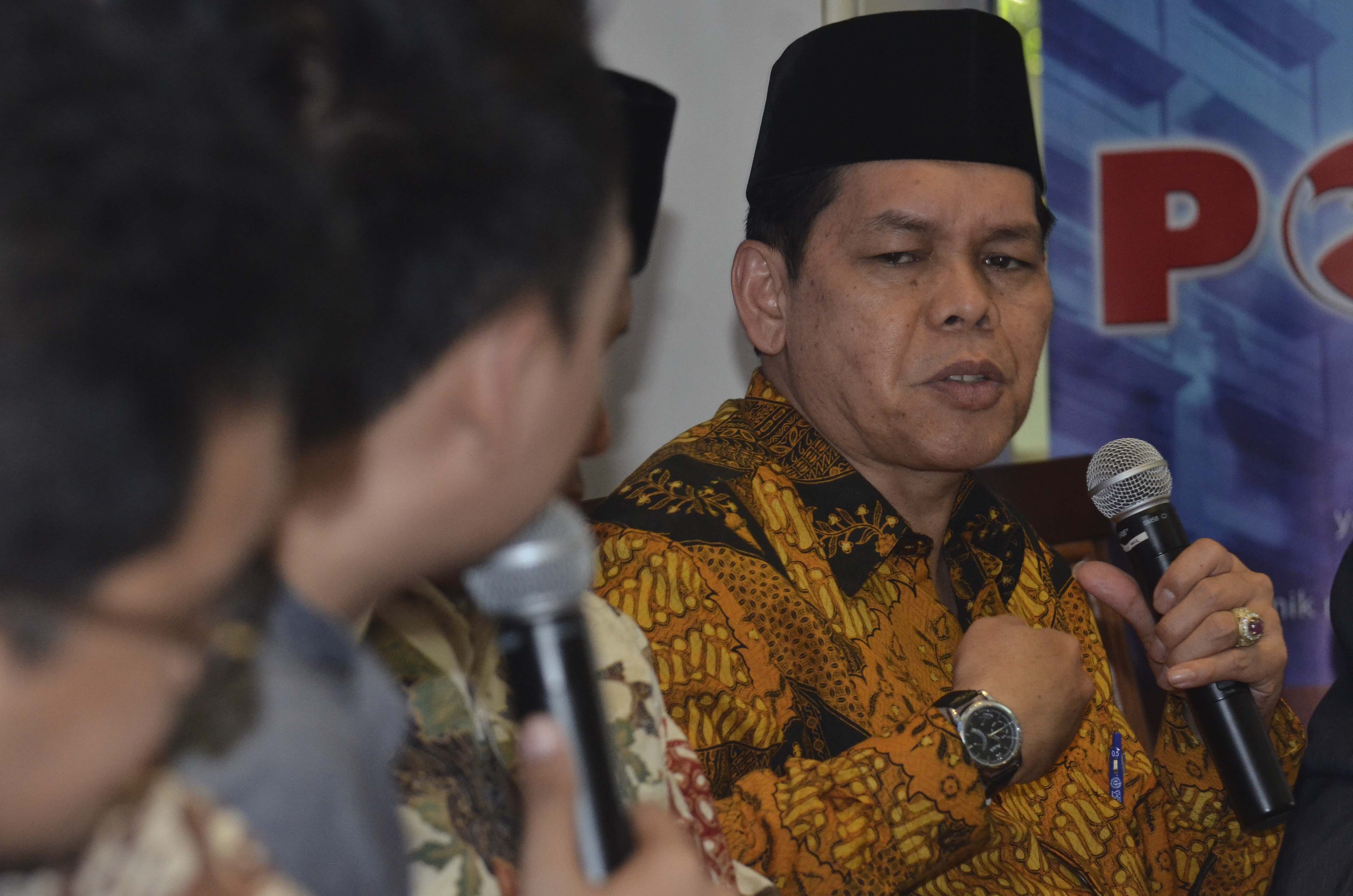 Wakil Sekjen Majelis Ulama Indonesia (MUI) Pusat Amirsyah Tambunan saat diskusi bertajuk ‘Angeline Wajah Kita’ di Jakarta, Sabtu (13/6/2015). Menurut Erlinda perlindungan anak yang mulai termarjinalkan berarti bencana nasional. Sehingga perubahan Pasal 39 UU Perlindungan Anak perlu diperketat demi hak-hak si anak agar proses adopsi anak di Indonesia bisa lebih baik. AKTUAL/JUNAIDI MAHBUB