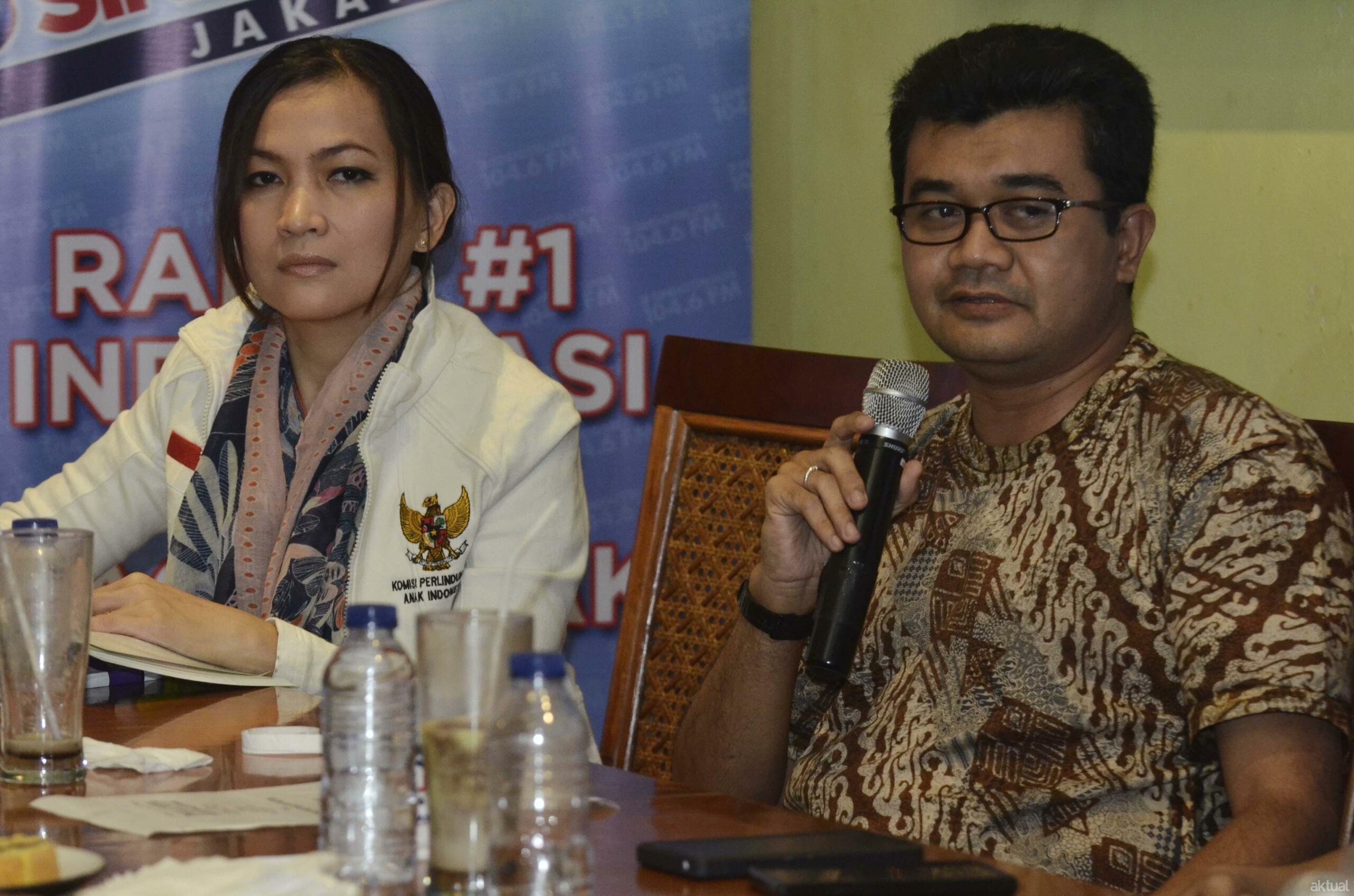 Sekjen Komisi Perlindungan Anak Indonesia (KPAI) Erlinda berbicara didampingi Anggota DPR RI Komisi VIII-FPKB Maman Imanul Haq dan Wakil Sekjen Majelis Ulama Indonesia (MUI) Pusat Amirsyah Tambunan saat diskusi bertajuk ‘Angeline Wajah Kita’ di Jakarta, Sabtu (13/6/2015). Menurut Erlinda perlindungan anak yang mulai termarjinalkan berarti bencana nasional. Sehingga perubahan Pasal 39 UU Perlindungan Anak perlu diperketat demi hak-hak si anak agar proses adopsi anak di Indonesia bisa lebih baik. AKTUAL/JUNAIDI MAHBUB