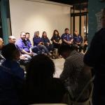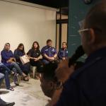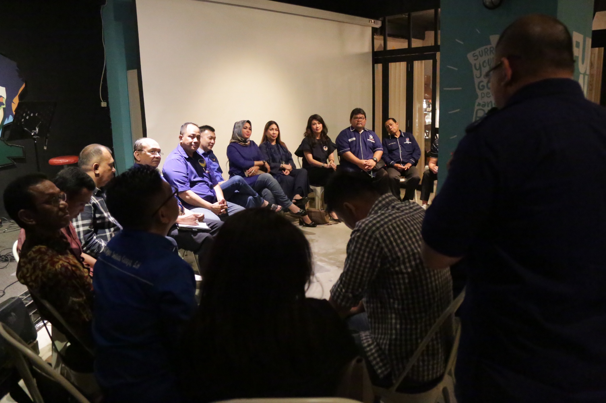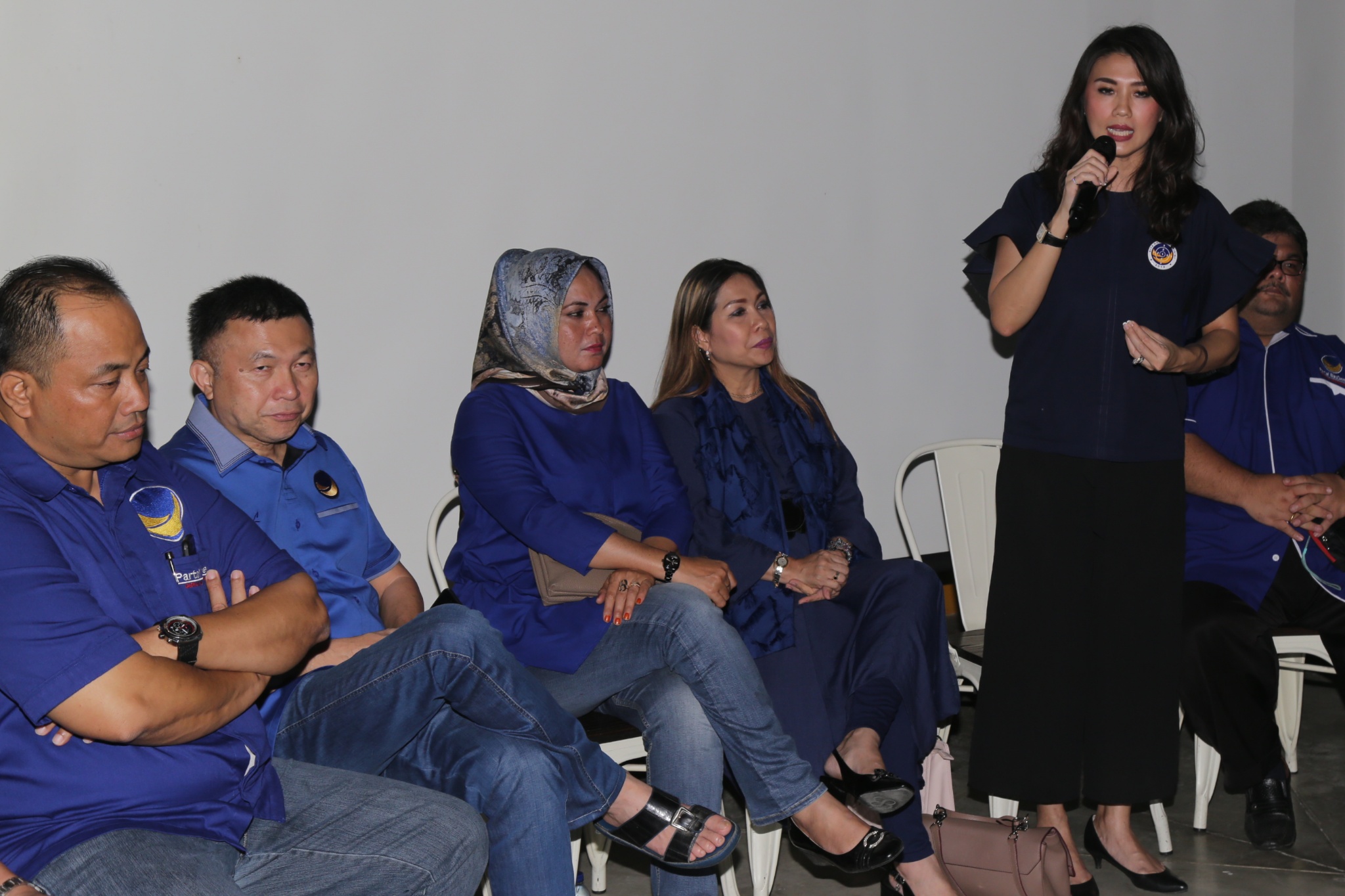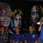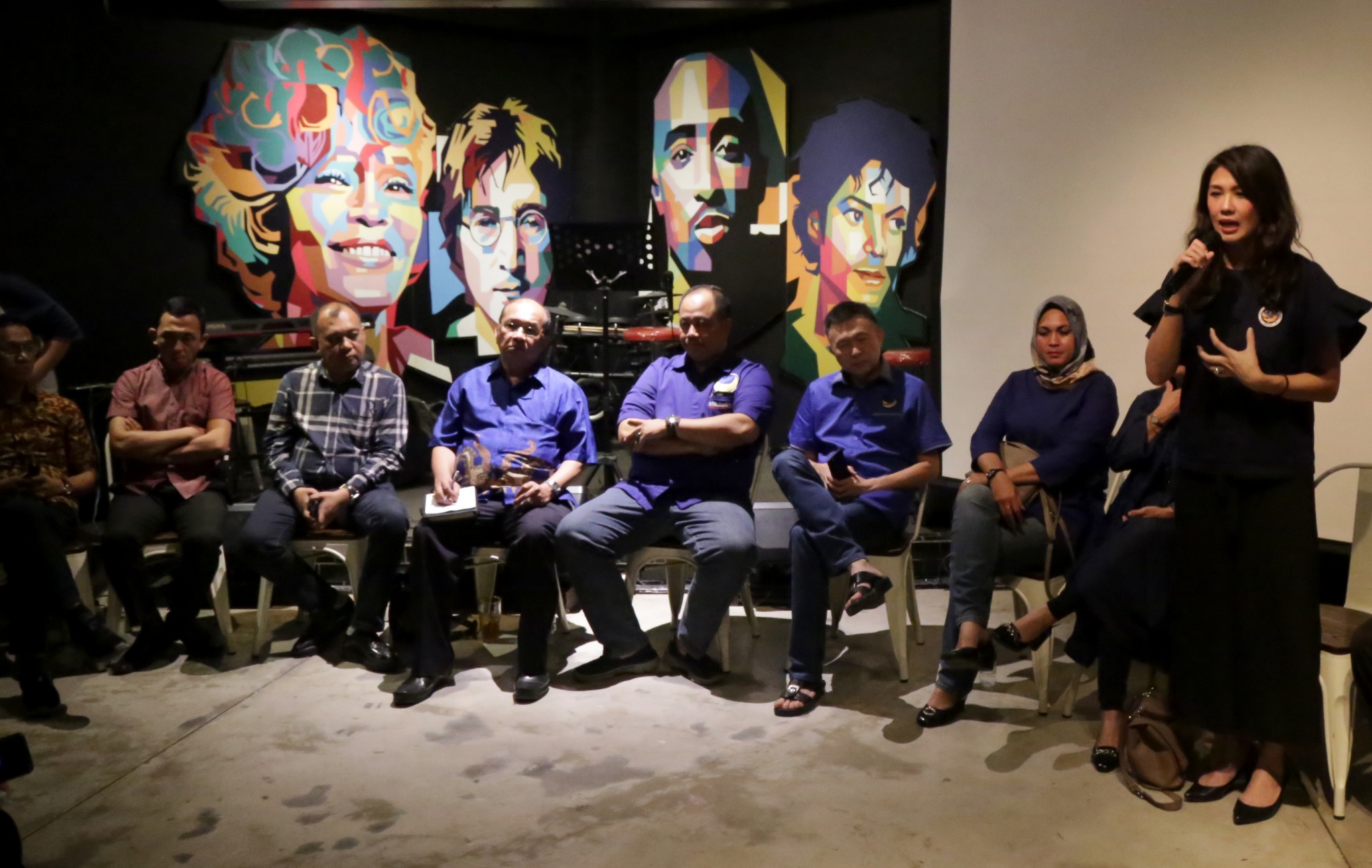 Ketua DPD Jakarta Barat Partai Nasdem Abdul Abdul Aziz (kiri), Calon Anggota DPR RI Dapil Jakarta III Karna Brata Lesmana (kedua kiri), Calon Anggota DPRD DKI Jakarta Dapil Jakarta X Joice Triatman (kanan) bersama Caleg Partai Nasdem Se DKI Jakarta menjadi pembicara diskusi bertema “Caleg Partai NasDem Siap Patahkan Ramalan Lembaga Survei” di Metro Coffee Jalan Tanjung Karang Jakarta Pusat, Minggu (30/9) malam. Sejumlah caleg Partai NasDem dari dapil Jakarta III dan caleg DPRD DKI Jakarta memaparkan ide dan gagasan untuk memenangkan pileg dan pilpres 2019. AKTUAL/Tino Oktaviano