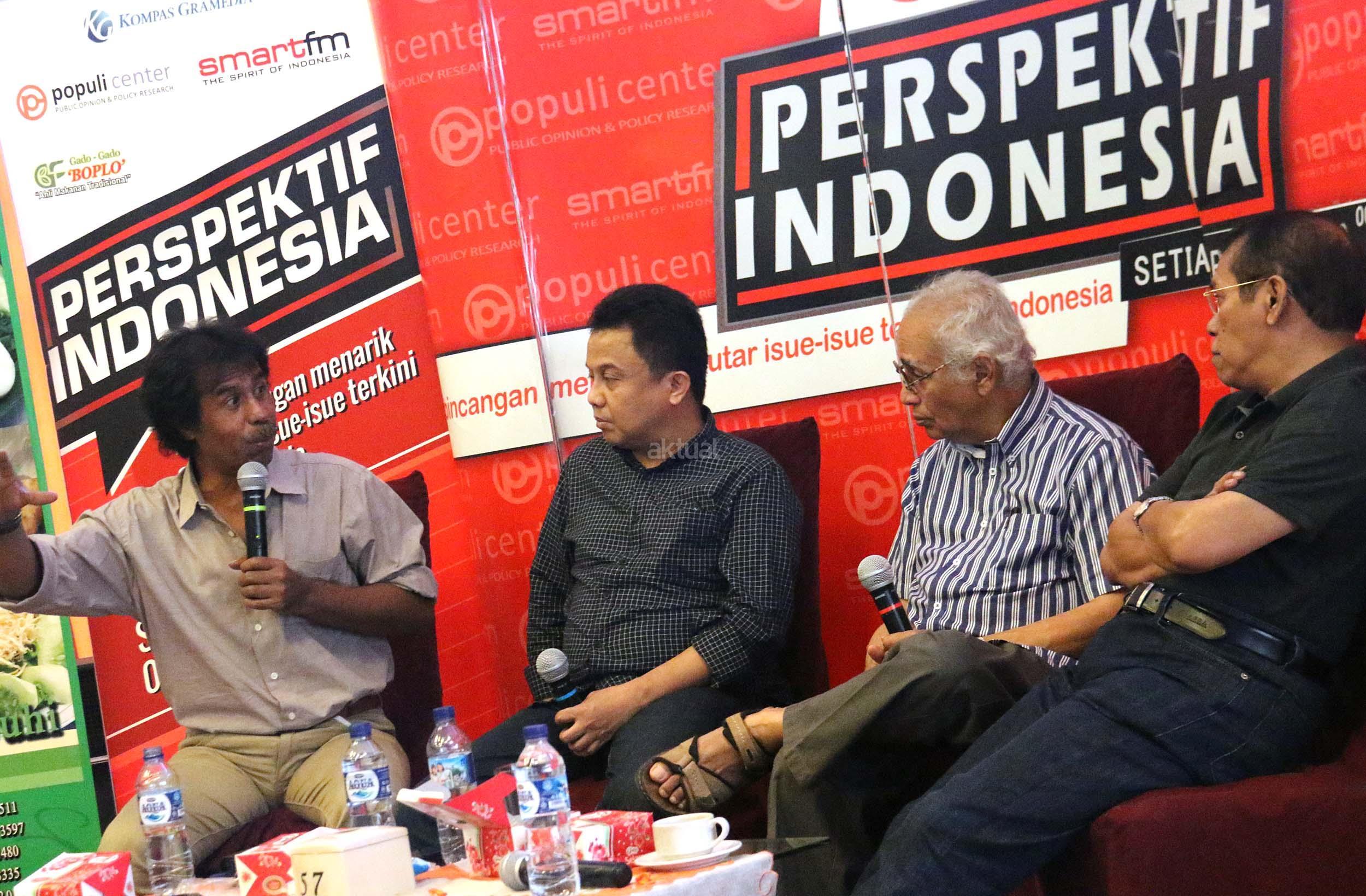Kiri-kanan ; Ahli Hukum Tata Negara Margarito Kamis, Host Ichan Loulembah, Guru Besar Universitas Pertahanan Salim Said, Ahli Politi Islam Fachry Ali, dalam diskusi Perspektif Indonesia di Jakarta, Sabtu (5/11/2016). Diskusi yang diselenggarakan Populi Center mengambil tema “Setelah Demo 411”. AKTUAL/Munzir