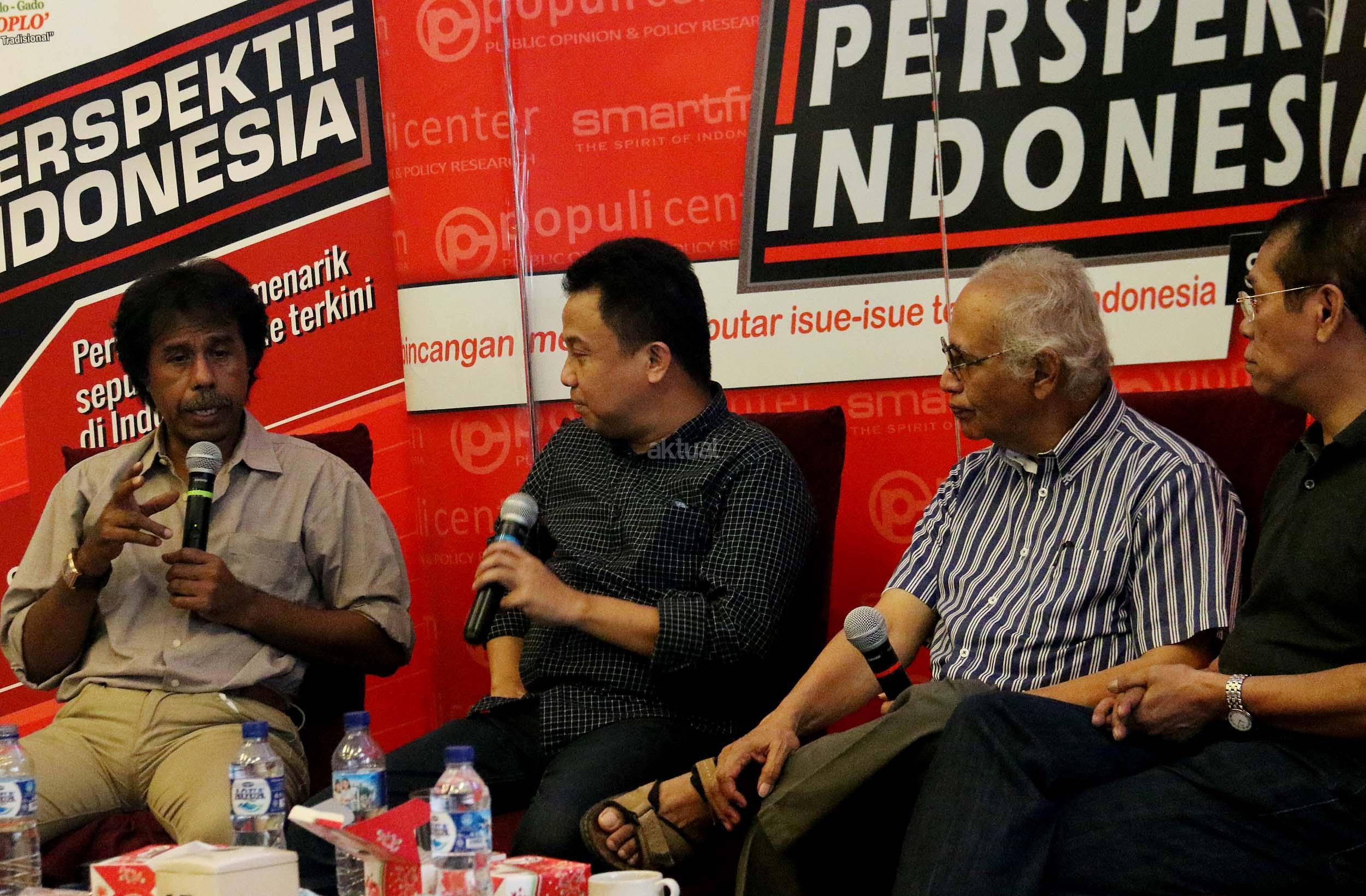 Kiri-kanan ; Ahli Hukum Tata Negara Margarito Kamis, Host Ichan Loulembah, Guru Besar Universitas Pertahanan Salim Said, Ahli Politi Islam Fachry Ali, dalam diskusi Perspektif Indonesia di Jakarta, Sabtu (5/11/2016). Diskusi yang diselenggarakan Populi Center mengambil tema "Setelah Demo 411". AKTUAL/Munzir