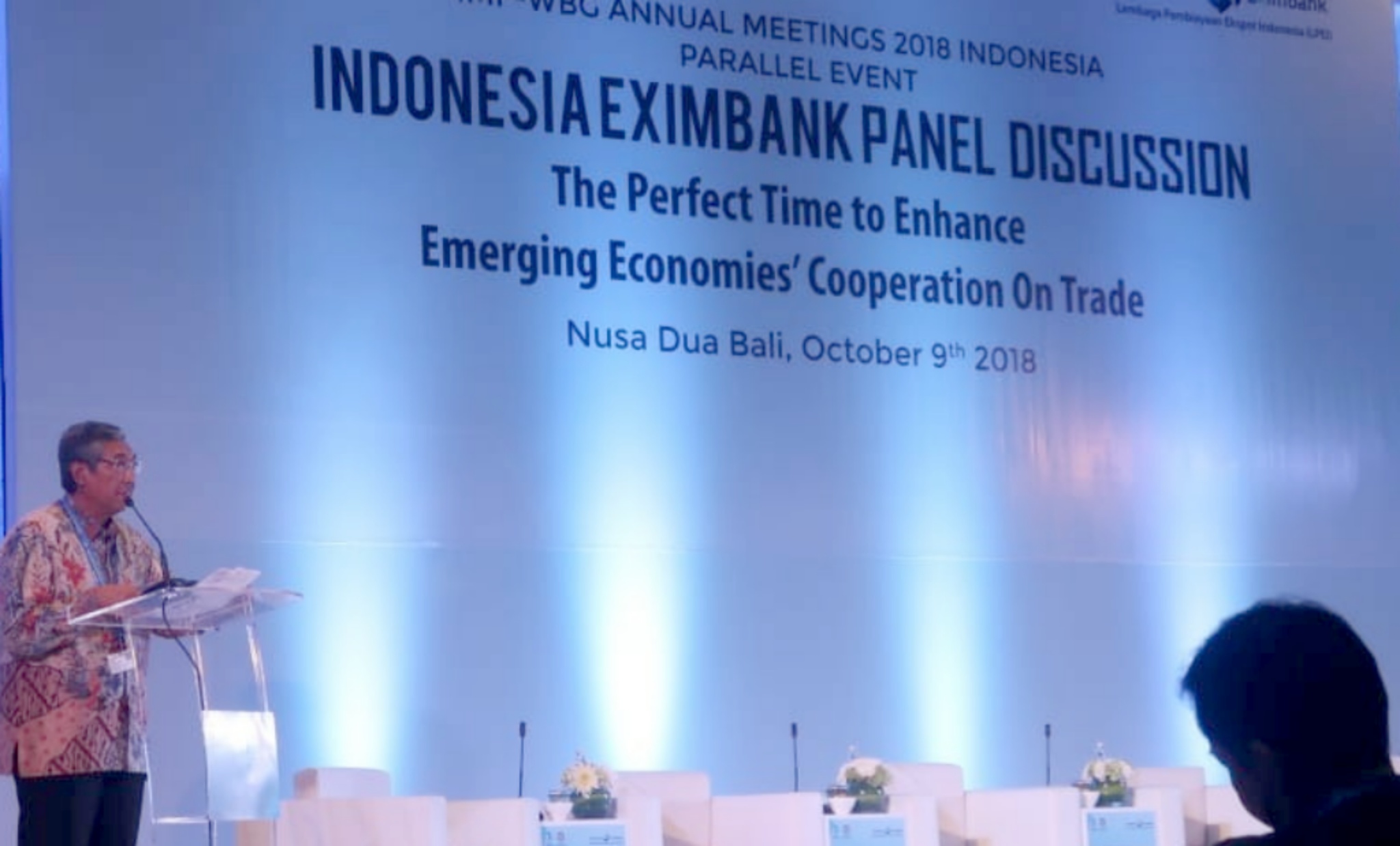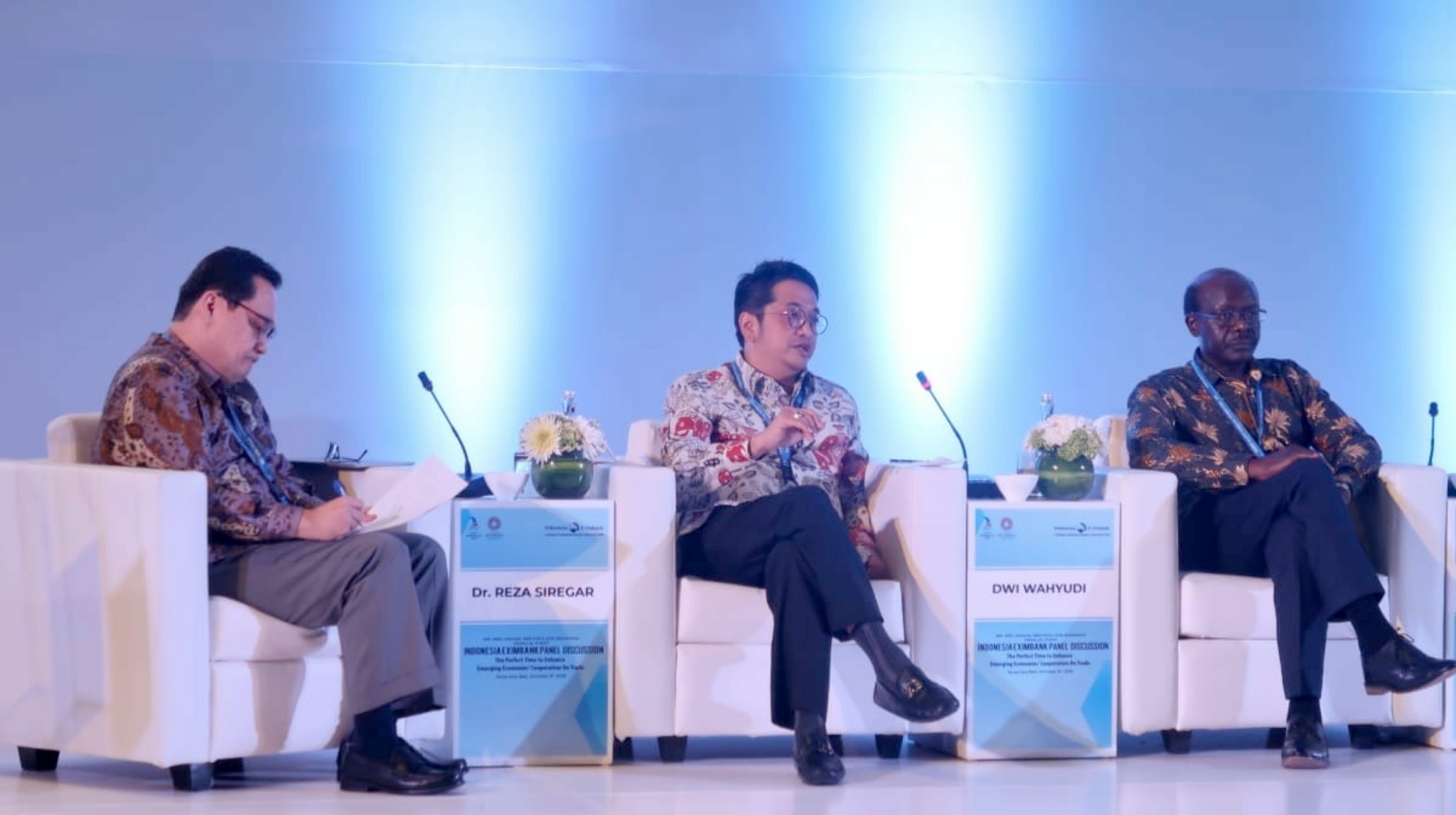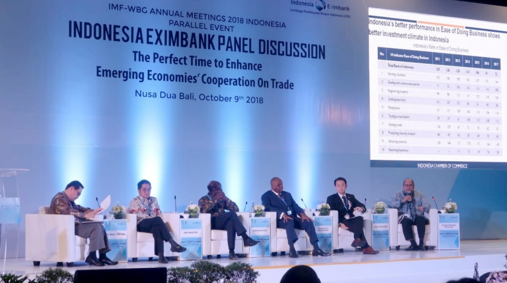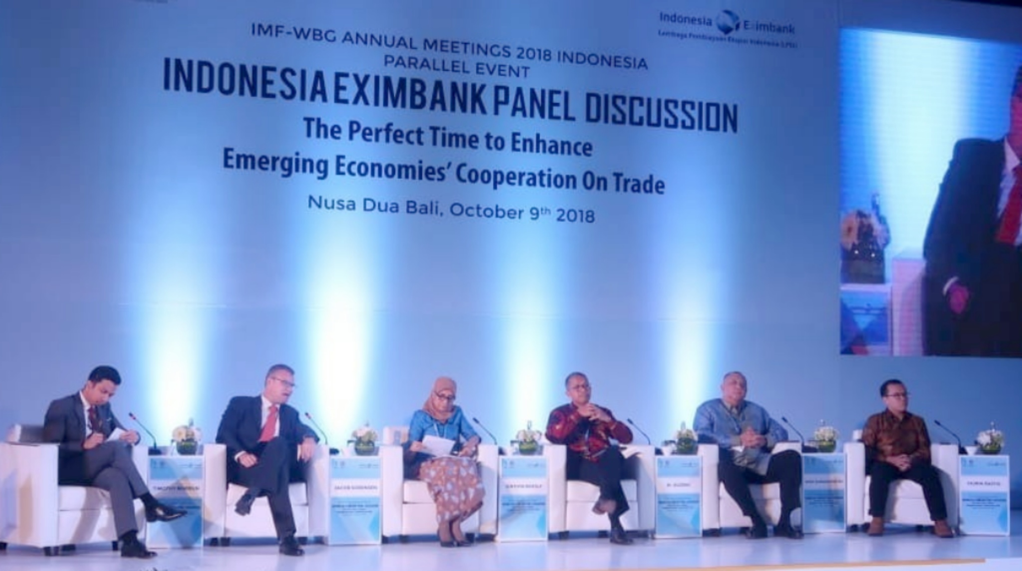 Diskusi Panel kedua “The Growing Importance of South-South Cooperation Amid Trade Tensions and Global Financial Market Volatility”. Moderator Dr. Reza Siregar, Direktur Pelaksana I LPEI Dwi Wahyudi, Secretary General UNCTAD Dr. Mukhisa Kituyi, Chairman and President of African Export-Import Bank Dr. Benedict Oramah, (Deputy Director of AMRO), Rosan Perkasa Roeslani (Ketua Kamar Dagang Indonesia) Yasuto Watanabe. AKTUAL/IST
