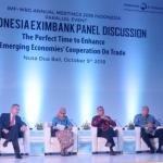 Diskusi Panel kedua "The Growing Importance of South-South Cooperation Amid Trade Tensions and Global Financial Market Volatility". Moderator Dr. Reza Siregar, Direktur Pelaksana I LPEI Dwi Wahyudi, Secretary General UNCTAD Dr. Mukhisa Kituyi, Chairman and President of African Export-Import Bank Dr. Benedict Oramah, (Deputy Director of AMRO), Rosan Perkasa Roeslani (Ketua Kamar Dagang Indonesia) Yasuto Watanabe. AKTUAL/IST