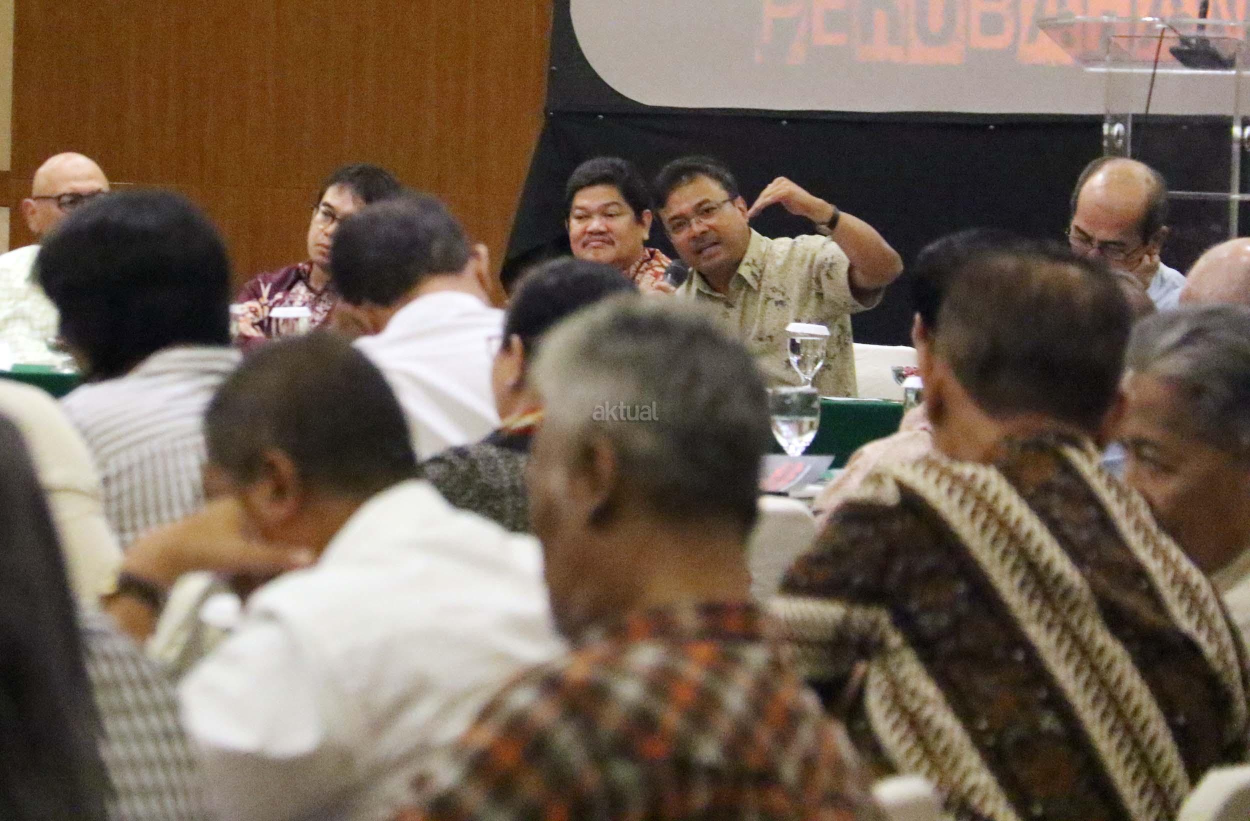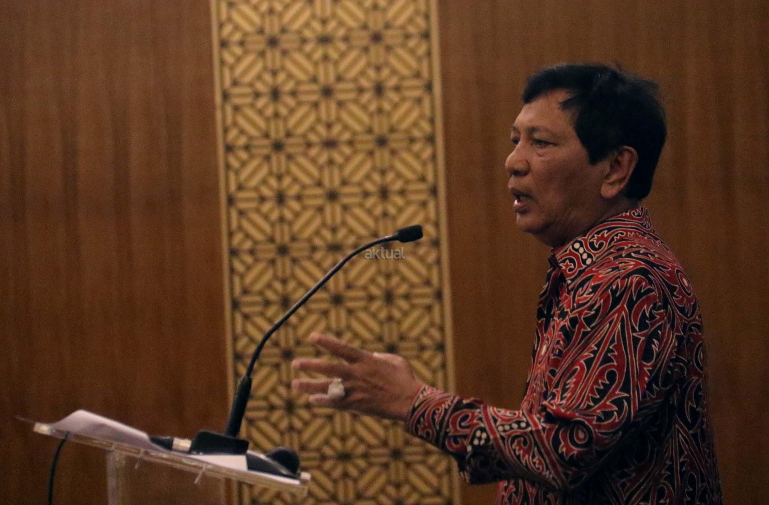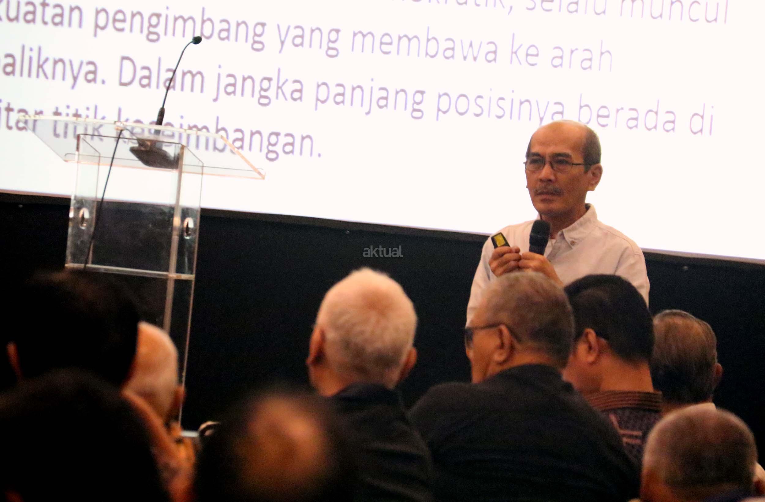 Ekonomi UI Faisal Basri memberikan paparan dalam diskusi perayaan HUT Indemo ke 17 tahun dan 43 Tahun Peristiwa 15 Januari 1974 di hotel Bidakara, Jakarta, Minggu (15/1/2017). Faisal Basri dalam diskusi mengambil tema Tren Nasionalis Populis & Implikasinya Terhadap Ekonomi Indonesia”