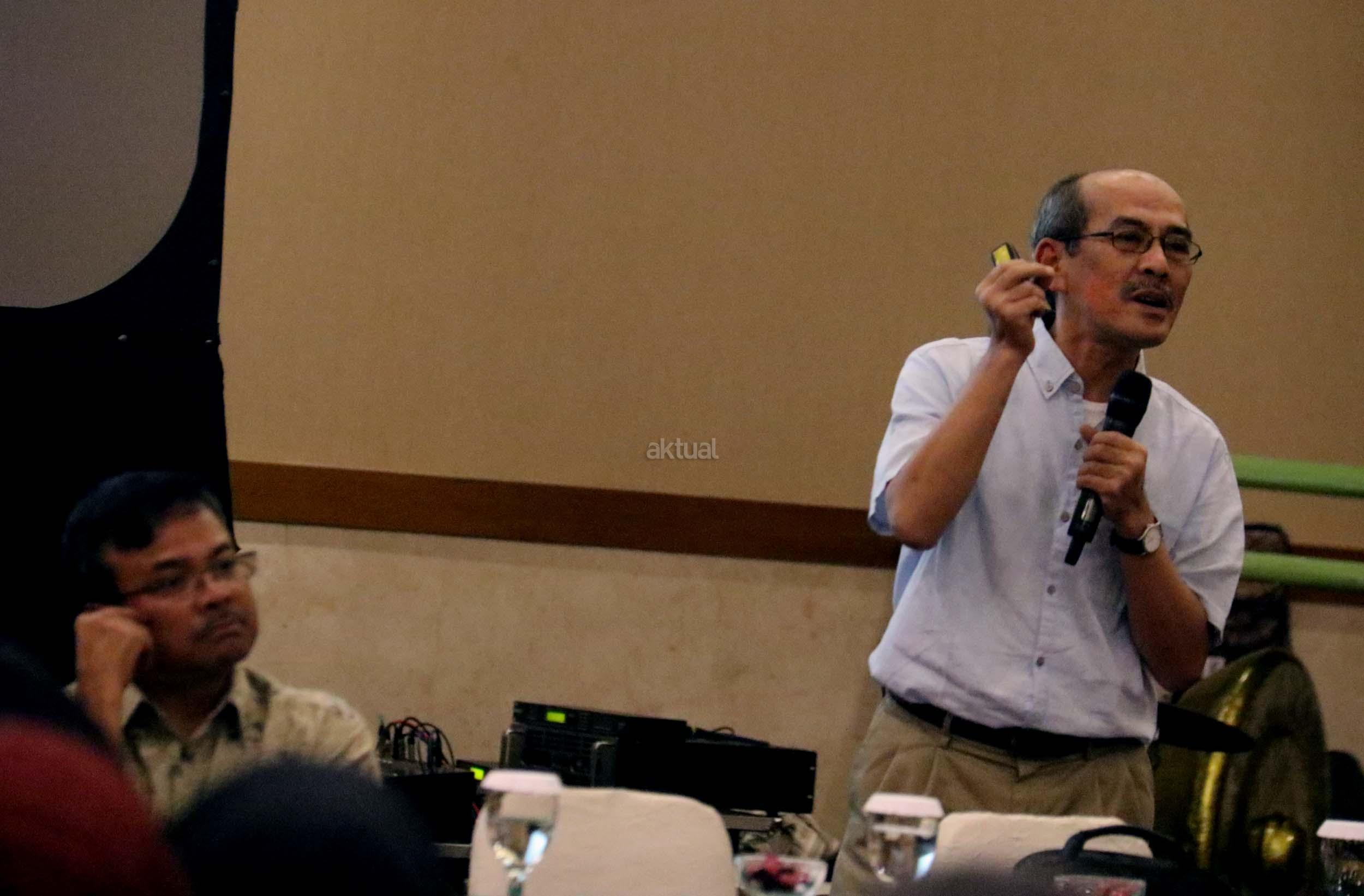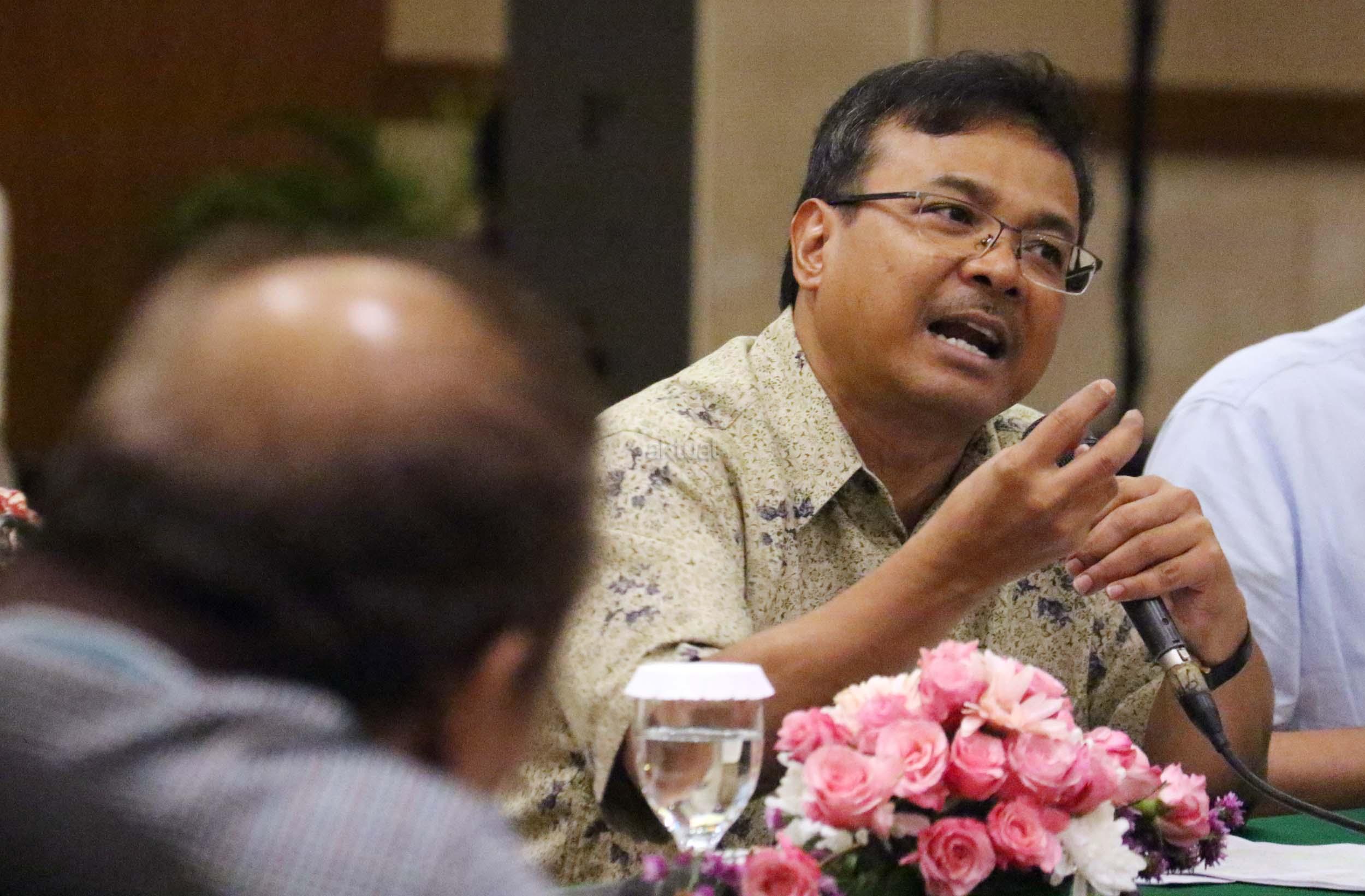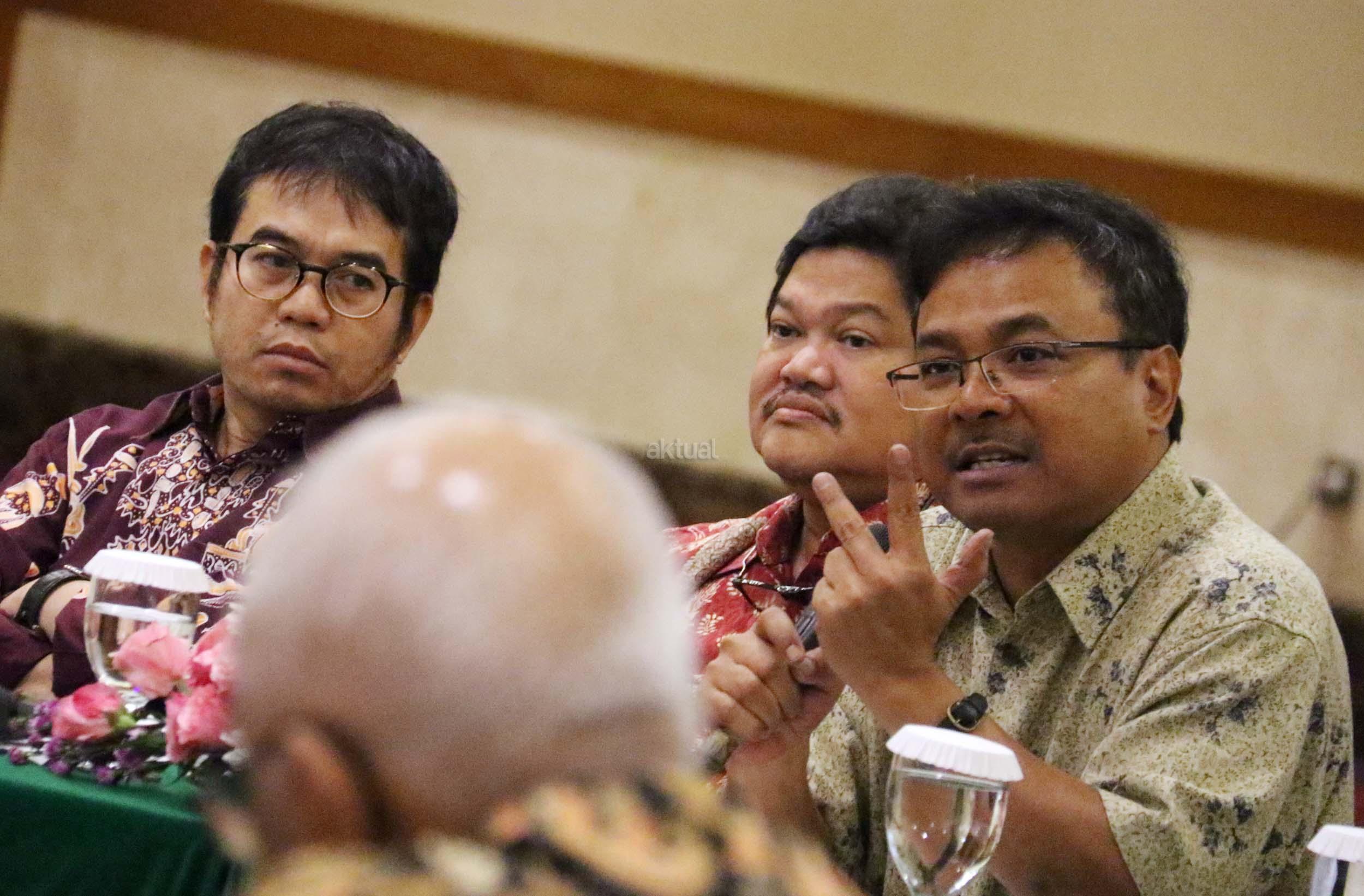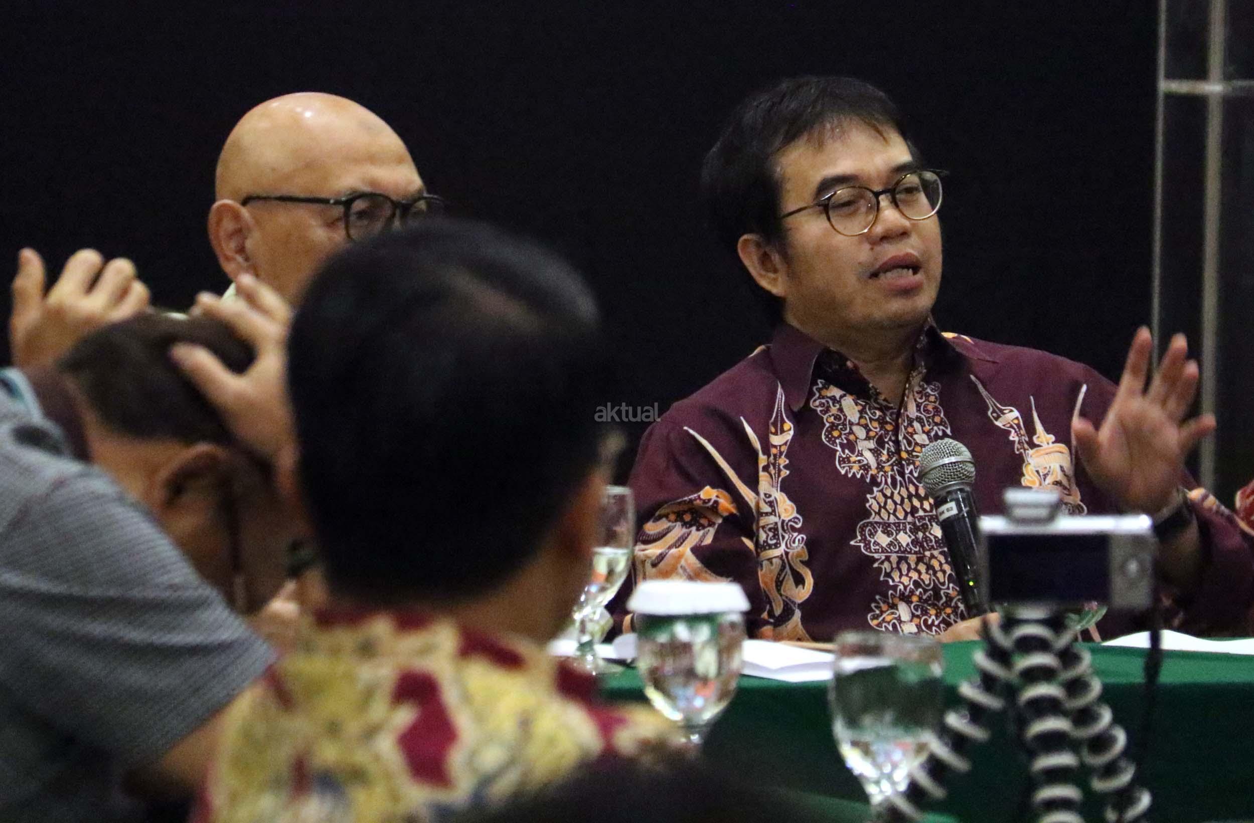Ekonomi UI Faisal Basri memberikan paparan dalam diskusi perayaan HUT Indemo ke 17 tahun dan 43 Tahun Peristiwa 15 Januari 1974 di hotel Bidakara, Jakarta, Minggu (15/1/2017). Faisal Basri dalam diskusi mengambil tema Tren Nasionalis Populis & Implikasinya Terhadap Ekonomi Indonesia”