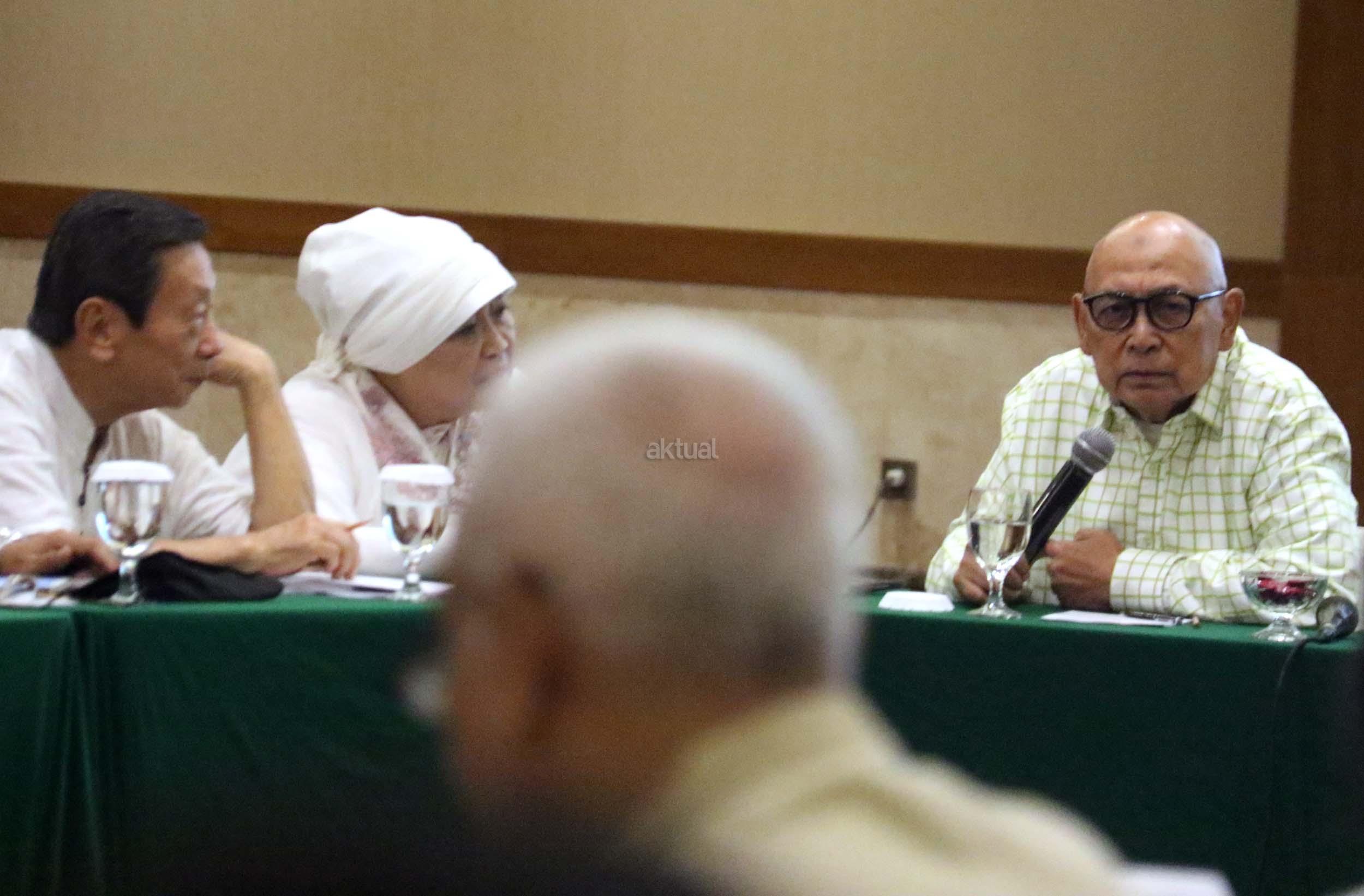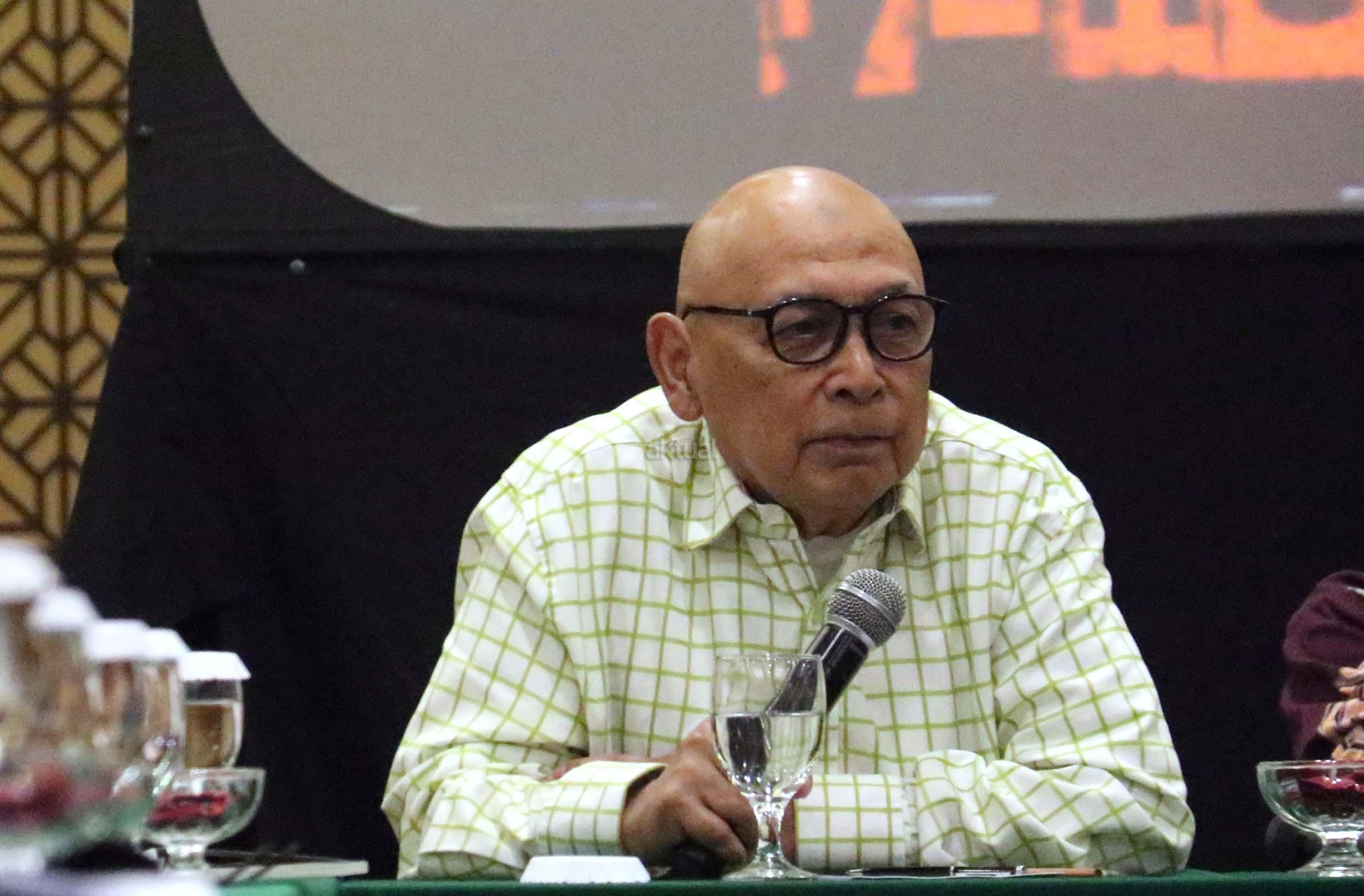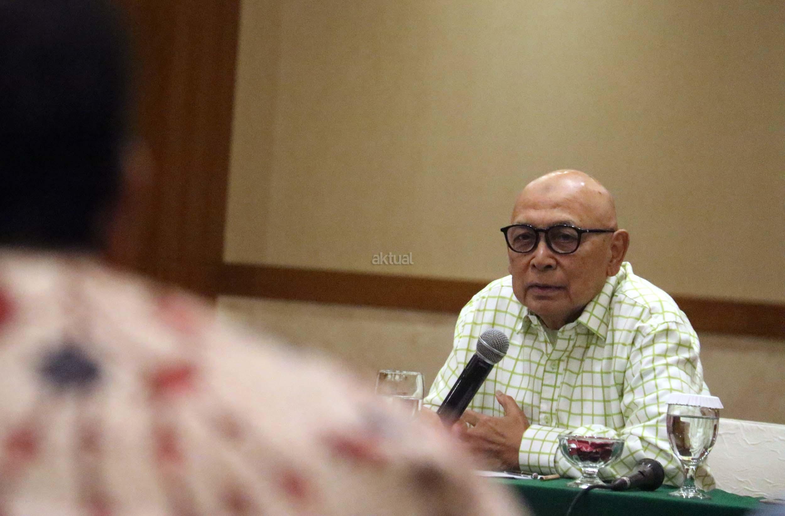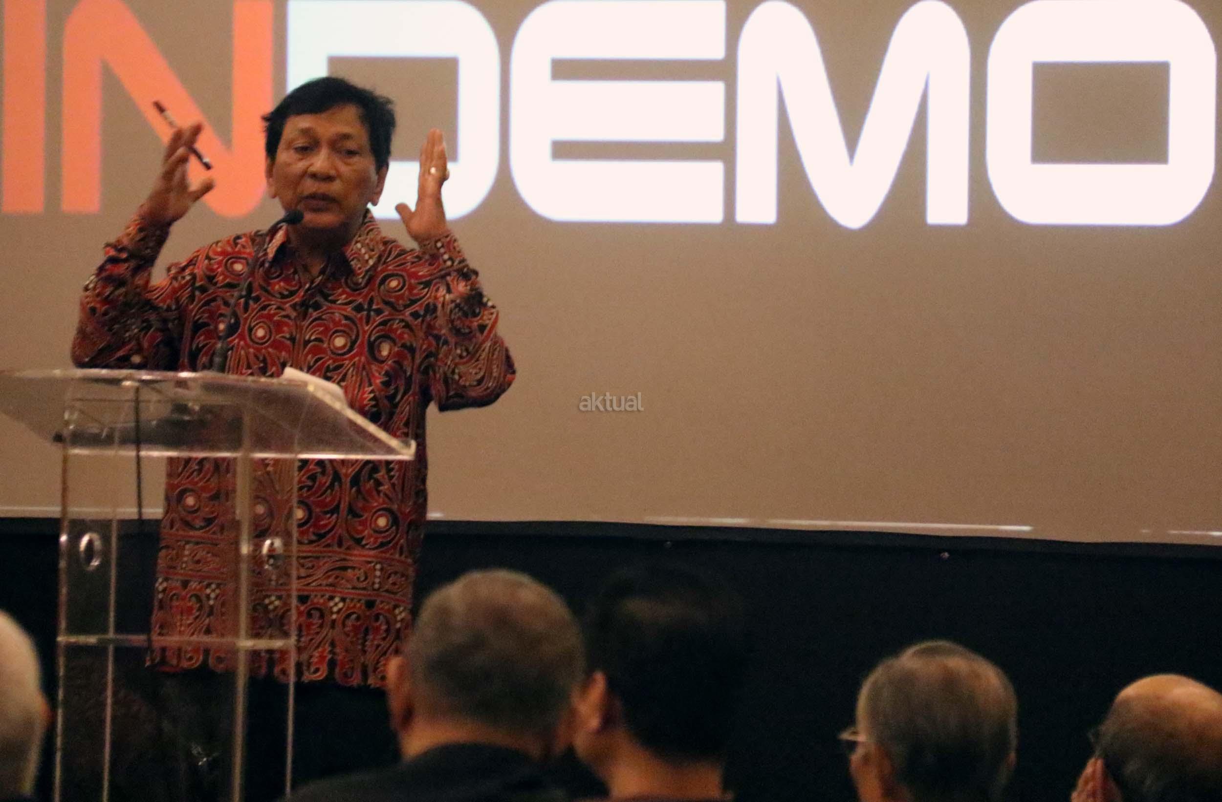 Tokoh Malari 1974 Hariman Siregar memberikan Keynotespeaker dalam acara perayaan HUT Indemo ke 17 tahun dan 43 Tahun Peristiwa 15 Januari 1974 di hotel Bidakara, Jakarta, Minggu (15/1/2017). Dalam acara HUT Indemo ke 17 tahun dan 43 Tahun Peristiwa 15 Januari 1974 yang bertemakan *Menyikapi Perubahan, Kebangkitan Populisme* dan diskusi Lintas Generasi.