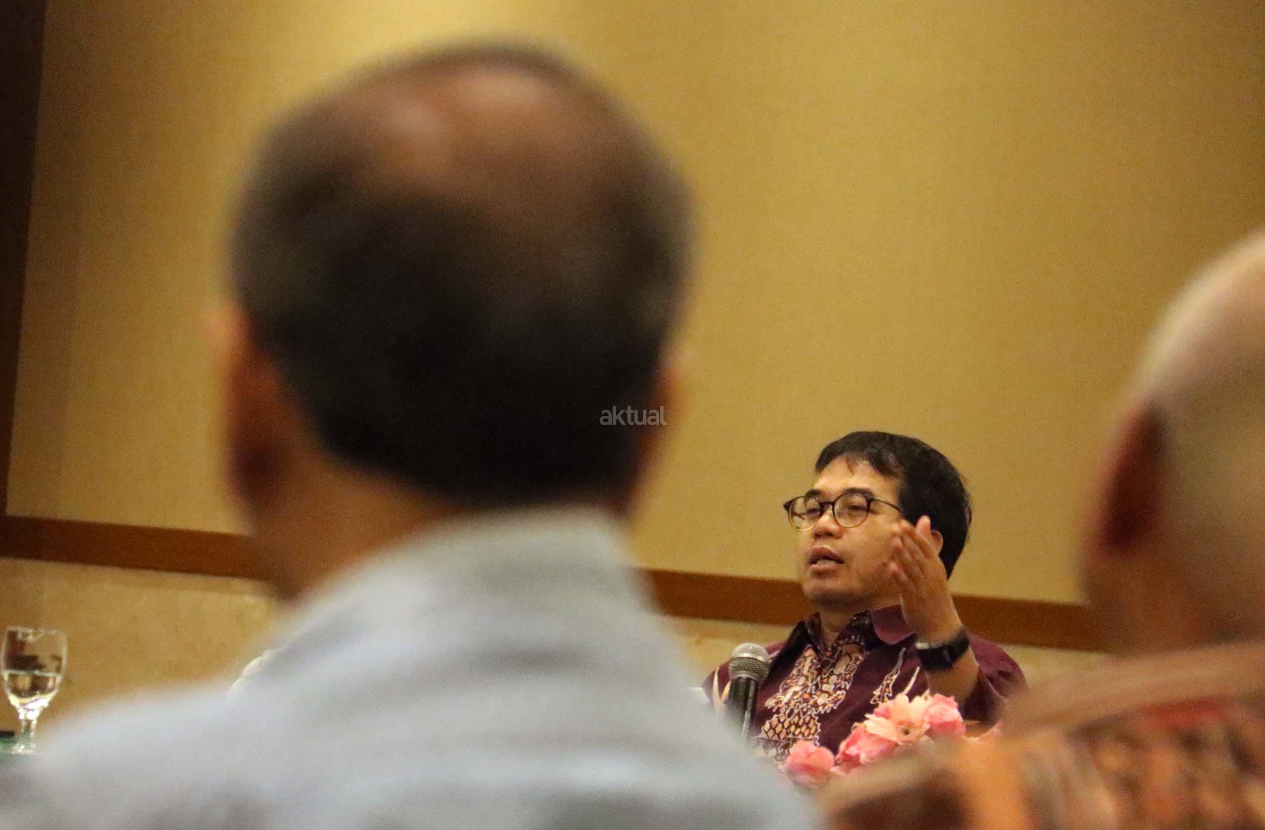 Dir. Reform Institute Yudi Latif memberikan paparan dalam diskusi perayaan HUT Indemo ke 17 tahun dan 43 Tahun Peristiwa 15 Januari 1974 di hotel Bidakara, Jakarta, Minggu (15/1/2017). Yudi Latif dalam diskusi mengambil tema “Ketahanan Budaya & Ideologi Indonesia”