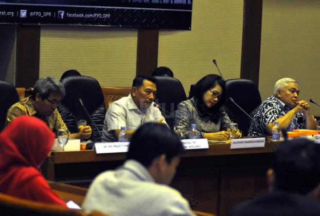 Mantan Panglima TNI Jenderal TNI (Purn) Moeldoko saat menjadi pembicara dalam seminar bertajuk Operasi Militer Selain Perang di Kompleks Parlemen, Senayan, Jakarta, Senin (12/10/2015). Diskusi yang diselenggarakan Fraksi Partai Demokrat tersebut membahas mengenai peran TNI dalam masyarakat di luar perannya dalam operasi militer.
