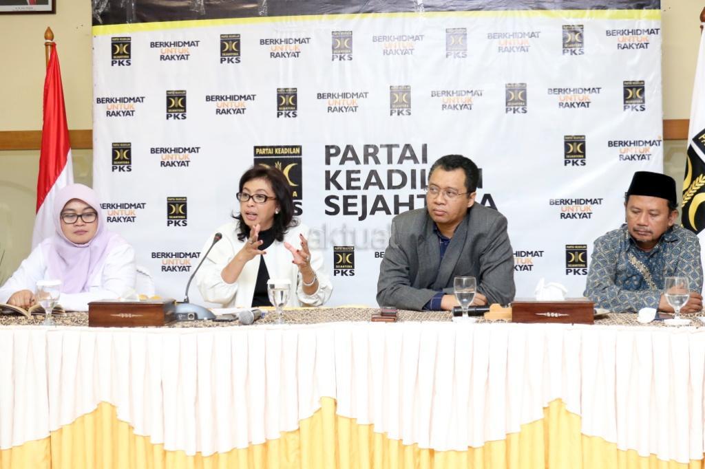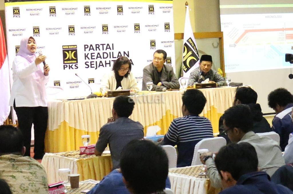 Dari kiri ke kanan, Direktur Pengendalian Dampak Kebijakan dan Sektor Kementrian dan Sektor Kementrian Lingkungan Hidup & Kehutanan Laksmi Wijayanti, Direktur Pengaduan, Pengawasan dan Sanksi Administratif Kementrian Lingkungan Hidup & Kehutanan Rosa Vivien Ratnawati, Anggota Komisi VII FPKS DPR RI Zulkieflimansyah dan Ketua Bidang Ekuinteklh DPP PKS Memed Sosiawan saat diskusi Peduli Lingkungan di DPP PKS Jalan TB Simatupang, Jakarta Selatan, Kamis (27/7) malam. Diskusi ini diikuti oleh elemen masyarakat, aktivis lingkungan hidup, mahasiswa dan kader. AKTUAL/HO