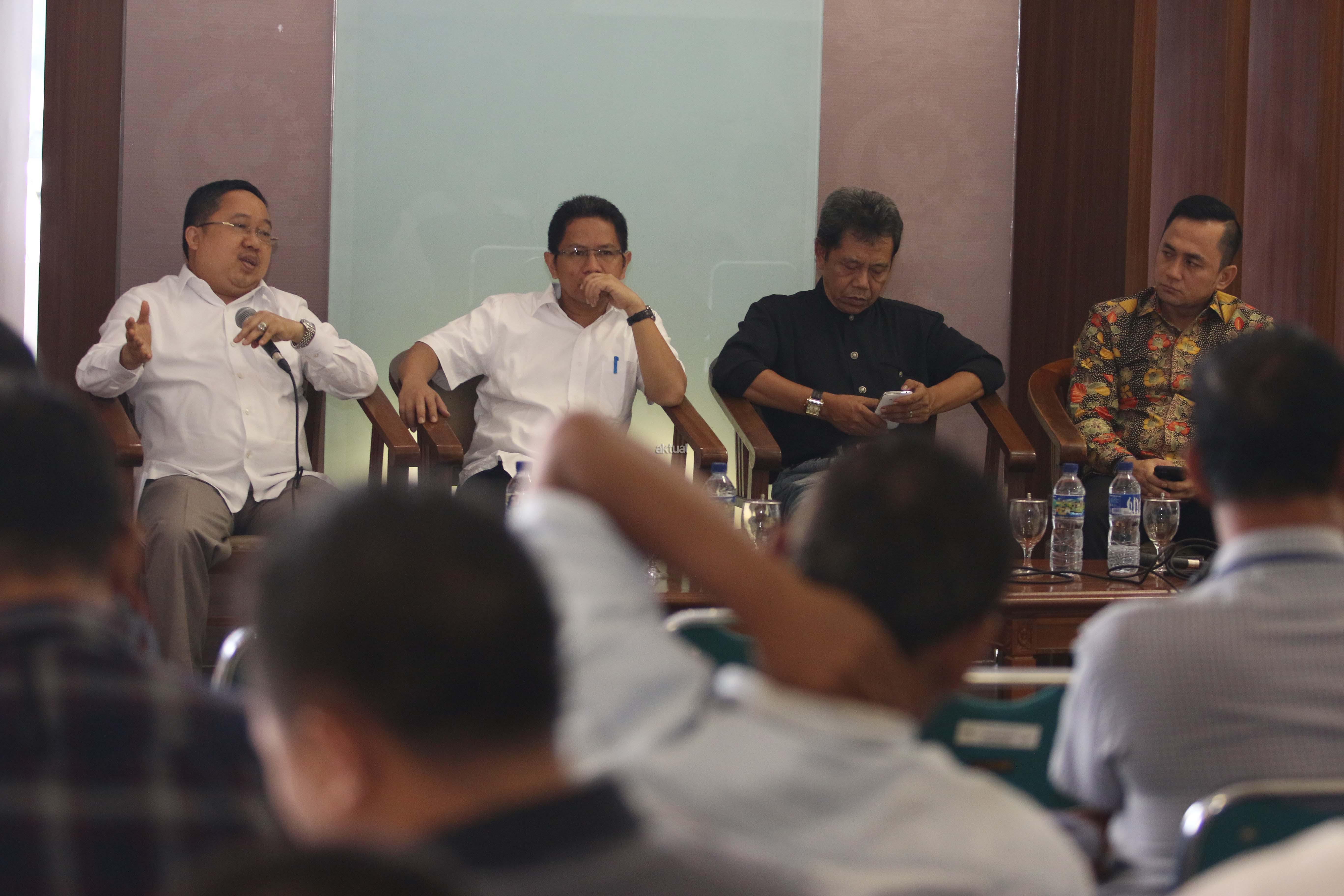 Anggota Komisi I DPR Fraksi PPP Syaifullah Tamliha, anggota Komisi III DPR Fraksi PAN Tjatur Sapto Edy, pengamat militer Kusnanto Anggito, dan pengamat hukum Andri W Kusuma menjadi pembicara pada diskusi di Kompleks Parlemen, Senayan, Jakarta, Rabu (13/1). Diskusi tersebut membahas pemberian amnesti kepada Din Minimi.