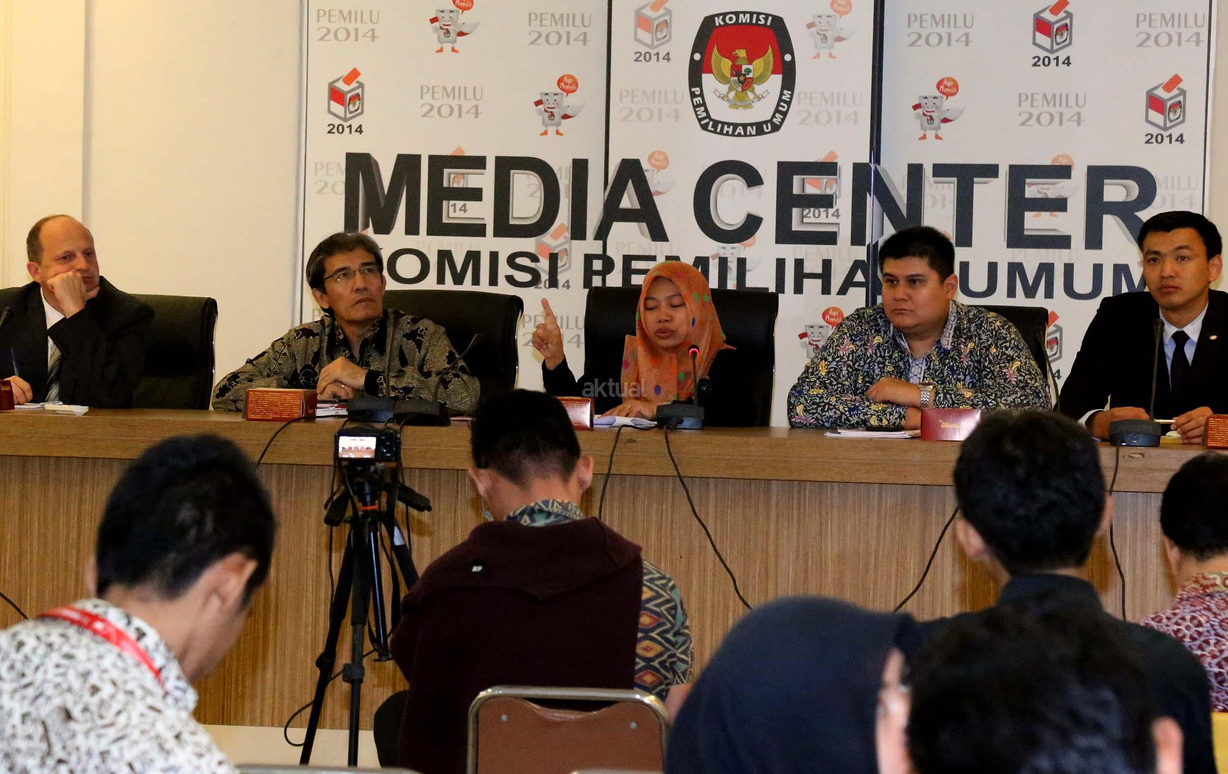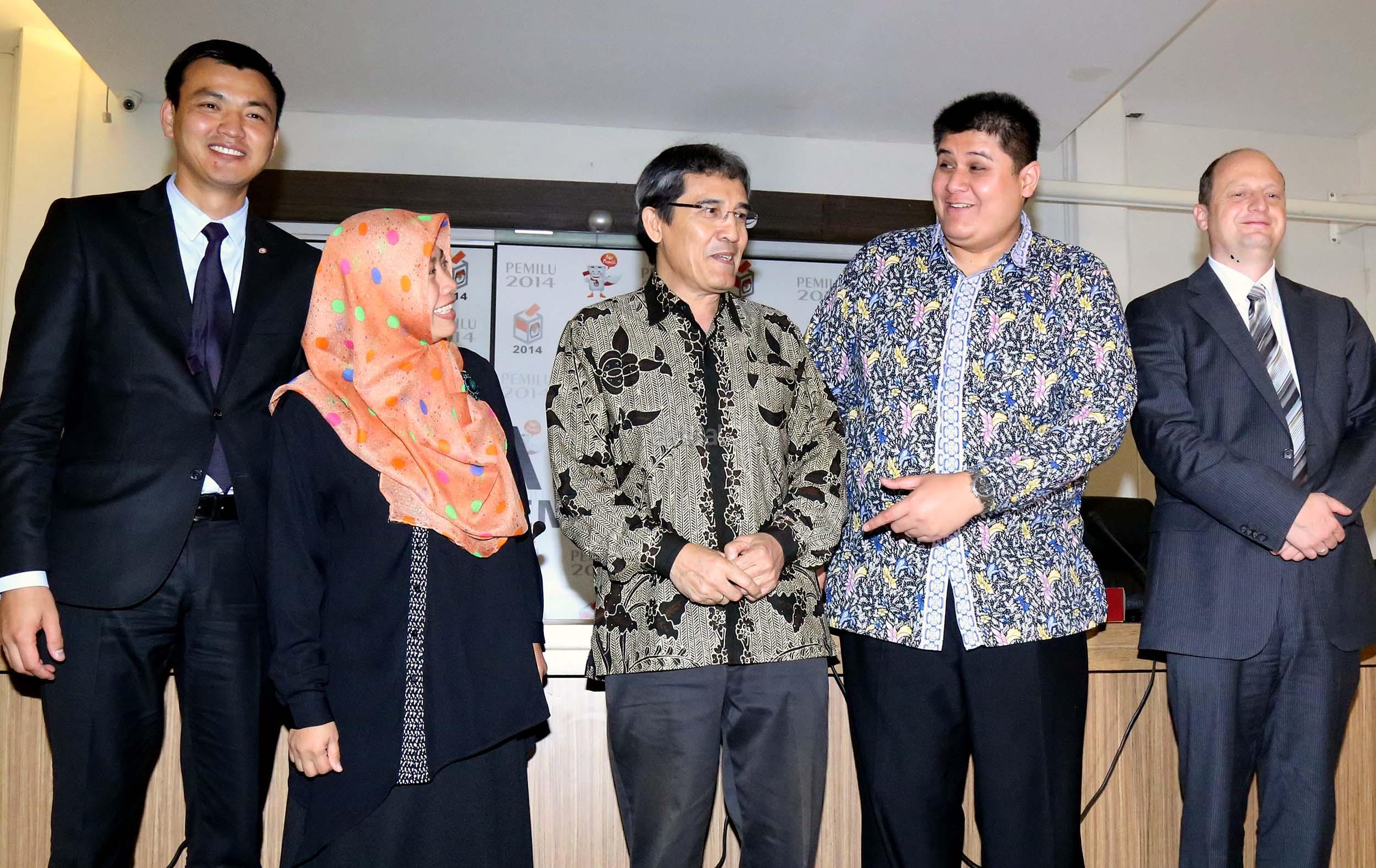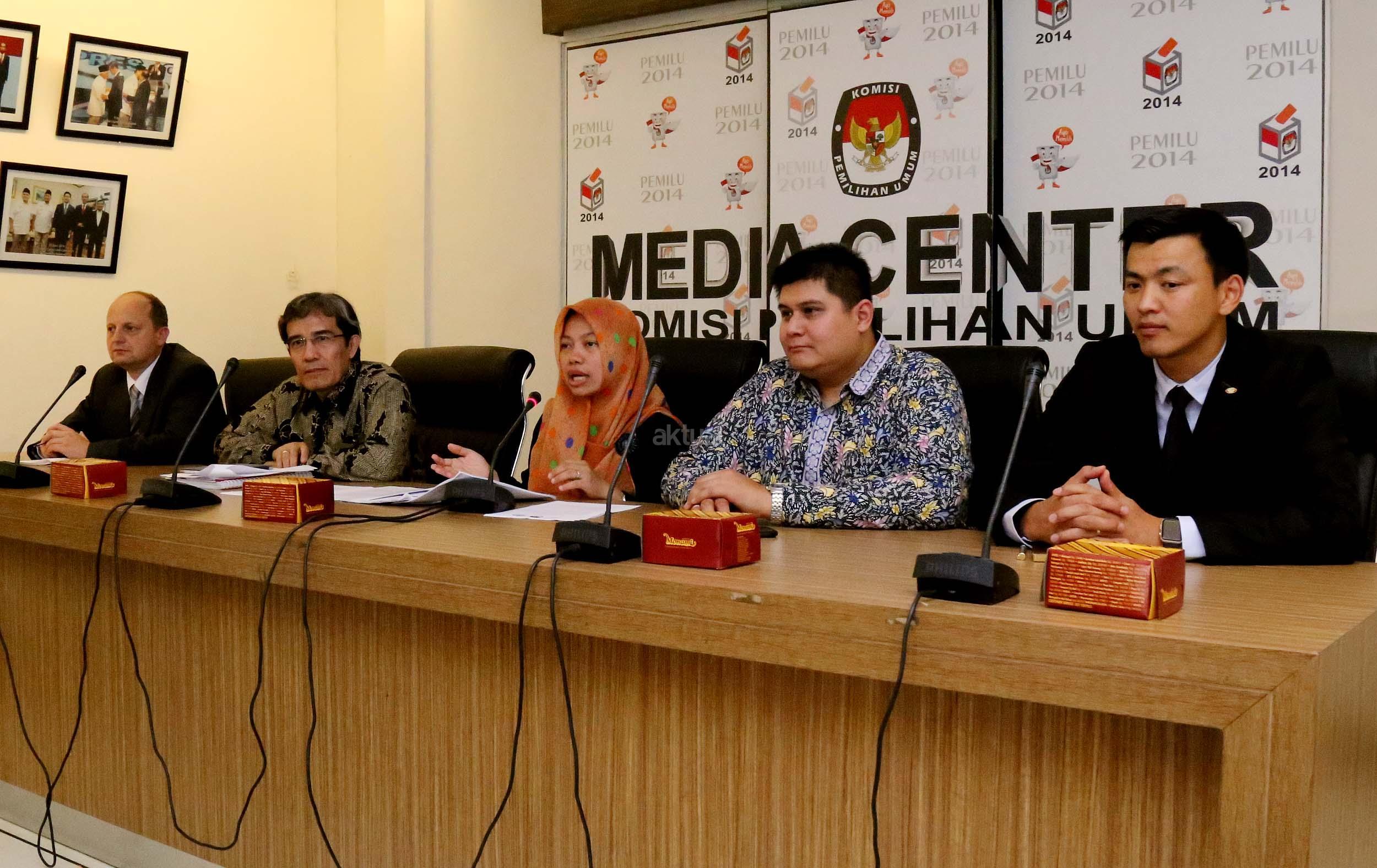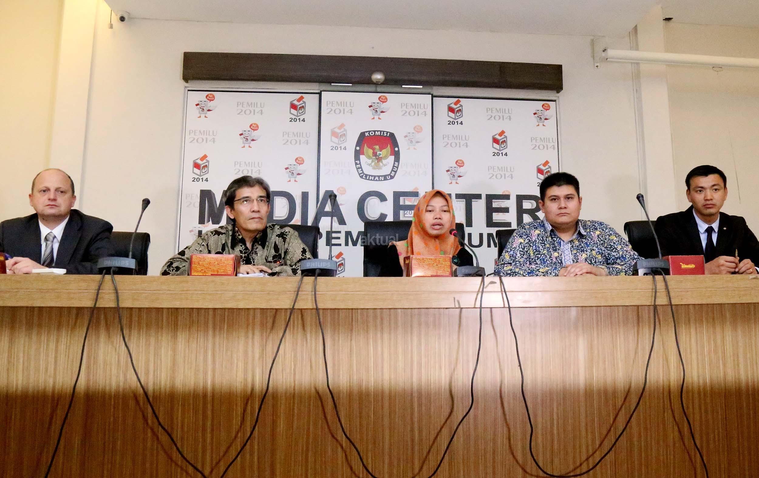 Kiri-kanan ;Expert International Institute for Democracy and Electoral (IDEA) Peter Wolf, Komisioner Komisi Pemilihan Umum (KPU) Hadar Nafis Gumay, Direktur Eksekutif Perludem Titi Anggraini, Wakil International IDEA, Pakar Teknologi KPU Mongolia Tamir Zorigt (dari kiri ke kanan) memberikan pemaparan saat menjadi narasumber pada diskusi yang diselenggarakan di Media Center KPU, Jakarta, Selasa (20/9). Diskusi yang merupakan rangkaian dari agenda ICT Tour Technology di beberapa Negara Asia yang membahas mengenai teknologi dalam pemilu. Aktual/Munzir