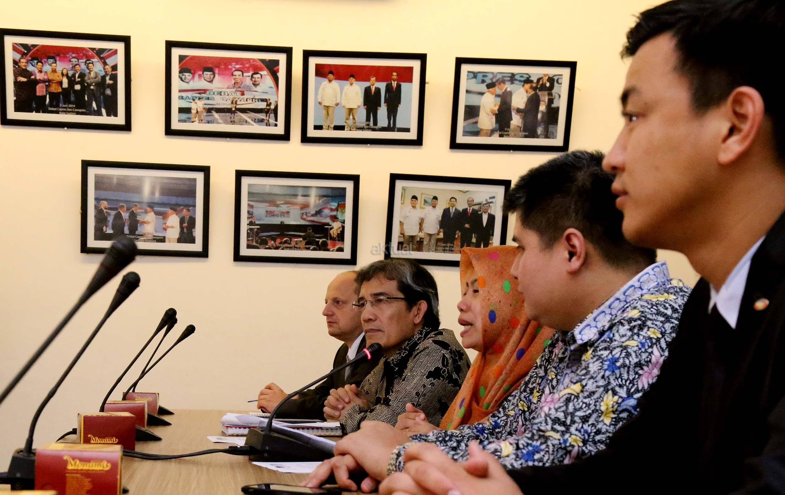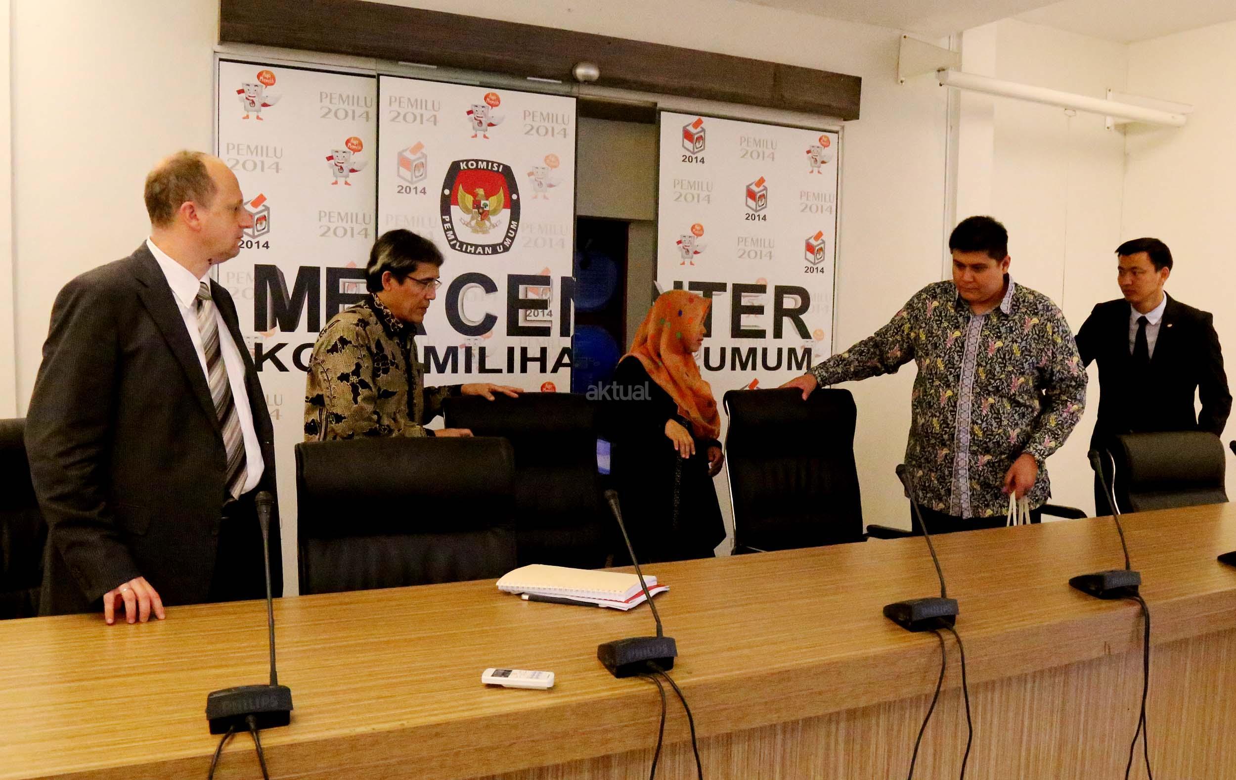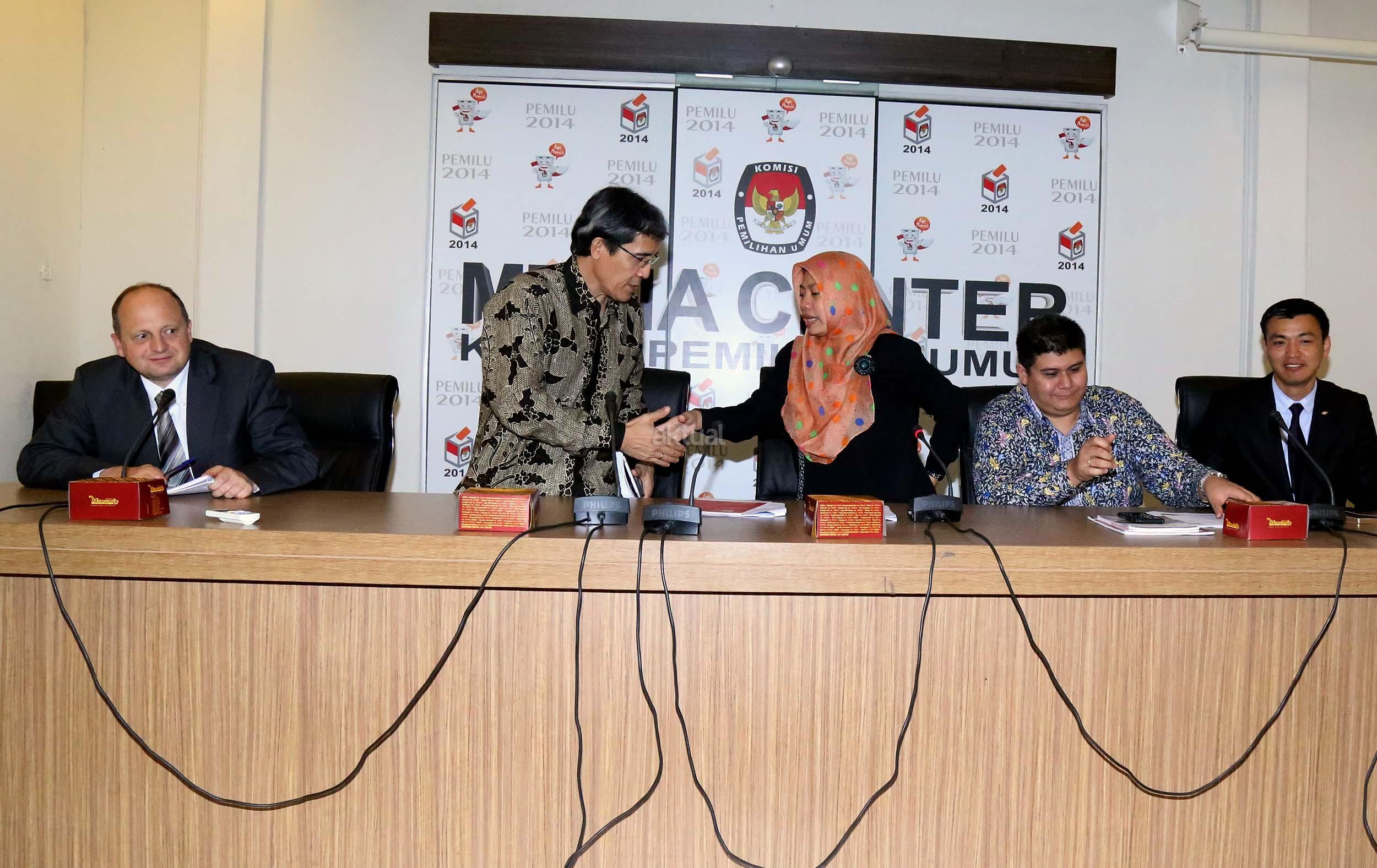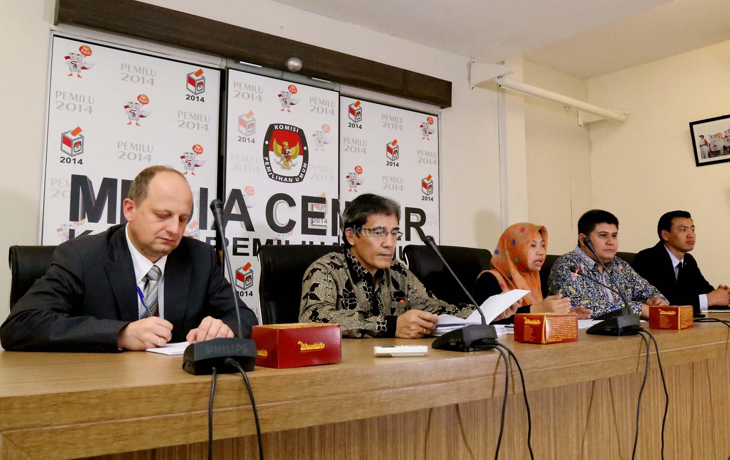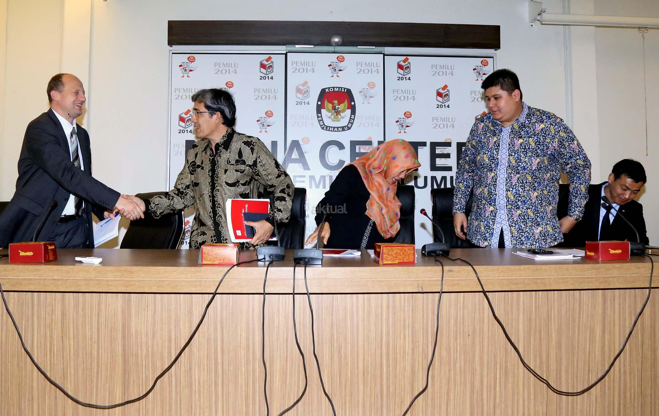 Kiri-kanan ;Expert International Institute for Democracy and Electoral (IDEA) Peter Wolf, Komisioner Komisi Pemilihan Umum (KPU) Hadar Nafis Gumay, Direktur Eksekutif Perludem Titi Anggraini, Wakil International IDEA, Pakar Teknologi KPU Mongolia Tamir Zorigt (dari kiri ke kanan) memberikan pemaparan saat menjadi narasumber pada diskusi yang diselenggarakan di Media Center KPU, Jakarta, Selasa (20/9). Diskusi yang merupakan rangkaian dari agenda ICT Tour Technology di beberapa Negara Asia yang membahas mengenai teknologi dalam pemilu. Aktual/Munzir