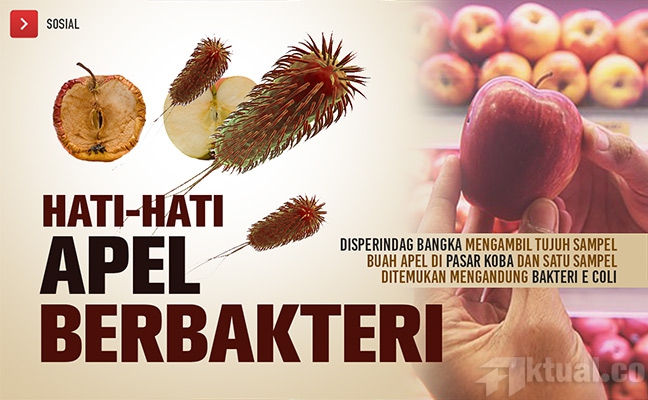 Jakarta, Aktual.co — Dinas Perindustrian Perdagangan Koperasi dan Usaha Kecil Menengah (Disprindagkop) dan UKM Kabupaten Bangka Tengah, Provinsi Bangka Belitung, menemukan buah apel mengandung bakteri yang membahayakan bagi kesehatan manusia.