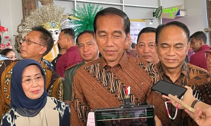 Presiden Joko Widodo memberikan keterangan kepada wartawan usai menghadiri acara Puncak Peringatan Hari Pers Nasional 2024, di Jakarta, Selasa (20/2/20240).