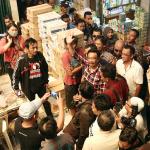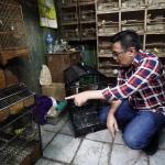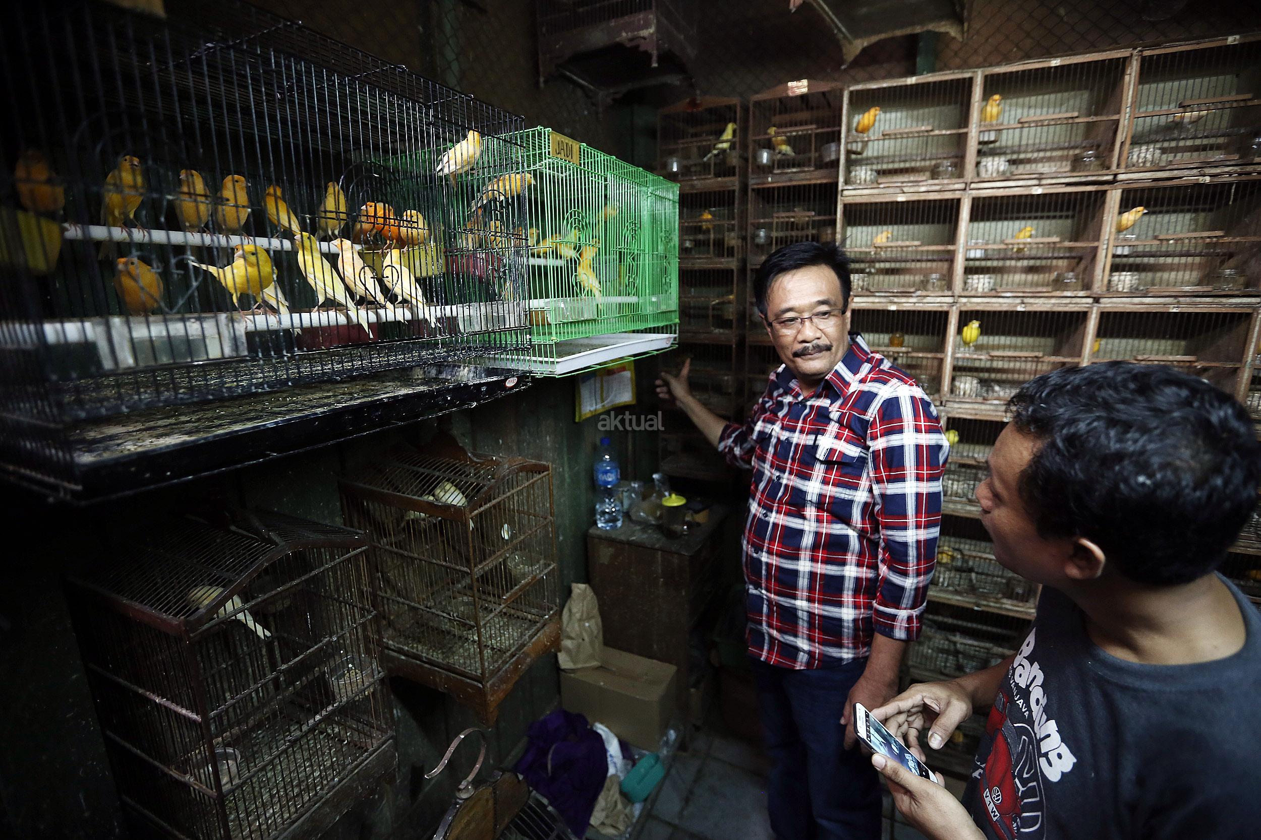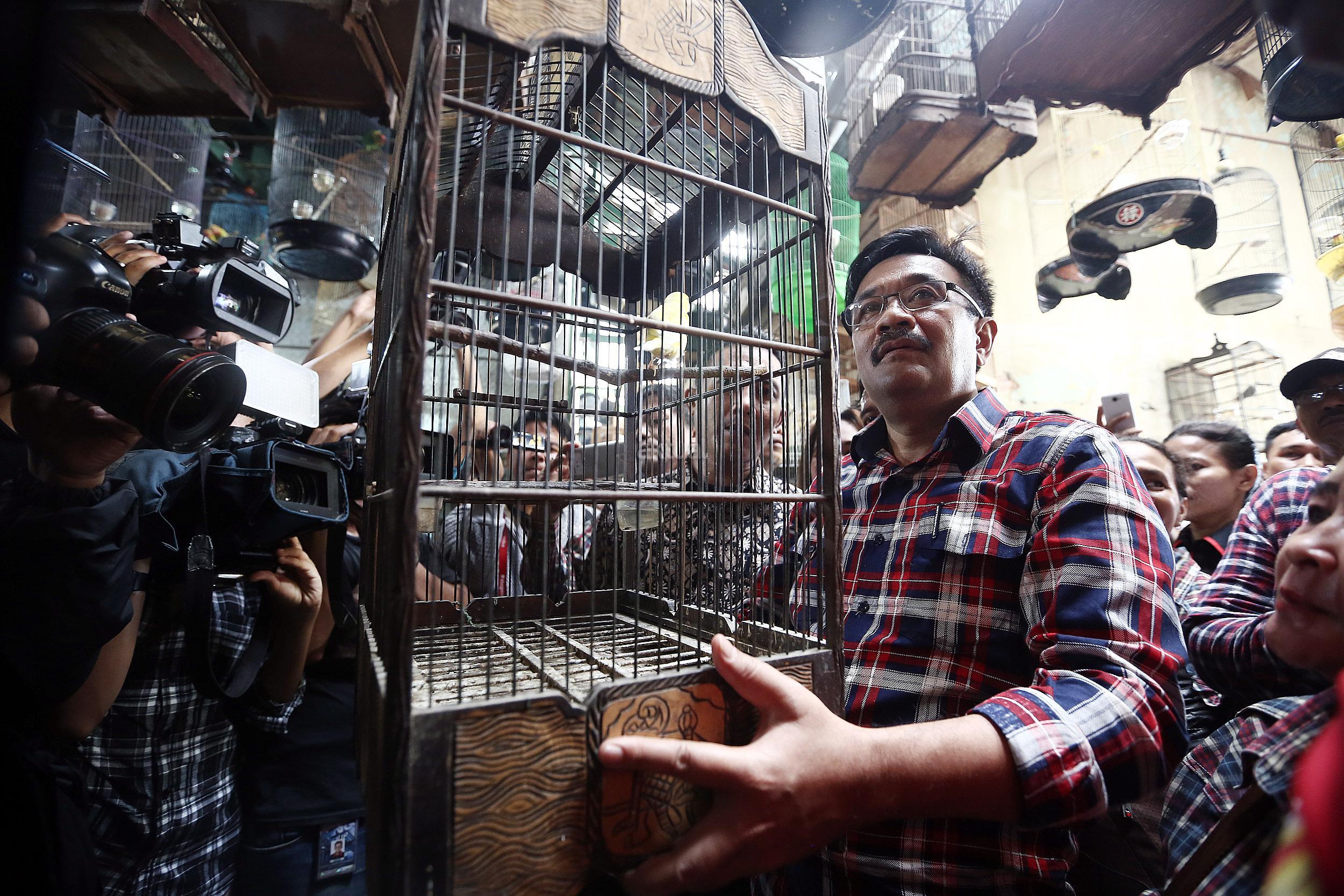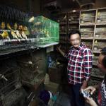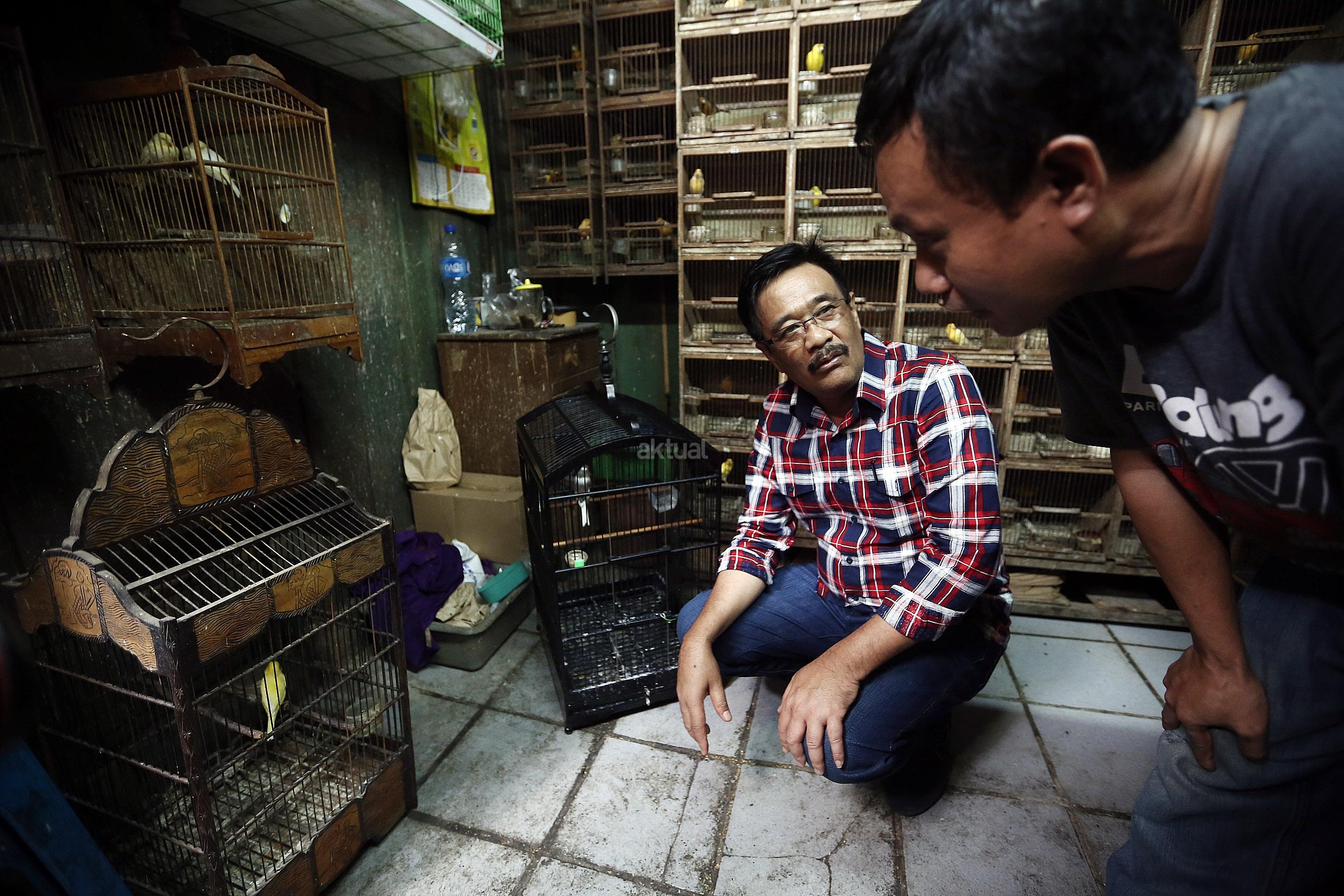 Cawagub DKI Jakarta petahana Djarot Saiful Hidayat berbincang dengan pedagang sambil bermain burung saat blusukan di Pasar Pramuka, Jakarta, Jumat (4/11). Di tengah ramainya aksi demo Ahok, Djarot memilih tetap melakukan blusukan untuk mendengarkan keluhan dan masukan dari warga. AKTUAL/HO