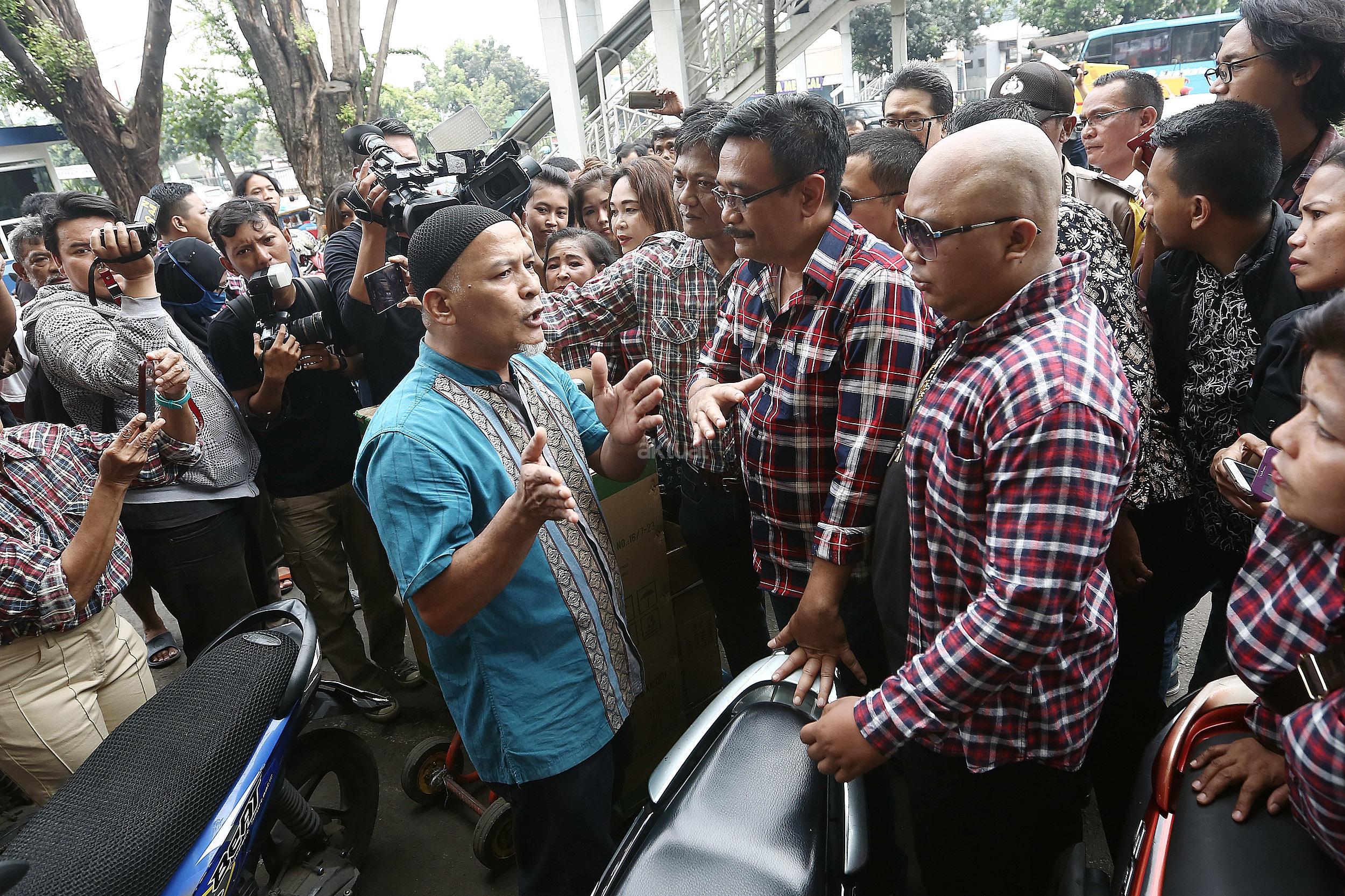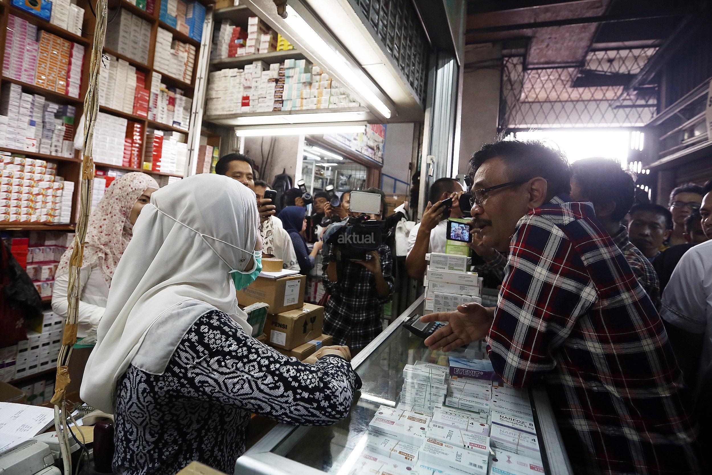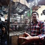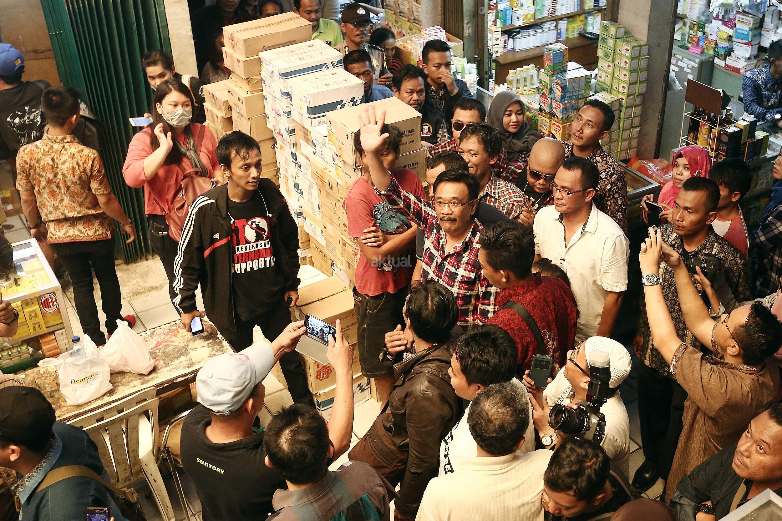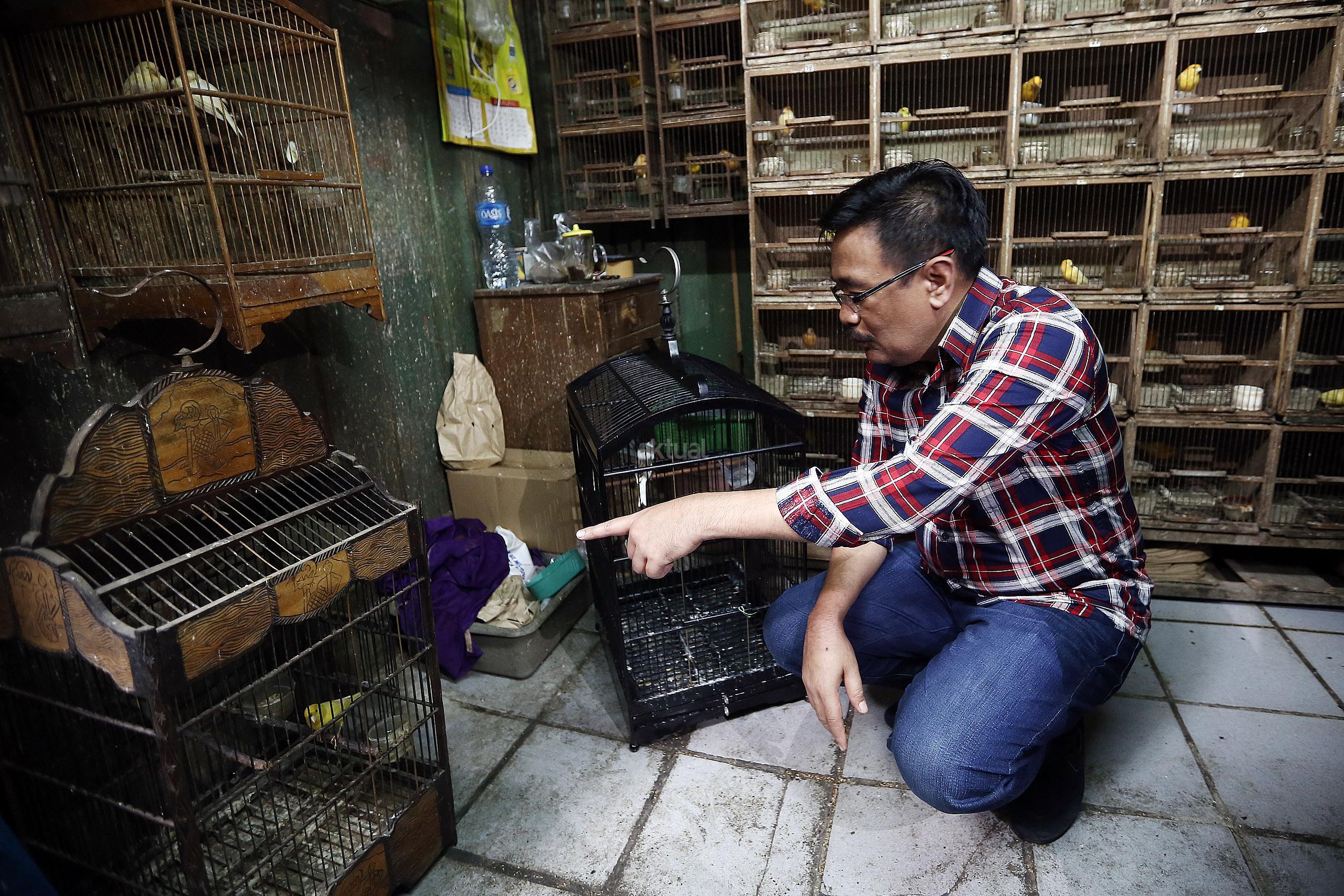 Cawagub DKI Jakarta petahana Djarot Saiful Hidayat berbincang dengan pedagang sambil bermain burung saat blusukan di Pasar Pramuka, Jakarta, Jumat (4/11). Di tengah ramainya aksi demo Ahok, Djarot memilih tetap melakukan blusukan untuk mendengarkan keluhan dan masukan dari warga. AKTUAL/HO